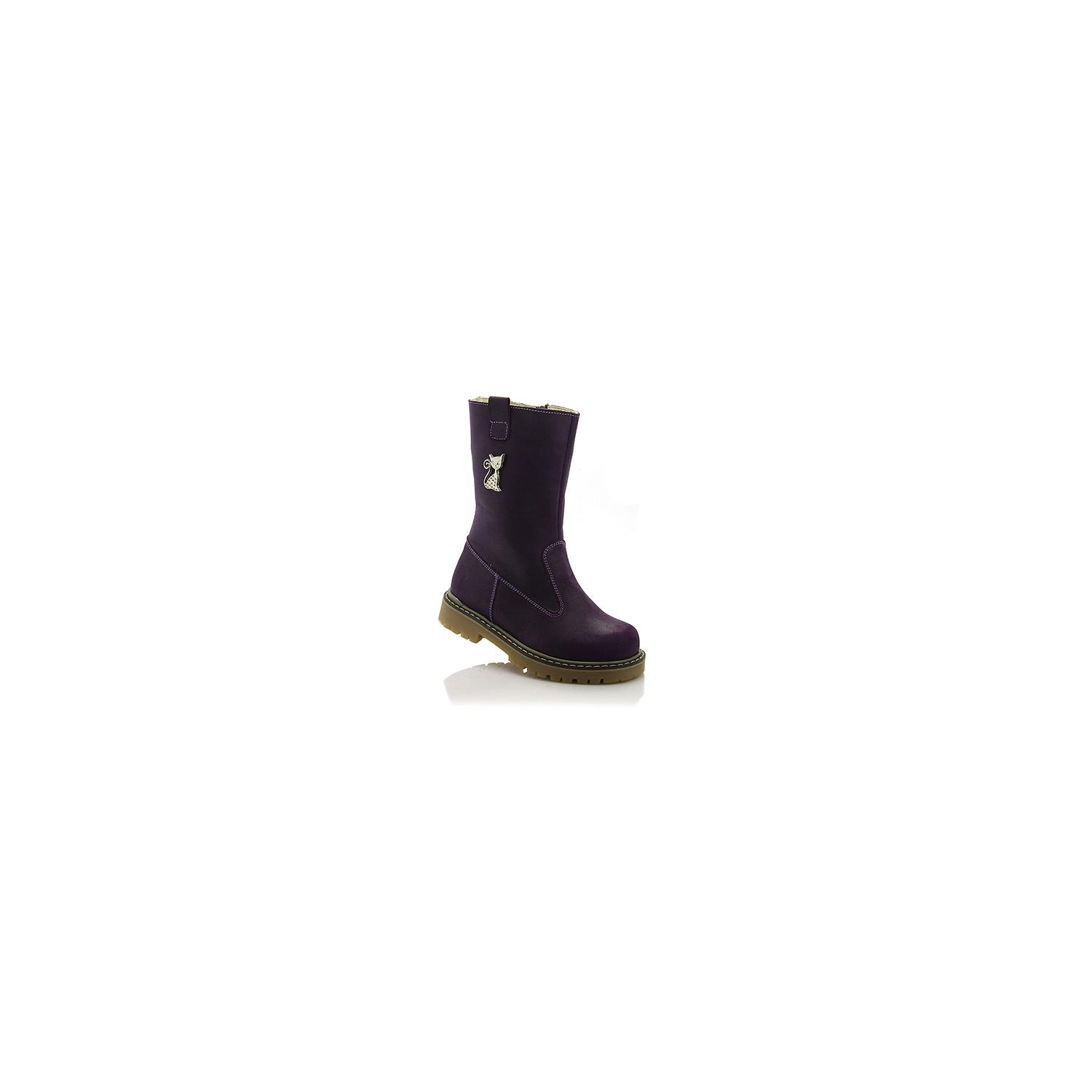 Зимние сапожки ортопедические фиолетового цвета. С внутренней стороны на молнии. Снаружи жирный нубук, внутри - натуральный мех (цигейка). Высокая твердая пятка, ортопедический супинатор и не скользящая тракторная подошва.