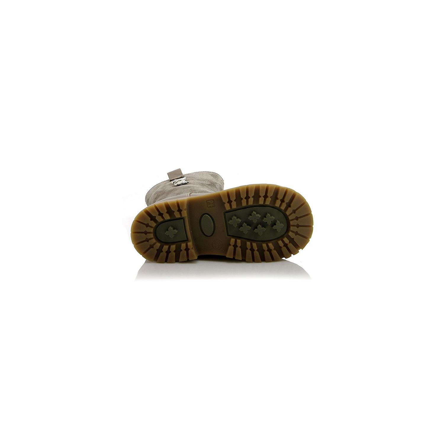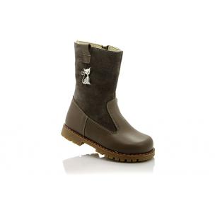 Зимние сапожки ортопедические серого цвета. С внутренней стороны на молнии. Снаружи кожа + замша, внутри - натуральный мех (цигейка). Высокая твердая пятка, ортопедический супинатор и не скользящая тракторная подошва.