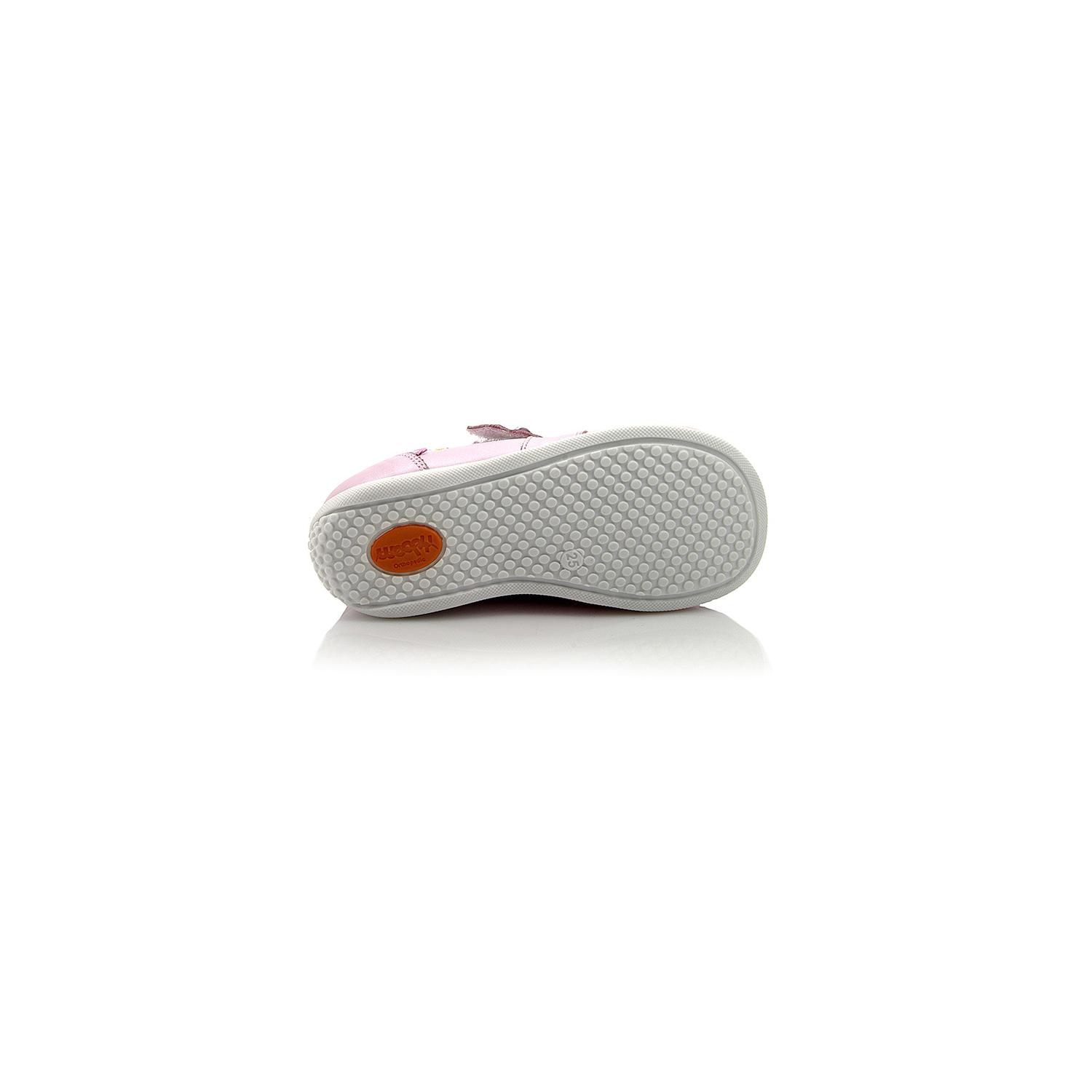 Мокасины нежно-розового цвета со слониками. Сверху фиксируются липучкой, снаружи и внутри кожаные. Есть супинатор и твердая пятка.