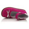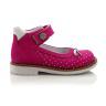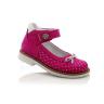 Туфли ортопедические малинового цвета (в крапинку). Сверху регулируются липучкой. Снаружи нубук, внутри кожаные. Высокая твердая пятка, супинатор и ортопедический каблук Томаса.