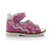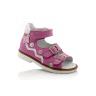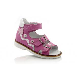 Босоножки ортопедические розового цвета с бабочкой и цветочками. Снизу регулируются двумя застежками, сверху липучкой. Снаружи кожа (жирный нубук), внутри кожаные. Высокая твердая пятка, супинатор и ортопедический каблук Томаса.