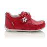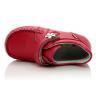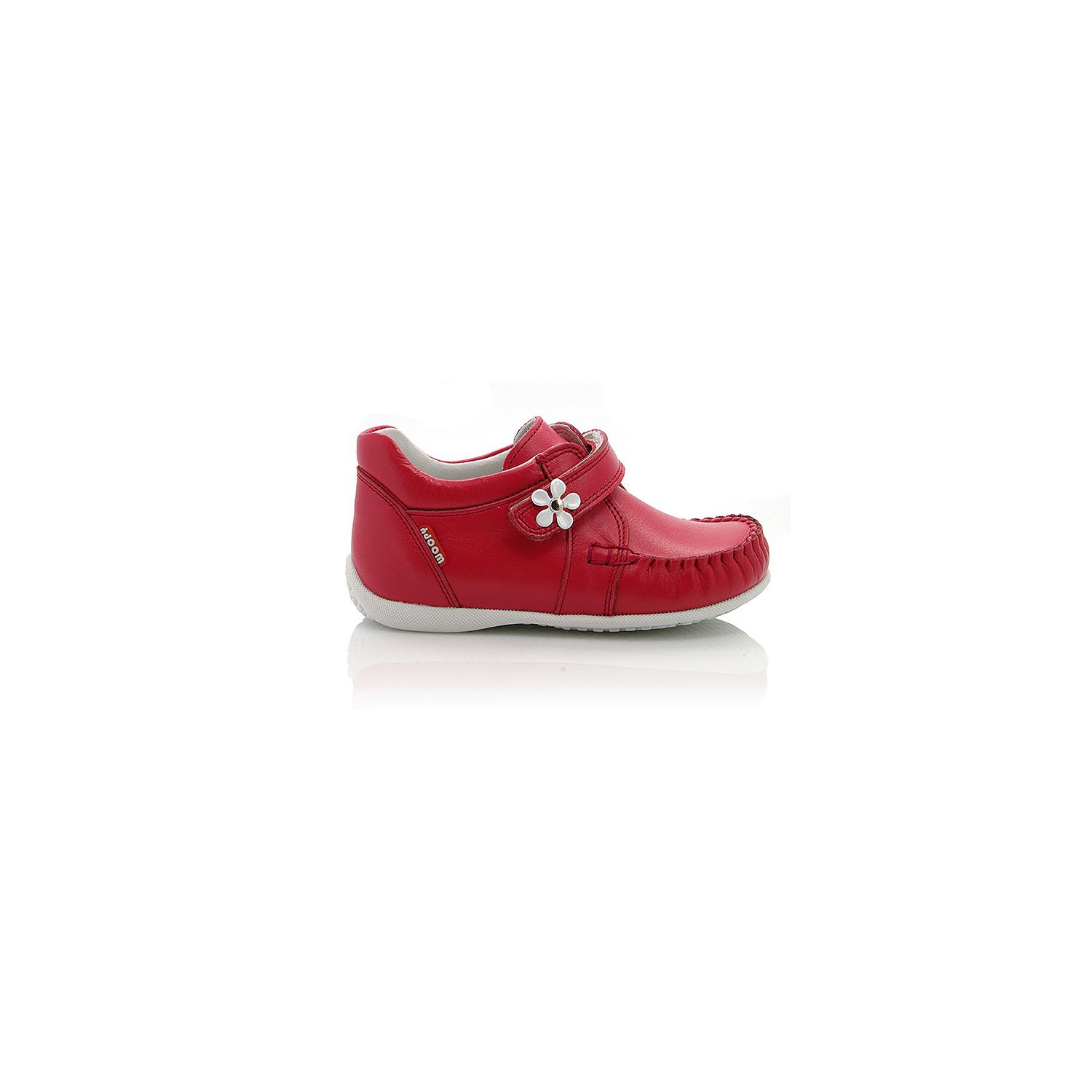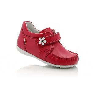 Мокасины кораллового цвета. Сверху фиксируются липучкой, снаружи и внутри кожаные. Есть супинатор и твердая пятка.