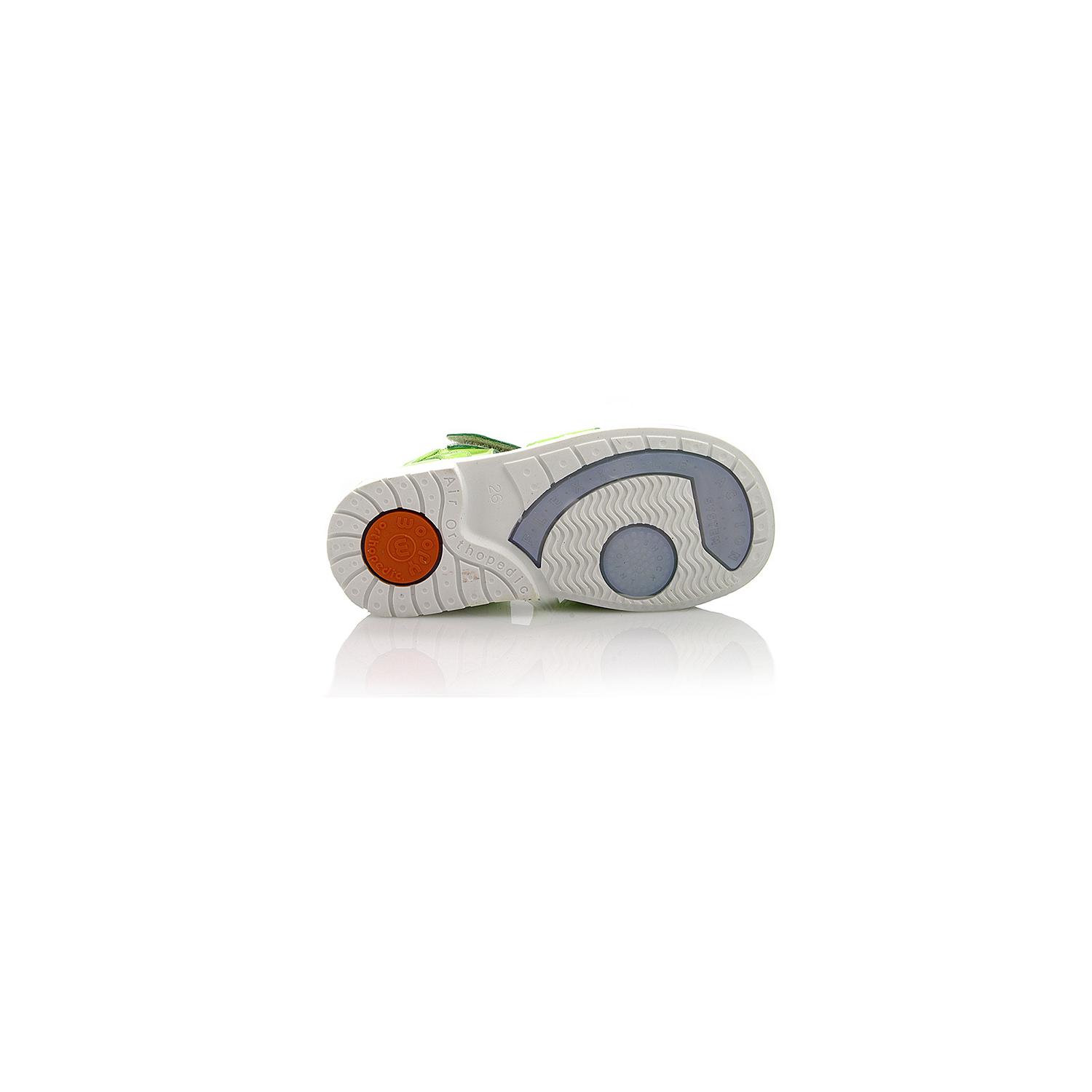 Босоножки ортопедические кораллового цвета. Сверху фиксируются двумя липучками. Снаружи кожа (лак) + нубук, внутри кожаные. Высокая твердая пятка, супинатор и ортопедический каблук Томаса