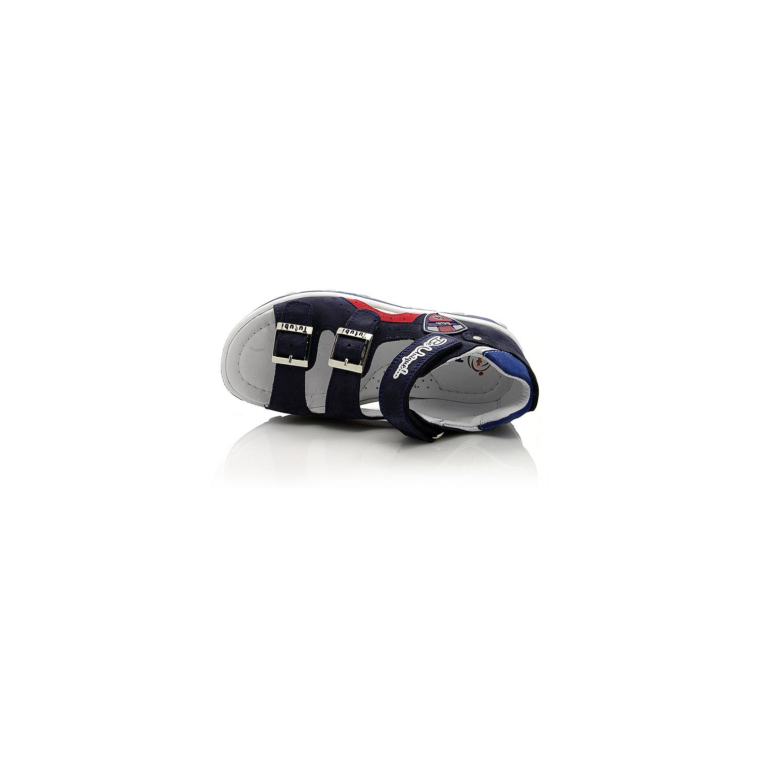Босоножки темно-синего цвета. Снизу фиксируются 2-мя застежками, сверху липучкой. Снаружи - гладкий нубук, внутри кожаные, есть супинатор, твердая пятка.