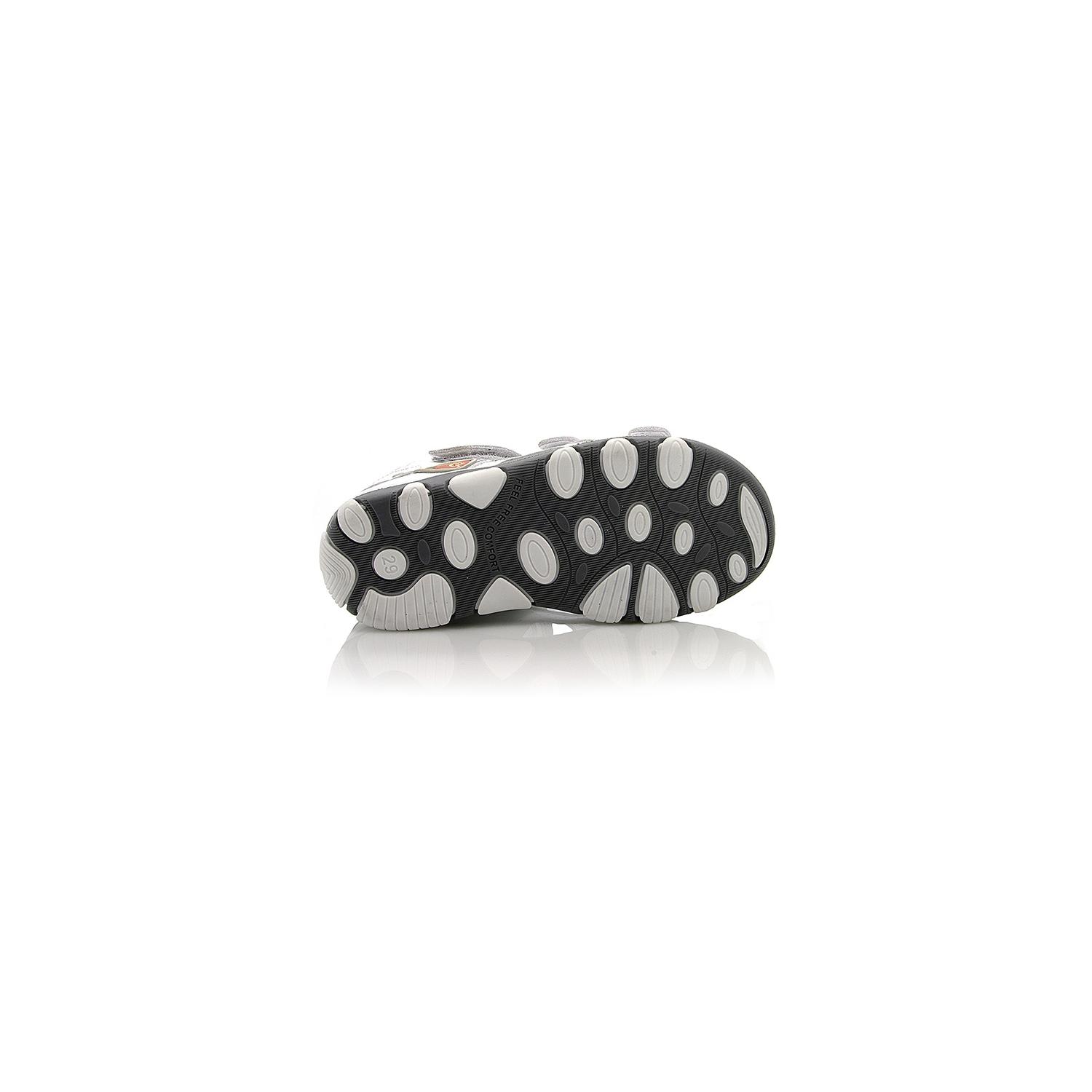 Босоножки белого цвета. Снизу фиксируются 2-мя застежками, сверху липучкой. Снаружи и внутри кожаные, есть супинатор, твердая пятка.