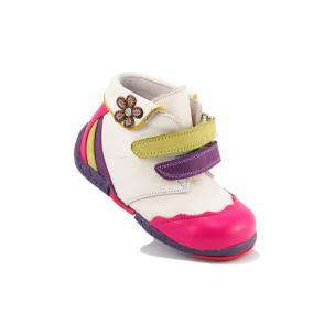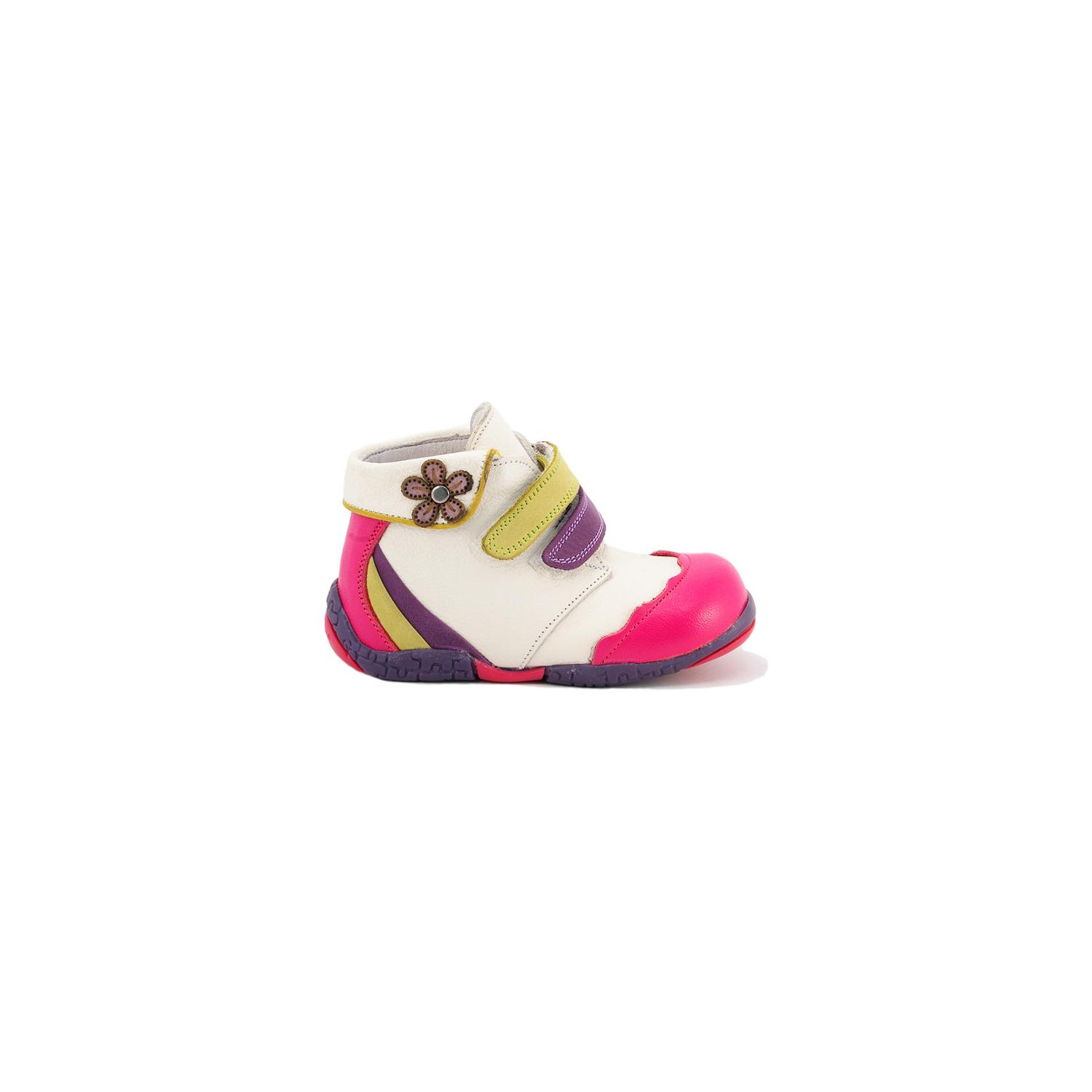 Ботиночки белого цвета с разноцветными вставками. Снаружи - кожа, внутри - кожа. Фиксируются двумя липучками. Есть супинатор и твёрдая пятка.
