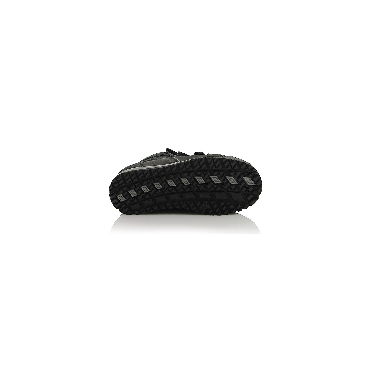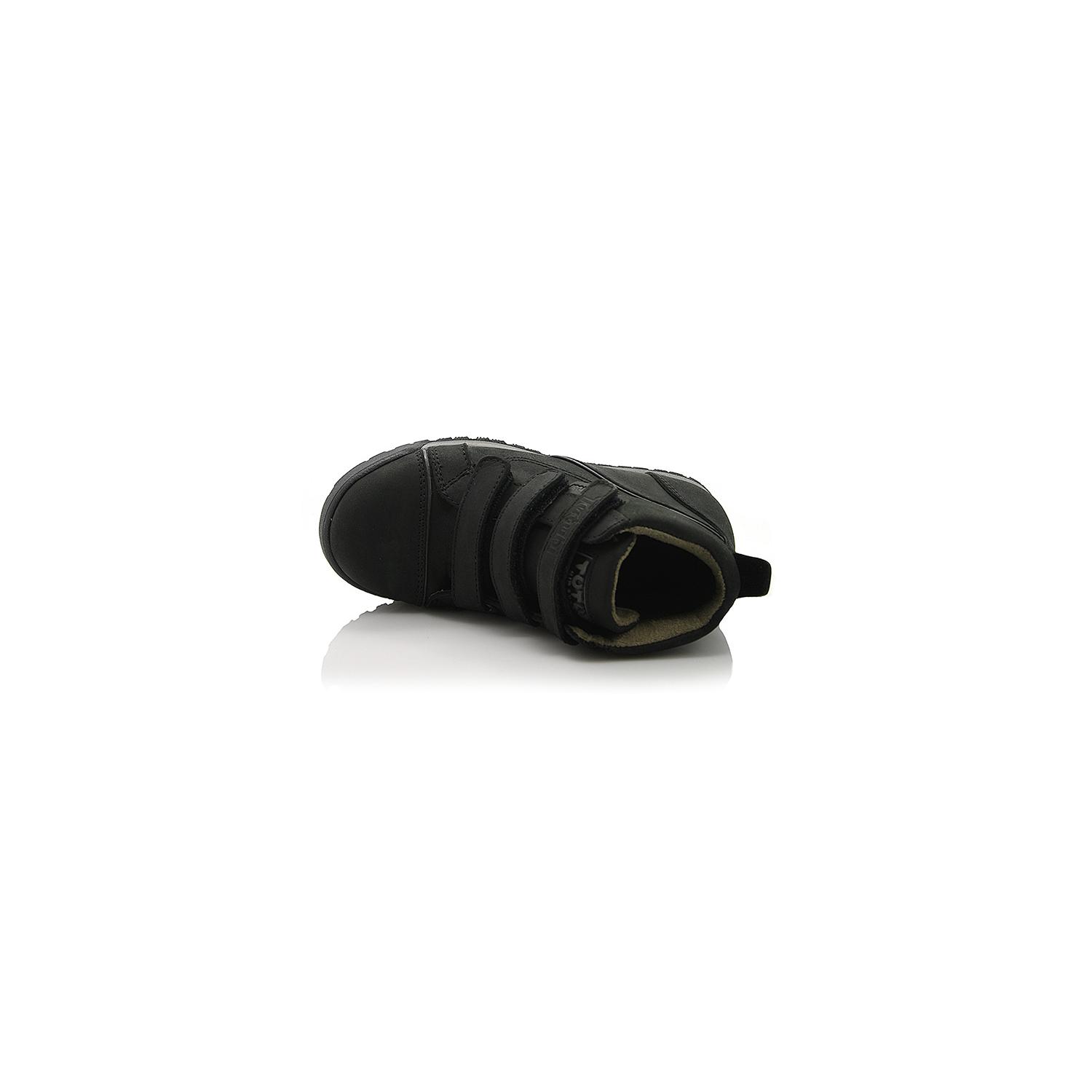 Демисезонные ботинки черного цвета. Сверху регулируются тремя липучками. Снаружи жирный нубук (кожа), внутри - на флисе. Есть супинатор, твердая пятка очень прочная подошва.