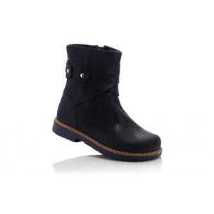 Демисезонные сапожки ортопедические темно-синего цвета. С внутренней стороны на молнии. Снаружи кожаные, внутри - на флисе. Высокая твердая пятка, ортопедический супинатор и каблук Томаса.