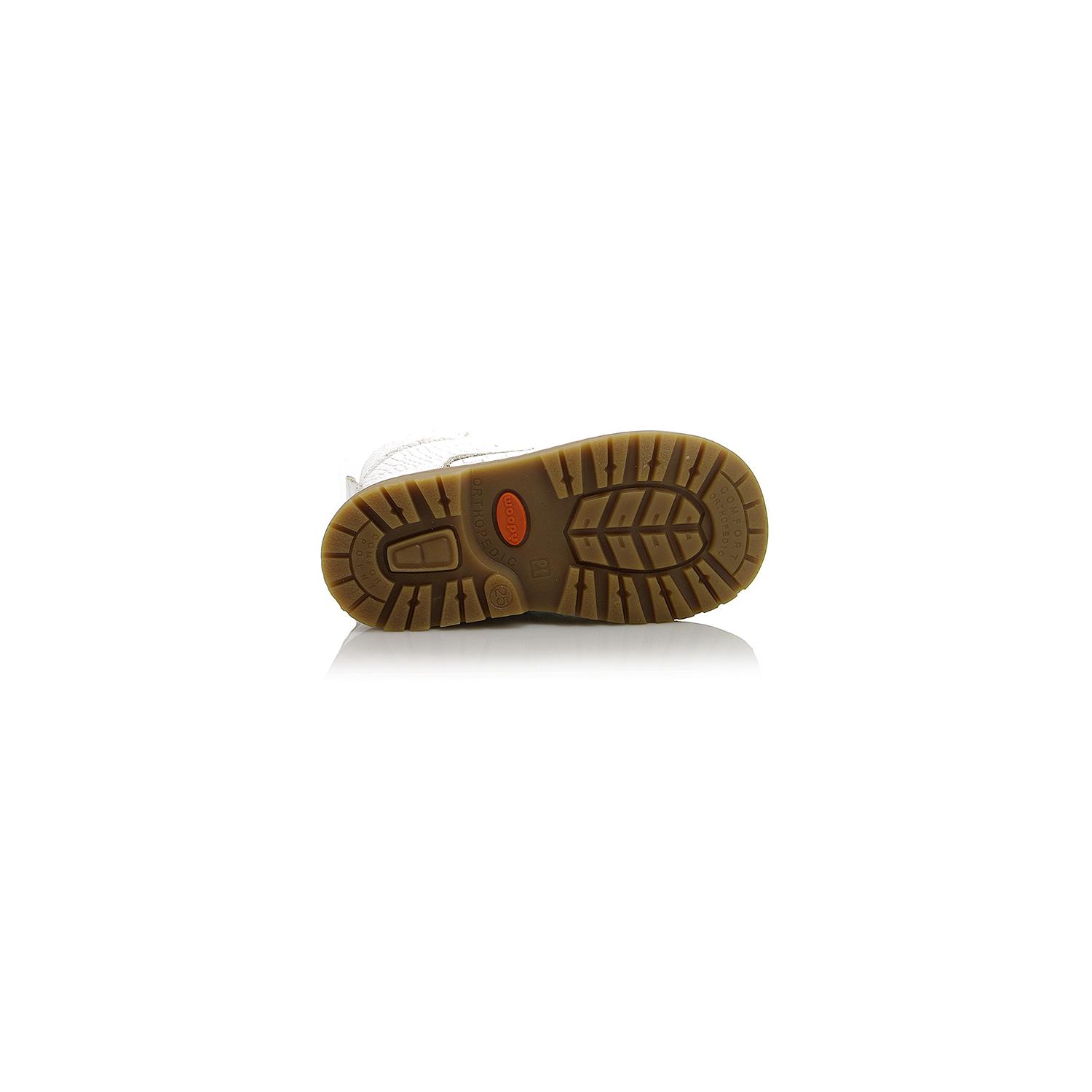 Демисезонные ортопедические ботинки белого цвета. Сверху регулируются шнурками, с внутренней стороны - на молнии. Снаружи кожа, внутри на флисе. Есть супинатор, ортопедический высокий задник, каблук Томаса.