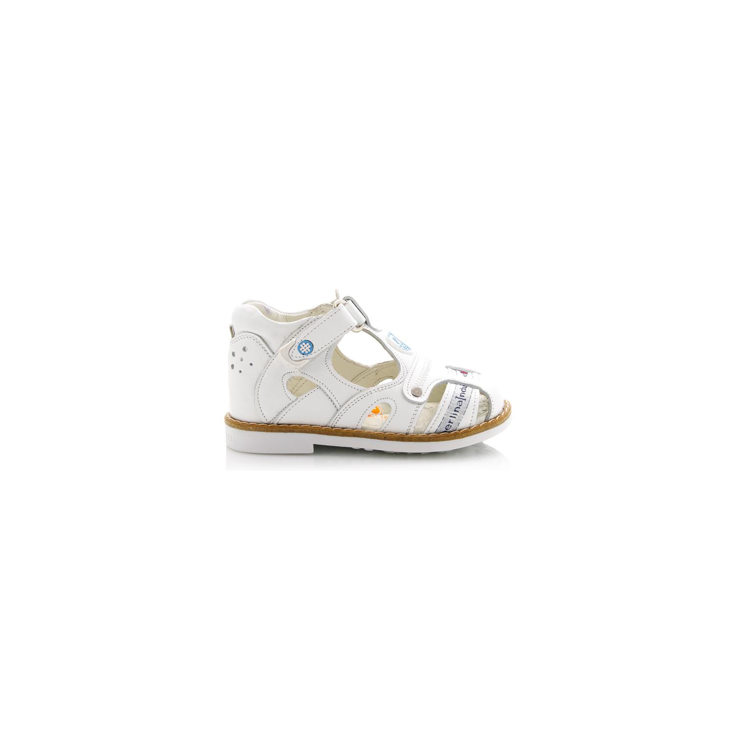 Босоножки ортопедические Perlina белого цвета, сверху фиксируются липучкой. Кожаные внутри и снаружи, есть супинатор, высокая твердая пятка, ортопедический каблук Томаса.