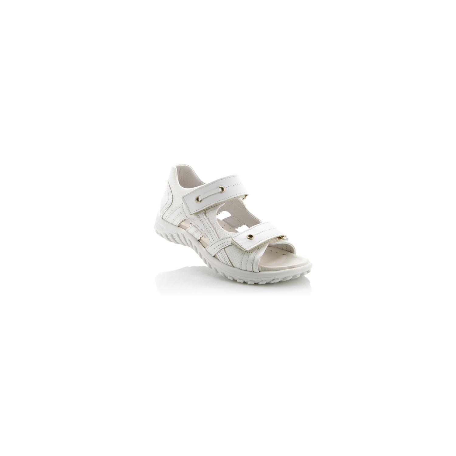 Босоножки Minimen белого цвета, фиксируются 2-мя липучками. Снаружи и внутри кожаные, есть супинатор и твердая пятка.