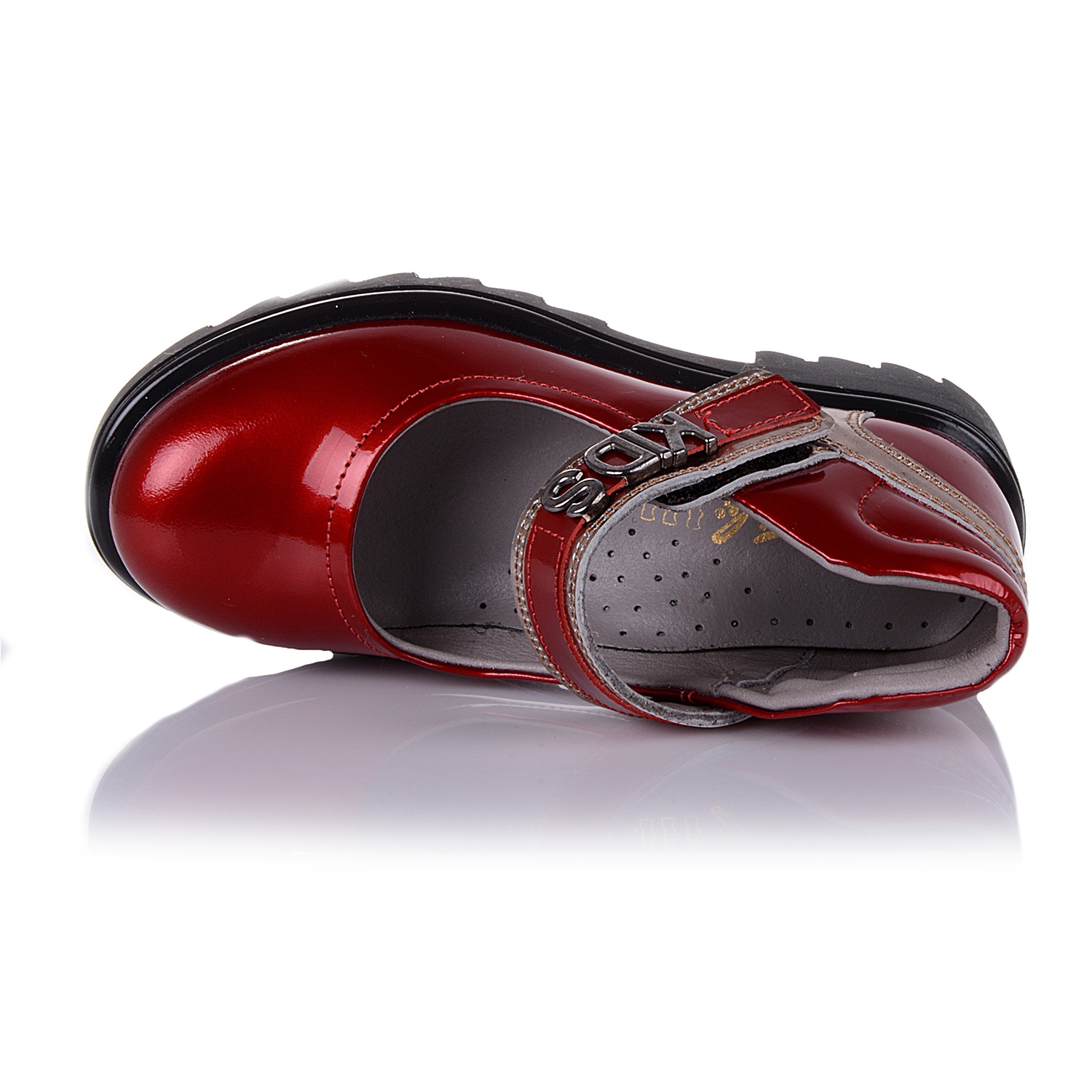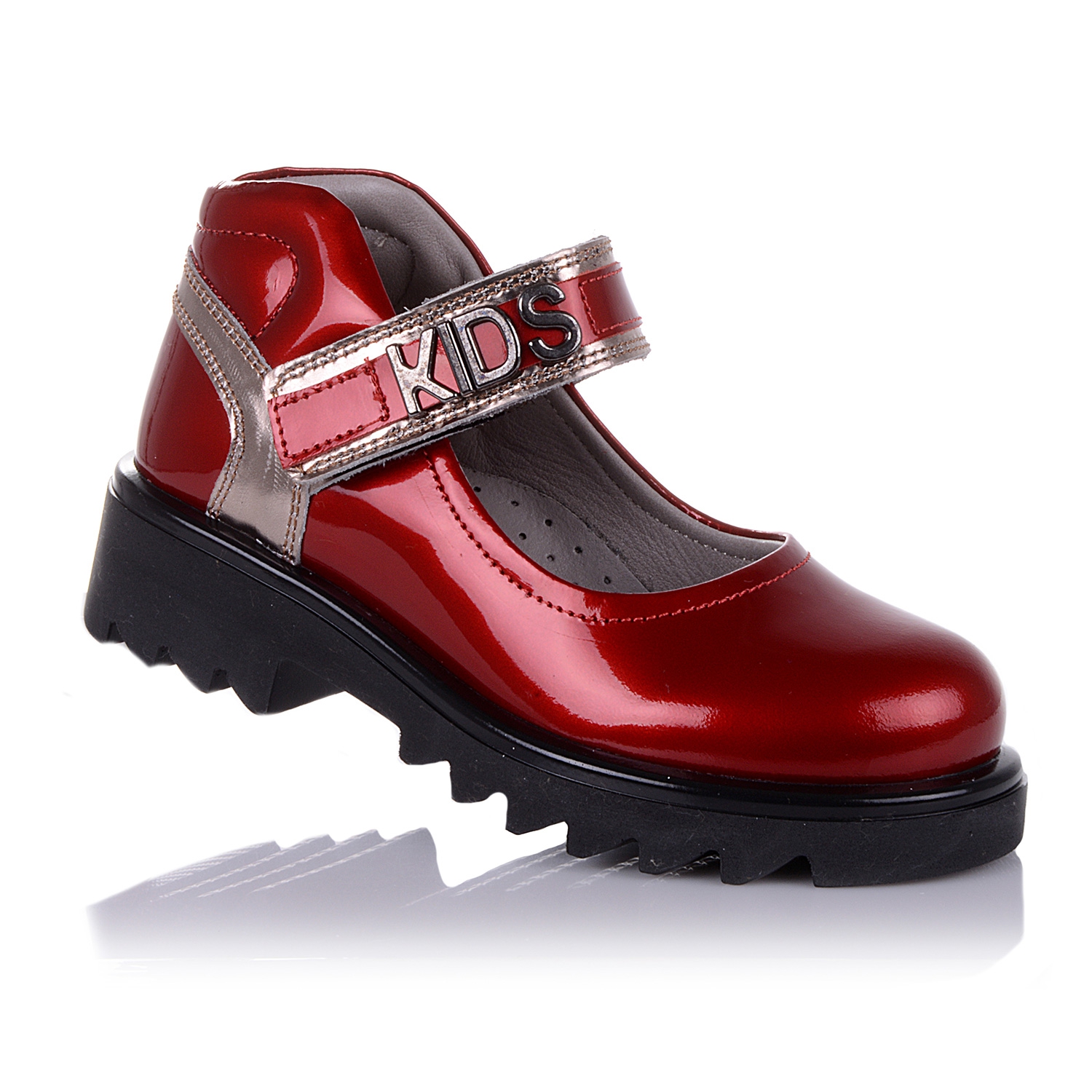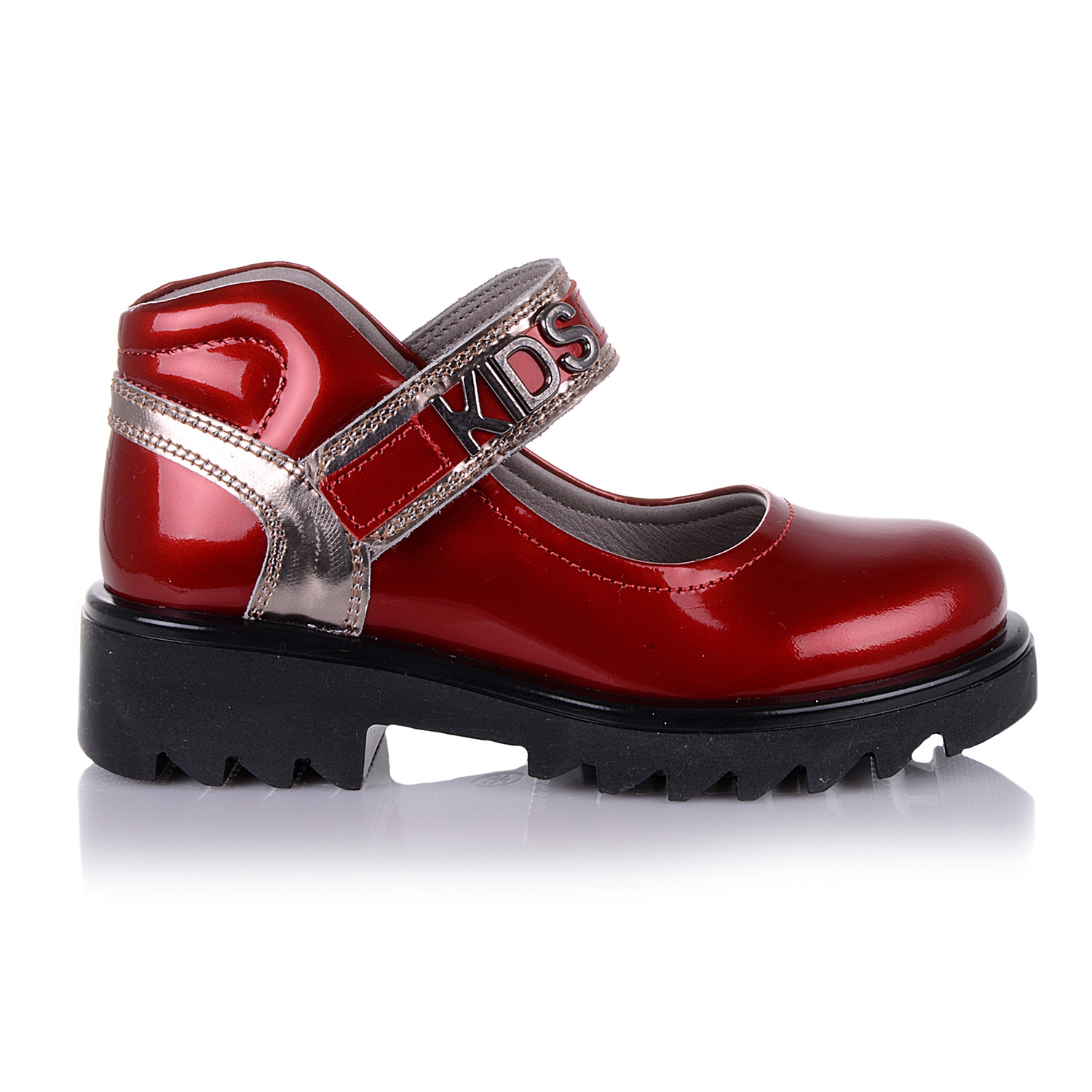 Стильные туфли красного цвета. Сверху регулируются липучкой. Снаружи лакированная кожа, внутри кожаные. Есть твердый задник, супинатор и прочная тракторная подошва.