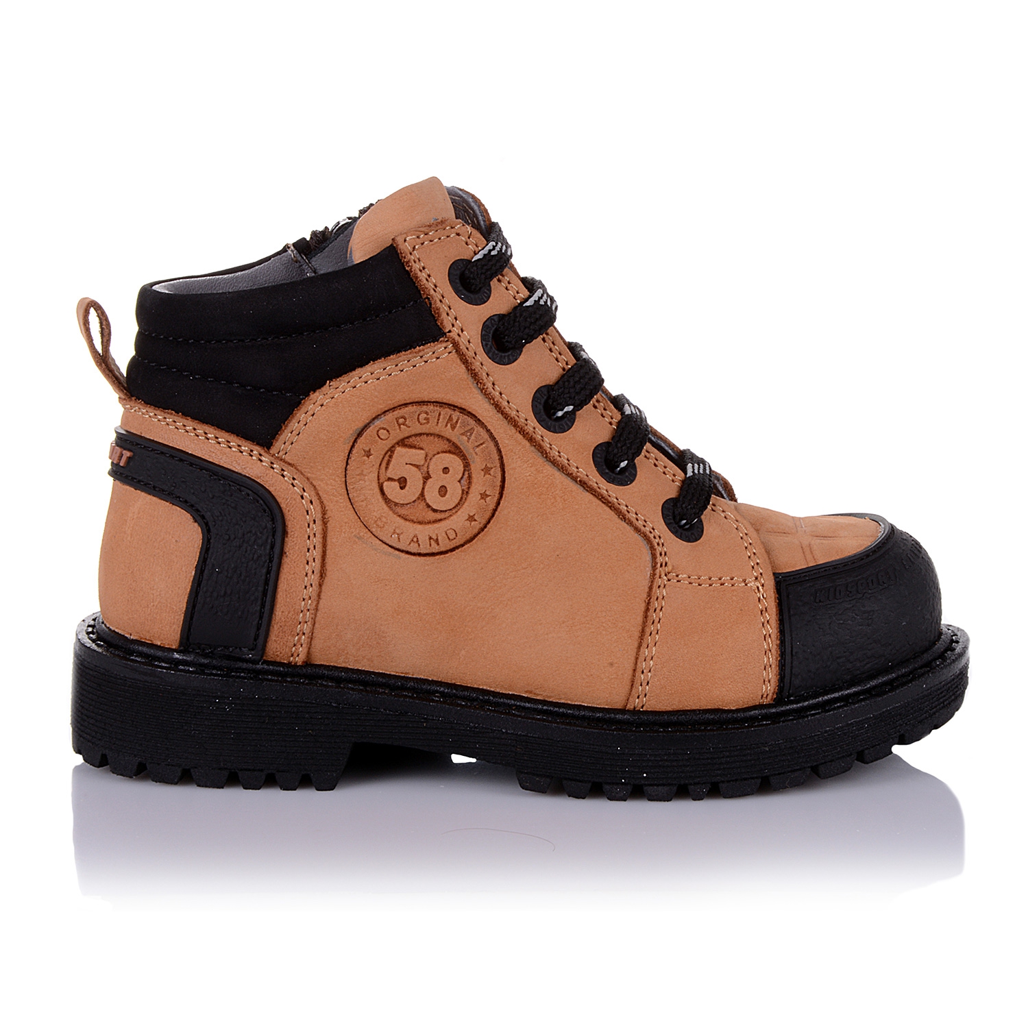 Демисезонные ортопедические ботинки рыжего цвета (с прорезиненным защитным носком). Сверху регулируются шнурками, С внутренней стороны - на молнии. Снаружи нубук, внутри - на флисе. Есть ортопедический каблук Томаса, твердая пятка и супинатор.