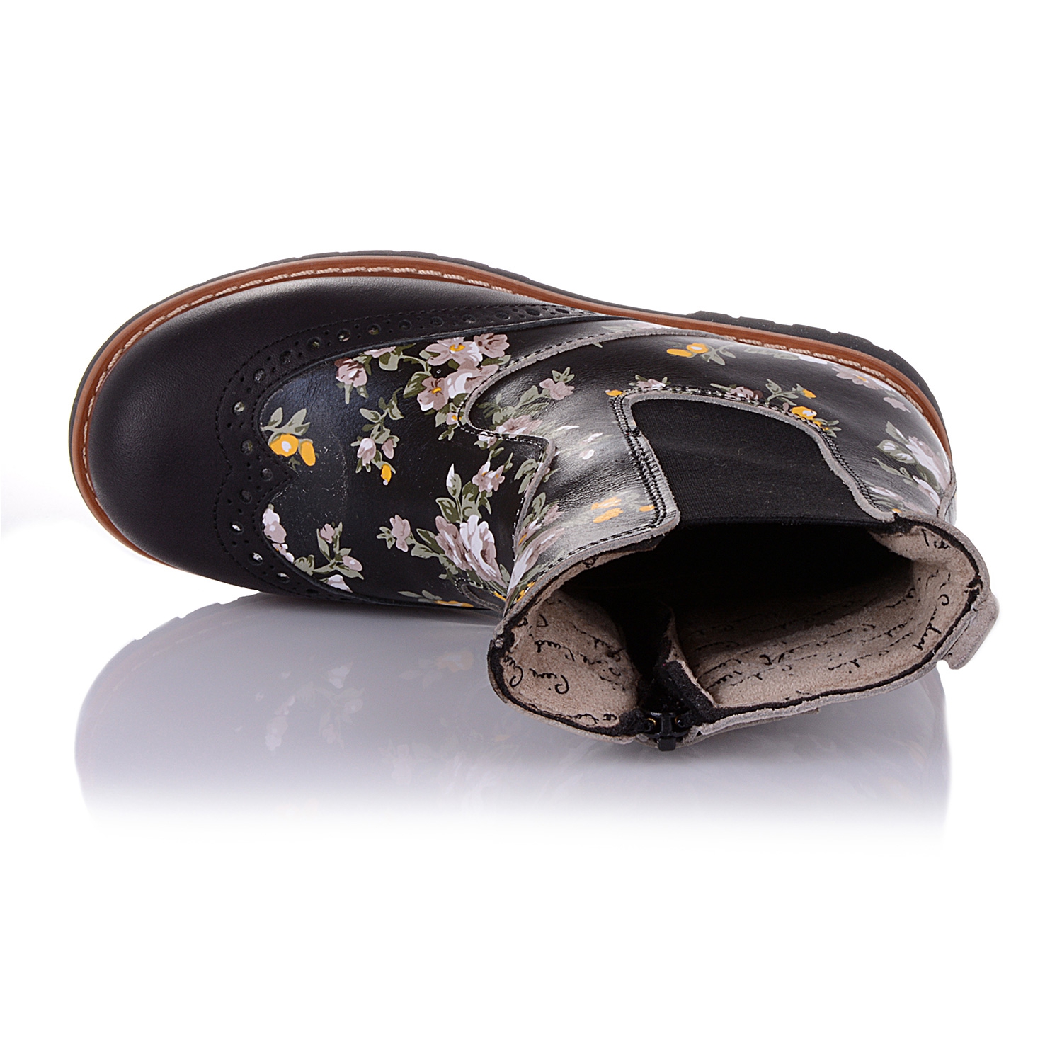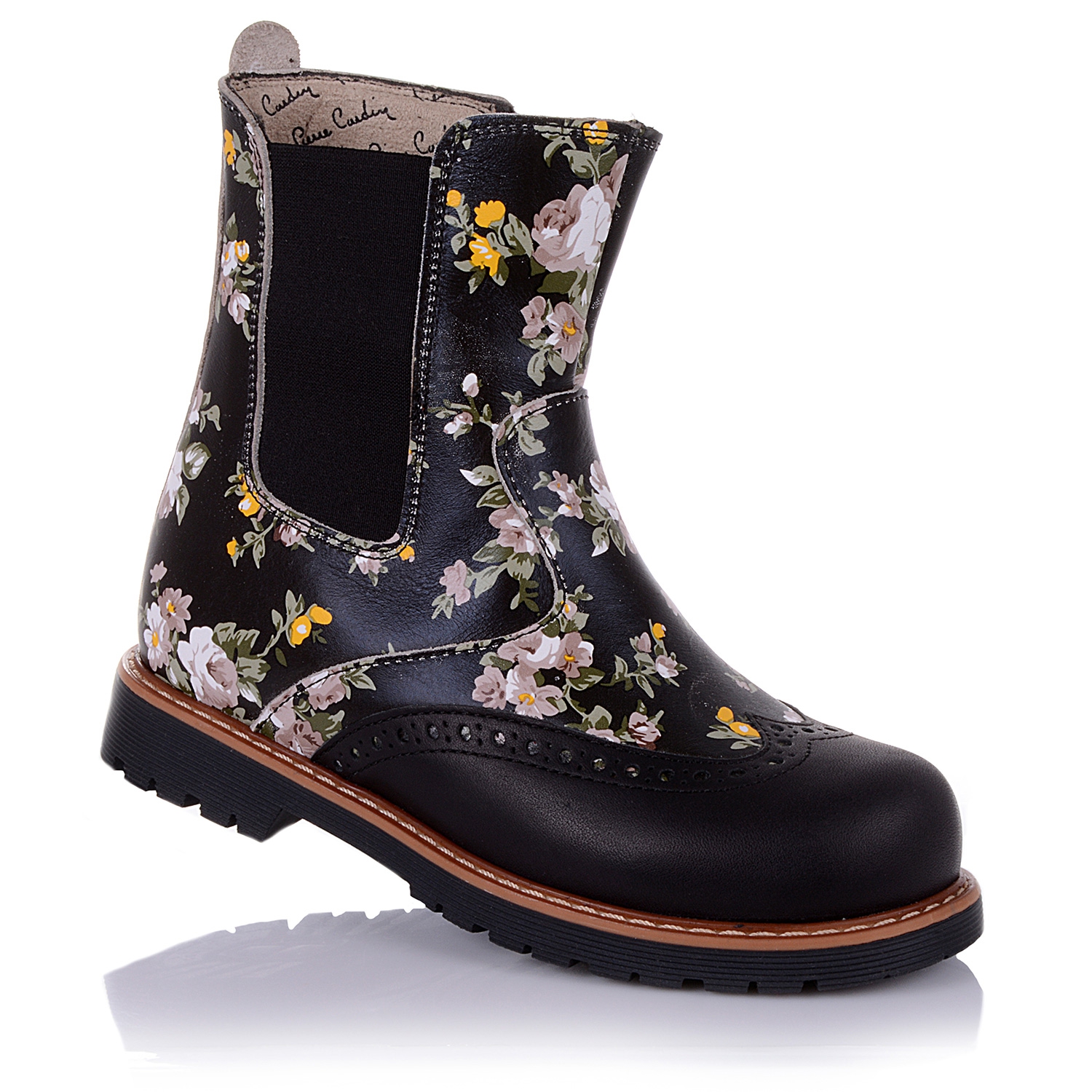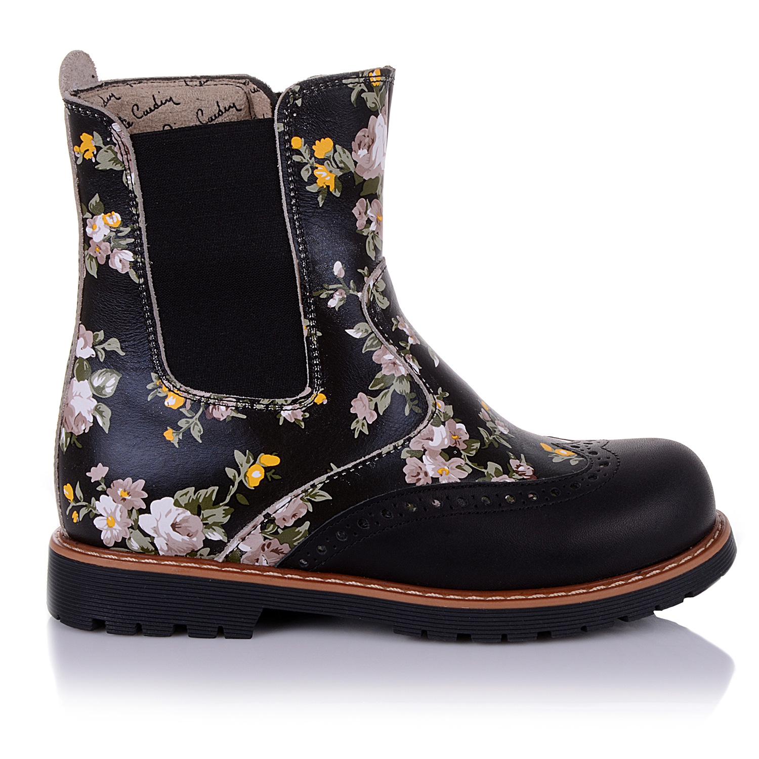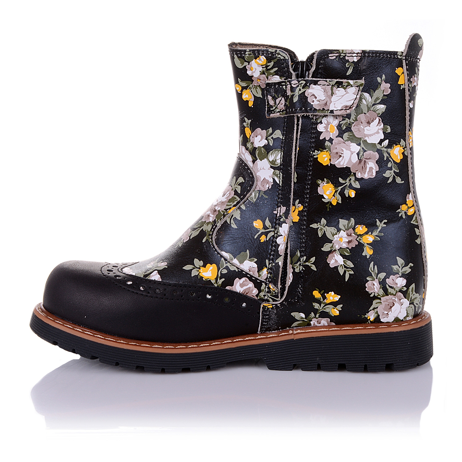 Ортопедические демисезонные сапожки с цветным принтом. С внутренней стороны - на молнии, с внешней на резиночке. Снаружи кожа, внутри - на флисе. Есть супинатор, ортопедическая твердая пятка, каблук Томаса.