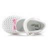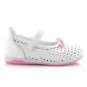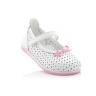 Туфли Tiflani белого цвета с розовым бантиком, сверху фиксируются липучкой. Кожа внутри и снаружи, есть супинатор, твердая пятка.