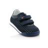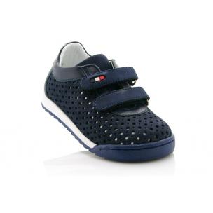Кроссовки Tiflani темно-синего цвета с дырочками, на 2-х липучках. Снаружи и внутри кожаные. Есть супинатор и твердая пятка.