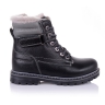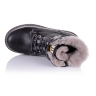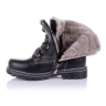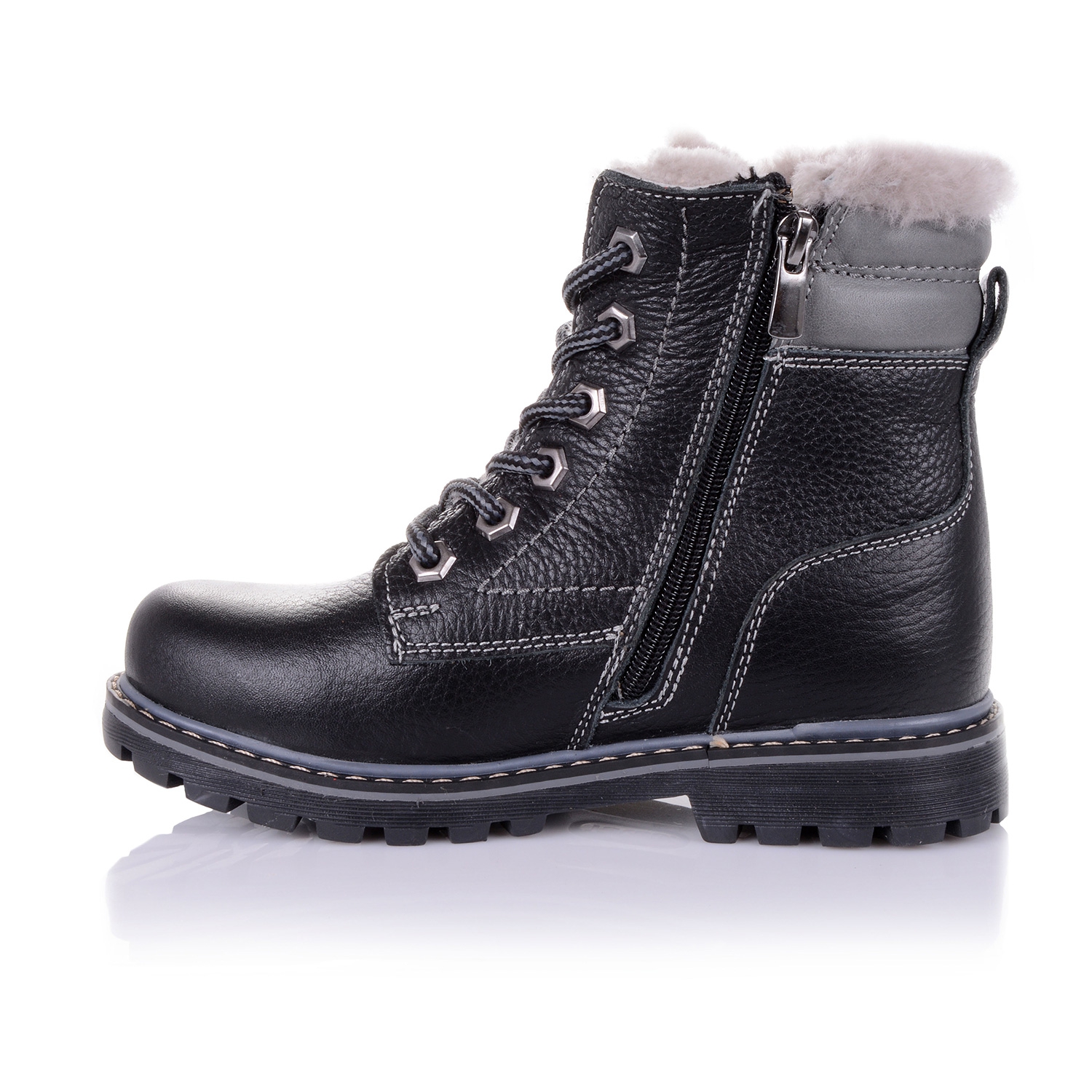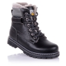 Зимние ортопедические ботинки черного цвета. Сверху регулируются шнурками, сбоку на молнии. Снаружи кожа, внутри - натуральный мех (цигейка). Есть высокий твердый задник, супинатор и тракторная подошва.