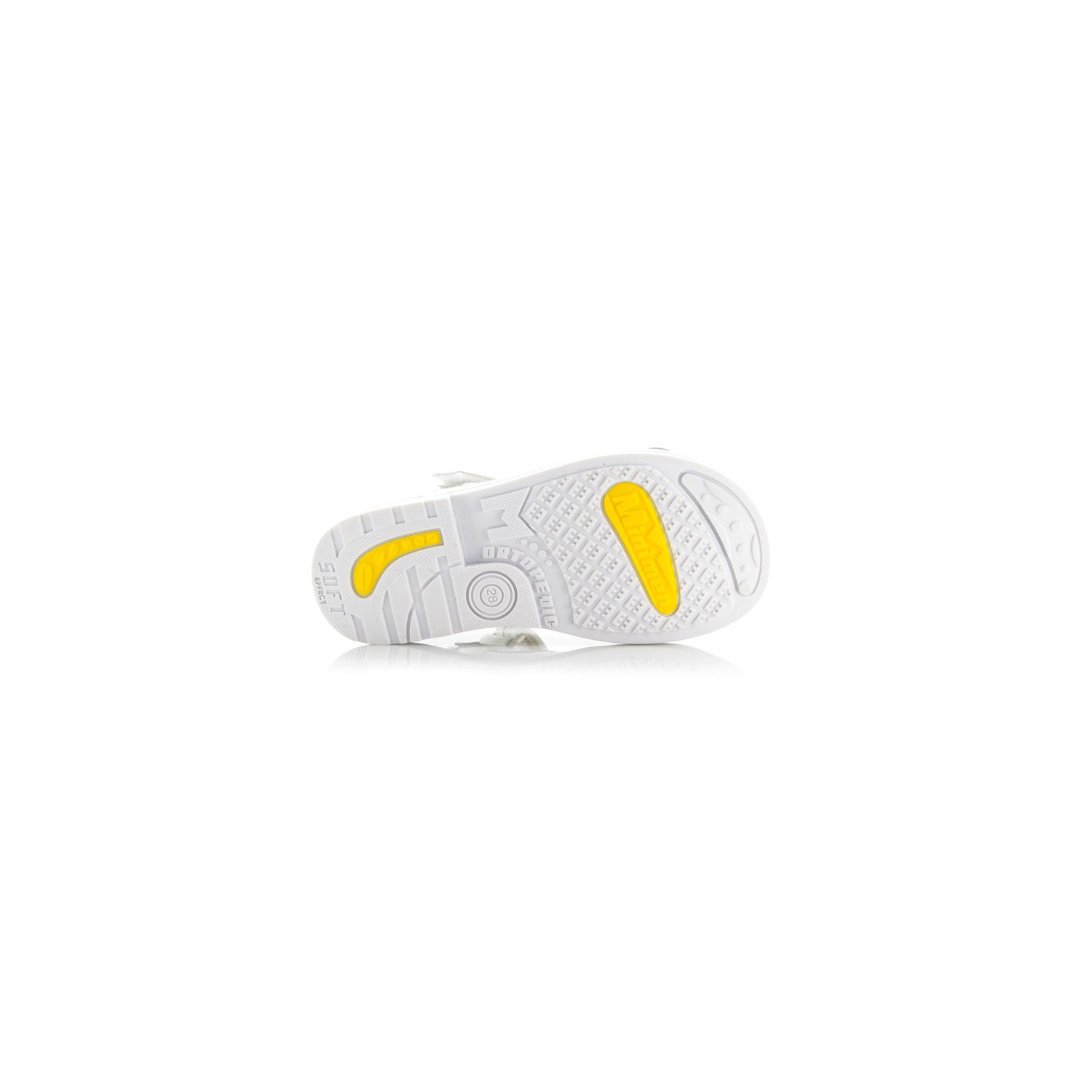Босоножки ортопедические Minimen белого цвета, сверху фиксируются липучкой, снизу 2-мя регулируемыми застежками. Снаружи и внутри кожаные. Высокая твердая пятка, супинатор и ортопедический каблук Томаса.