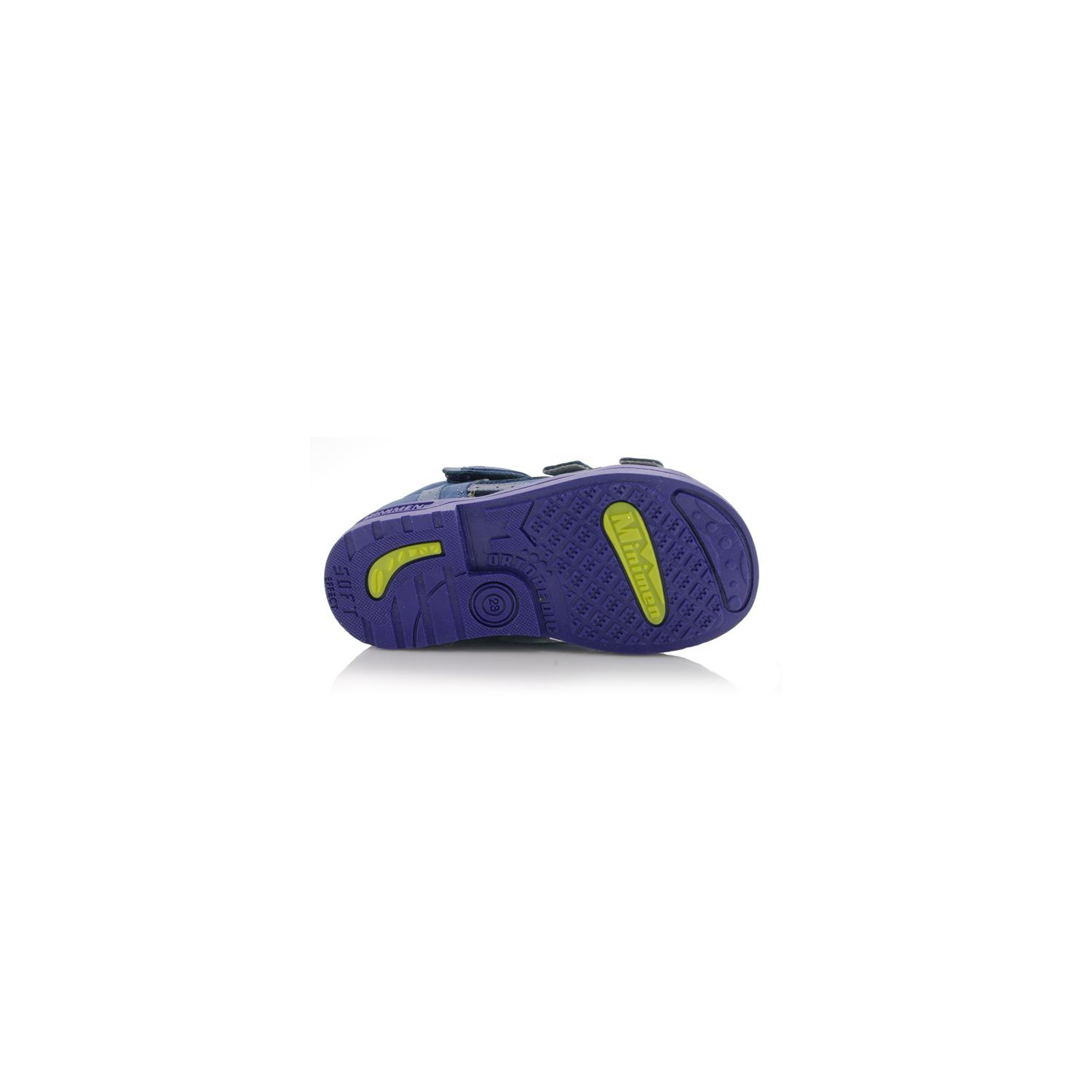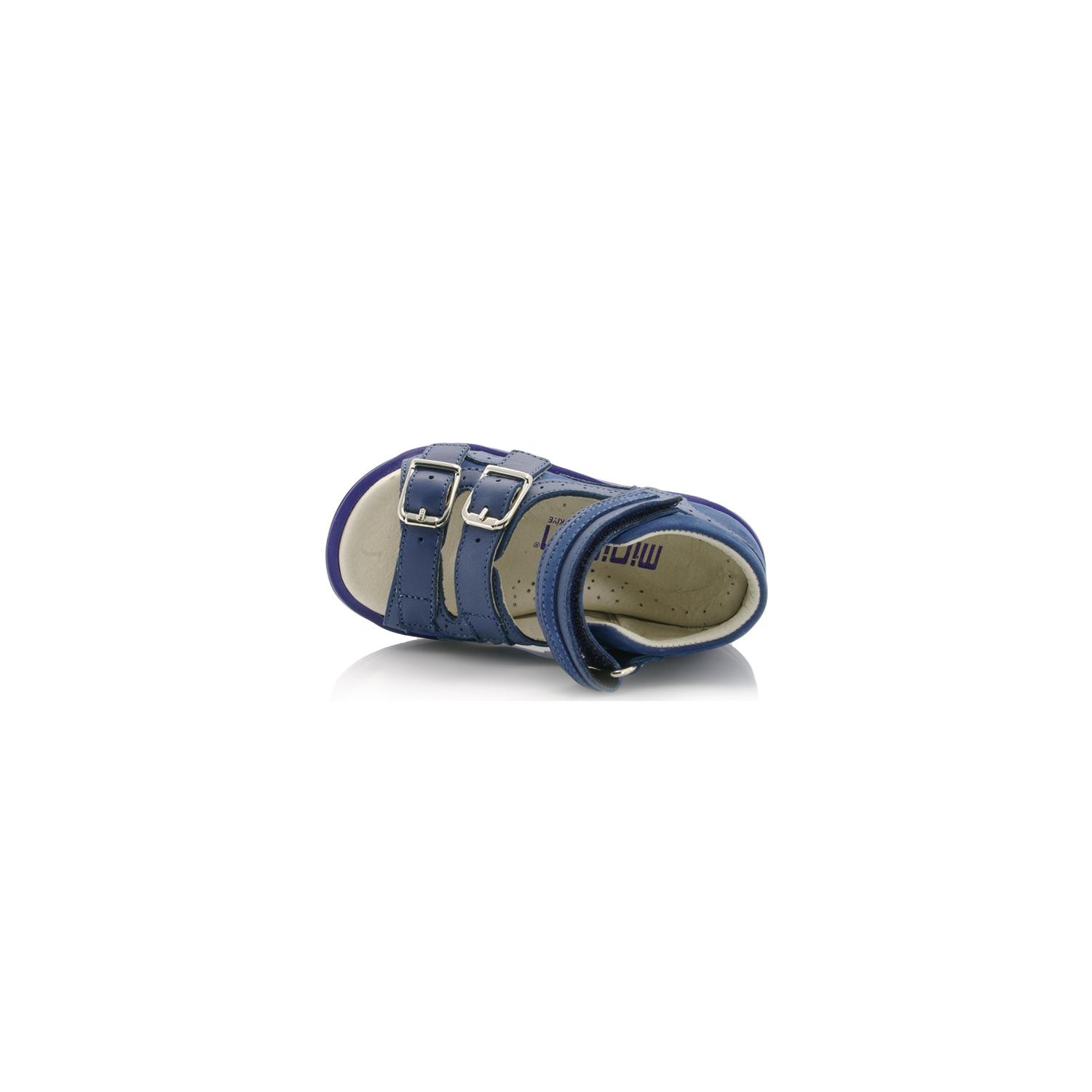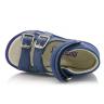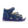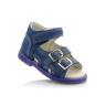 Босоножки ортопедические Minimen синего цвета, сверху фиксируются липучкой, снизу 2-мя регулируемыми застежками. Снаружи кожа + гладкий нубук, внутри - кожа. Высокая твердая пятка, супинатор и ортопедический каблук Томаса.