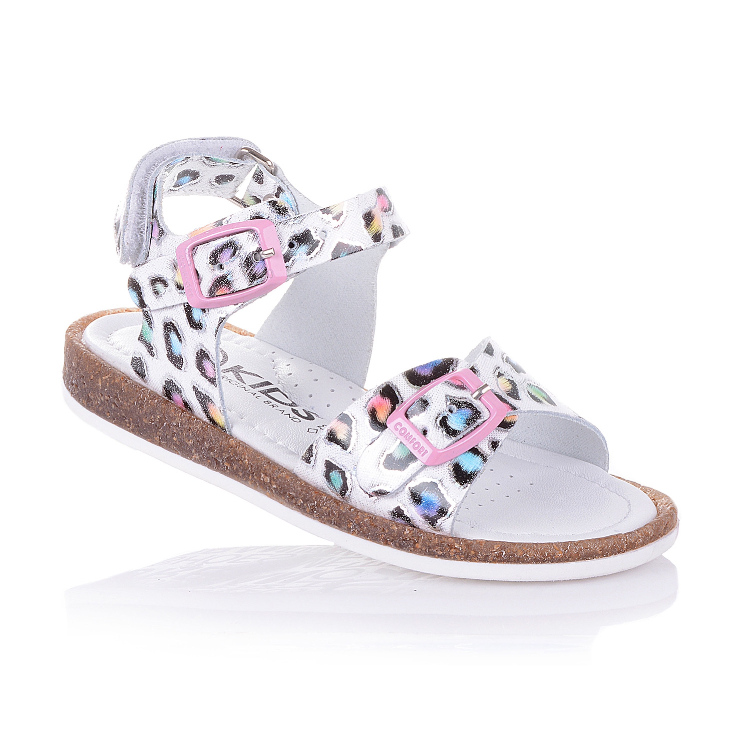Оригинальные ортопедические босоножки из мягкой кожи белого цвета с анималистическим принтом. Удобная фиксация на две застежки и липучку поможет зафиксировать туфли на ногу разной полноты и высоты свода. Кожаная стелька с супинатором обеспечивают физиологически правильное положение ножки. Анатомическая подошва, износостойкая из термокаучука, с имитацией пробкового материала. В такой паре обуви ребёнок будет себя чувствовать легко и непринуждённо.