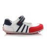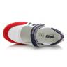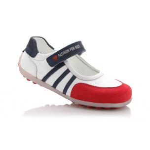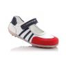Мокасины Tiflani белого цвета с красно-синей вставками, сверху фиксируются липучкой. Снаружи кожа+нубук, внутри кожаные, есть супинатор и твердая пятка.