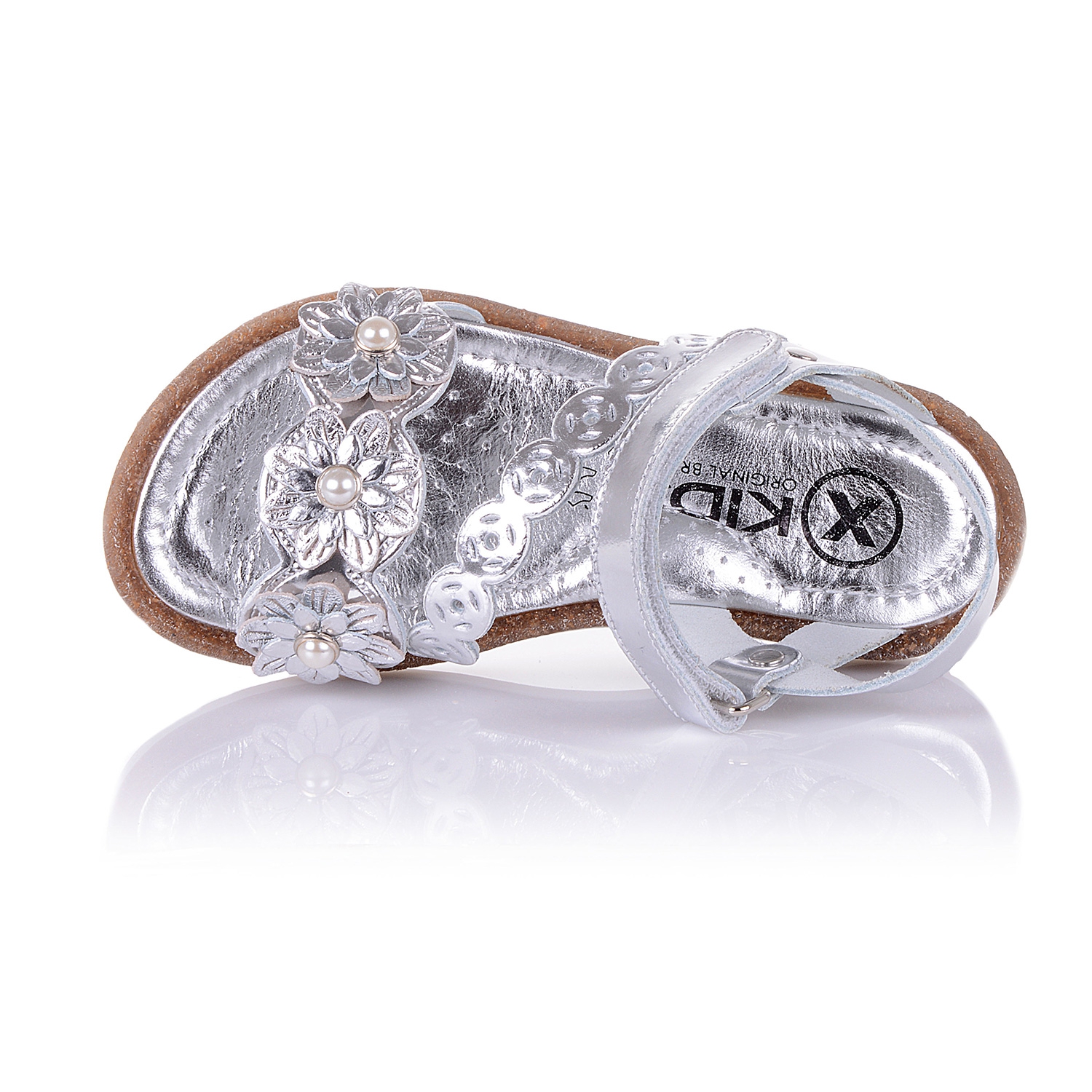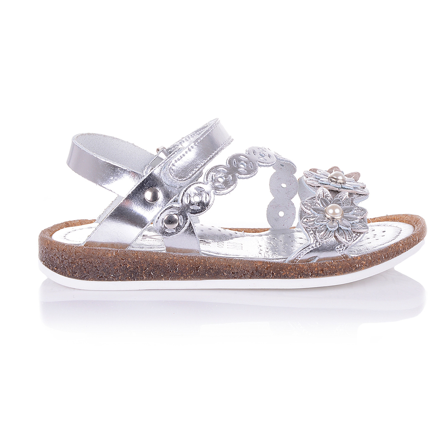 Утонченные ортопедические босоножки из мягкой кожи серебристого цвета с аппликацией из мелких цветочков. Удобная фиксация на липучку поможет зафиксировать туфли на ногу разной высоты свода. Кожаная стелька с супинатором обеспечивают физиологически правильное положение ножки. Анатомическая подошва, износостойкая из термокаучука, с имитацией пробкового материала. В такой паре обуви ребёнок будет себя чувствовать легко и непринуждённо.