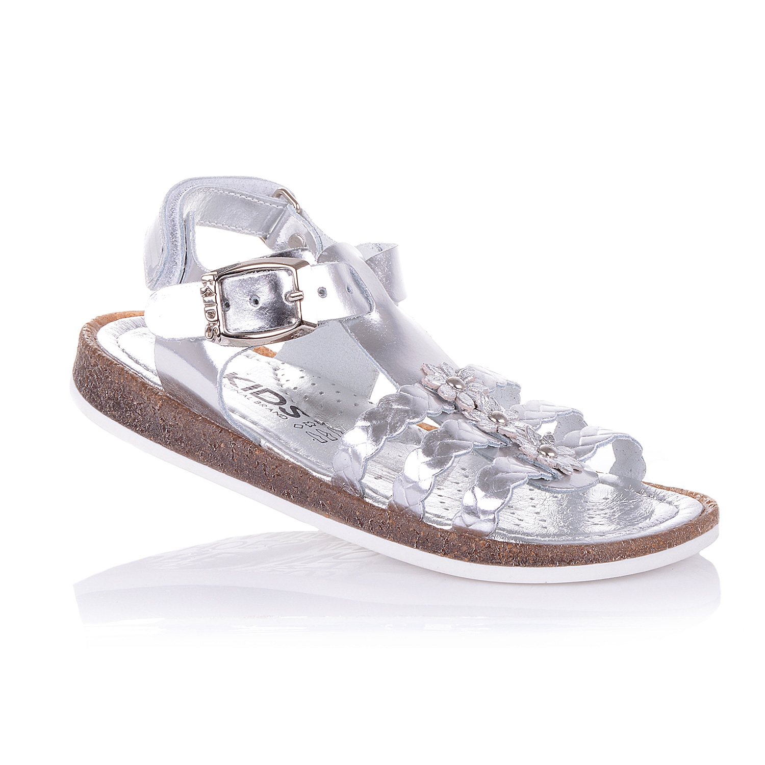 Универсальные ортопедические босоножки из мягкой кожи серебристого цвета с глянцем. Такое цветовое решение позволит носить эту модель под любую одежду. Удобная фиксация на ремешок и липучку поможет подобрать туфли на ногу разной полноты и высоты свода. Кожаная стелька с супинатором обеспечивают физиологически правильное положение ножки. Анатомическая подошва, износостойкая из термокаучука, с имитацией пробкового материала. В такой паре обуви ребёнок будет себя чувствовать легко и непринуждённо.