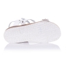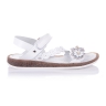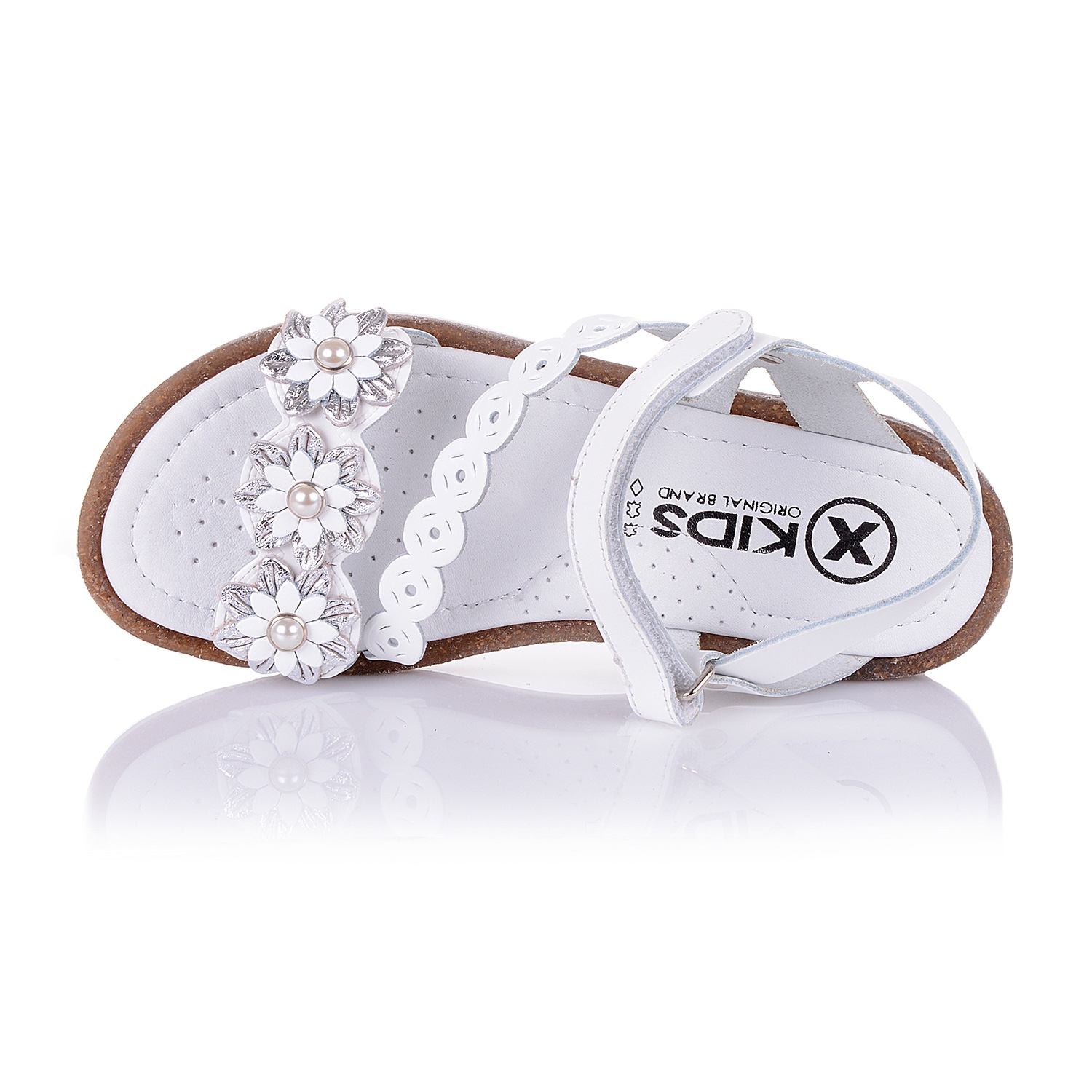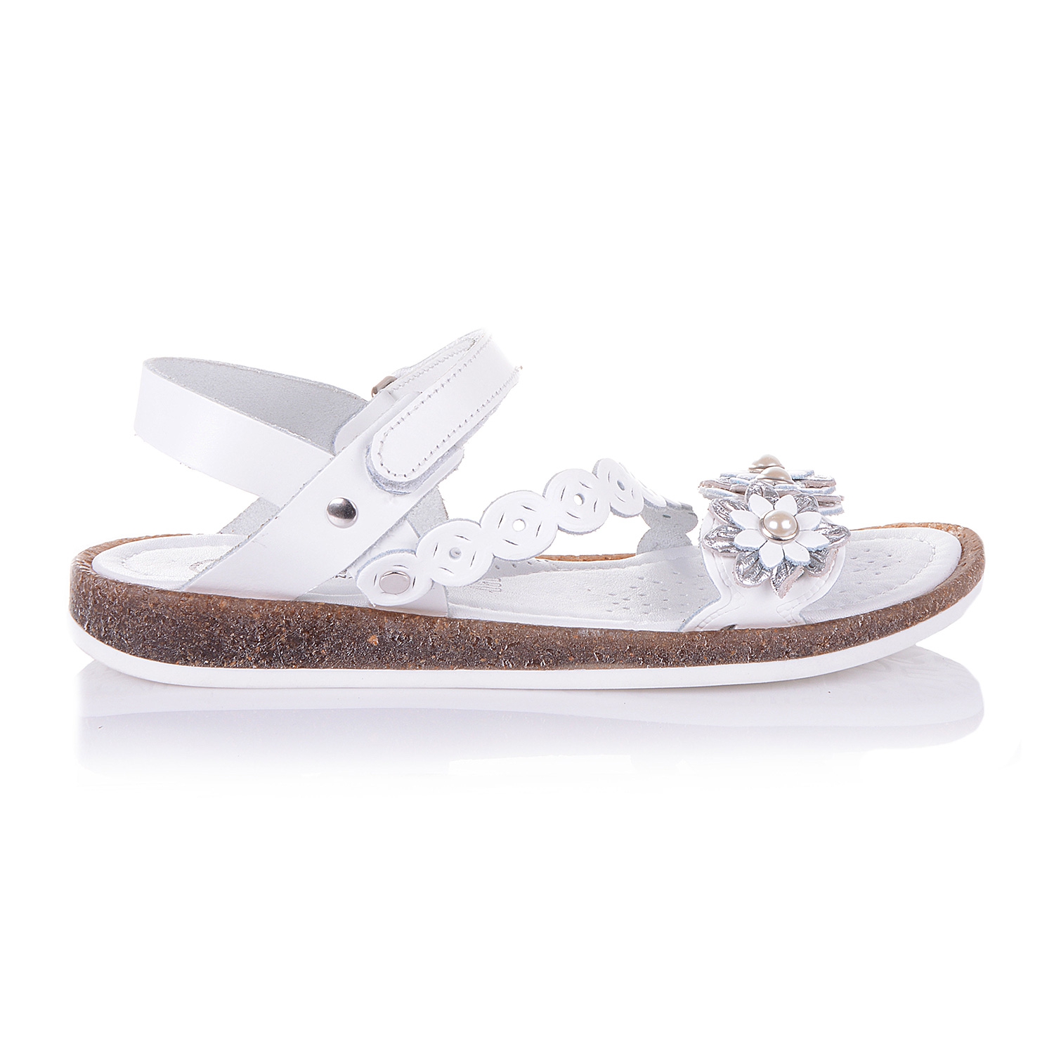 Утонченные ортопедические босоножки из мягкой кожи белого цвета с аппликацией из мелких серебристых и белых цветочков. Удобная фиксация на липучку поможет зафиксировать туфли на ногу разной высоты свода. Кожаная стелька с супинатором обеспечивают физиологически правильное положение ножки. Анатомическая подошва, износостойкая из термокаучука, с имитацией пробкового материала. В такой паре обуви ребёнок будет себя чувствовать легко и непринуждённо.