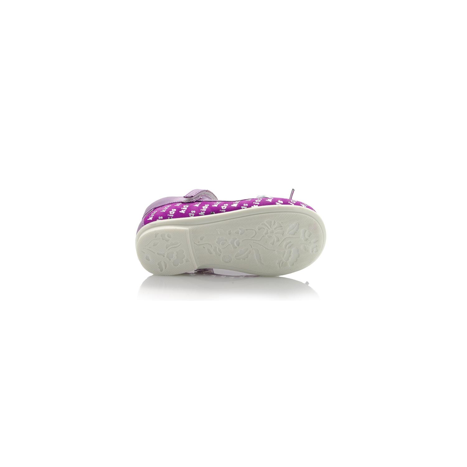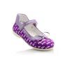 Туфли Tiflani фиолетового цвета с серебристым напылением, сверху фиксируются липучкой. Снаружи кожа + гладкий нубук, внутри - кожа, есть супинатор, твердая пятка.