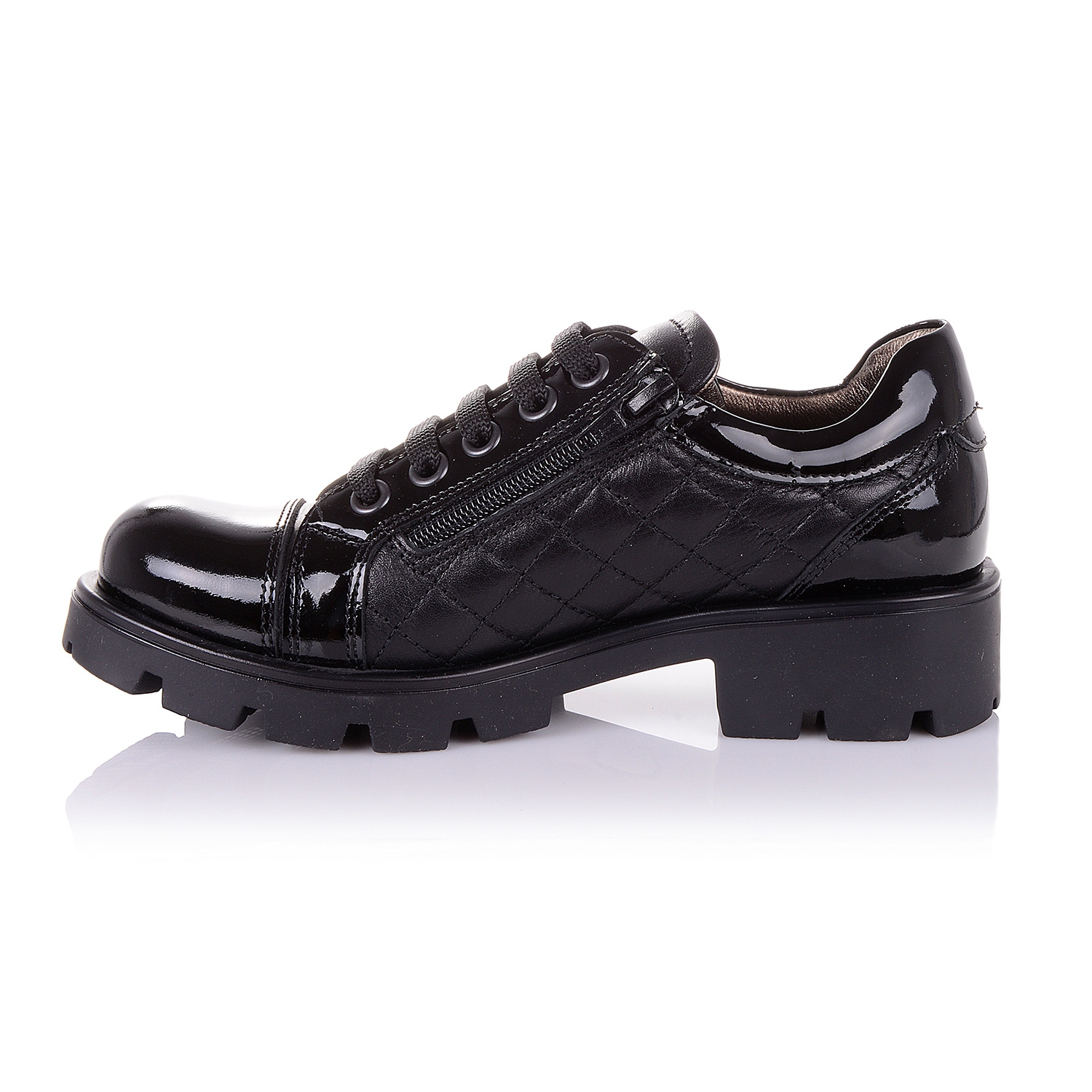 Шикарные туфли броги турецкой фирмы Тиренти на тракторной подошве классического черного цвета. Эта модель послужит отличным акцентом и к городскому образу и к школьной форме. Обувь выполнена из натуральных материалов: гладкая и лакированная кожа. Анатомическая кожаная стелька с твердым супинатором и мягкой прослойкой в пяточной части, поддержит свод стопы и поспособствует здоровому развитию мышц. О фиксации щиколотки позаботится жесткий задник. Подошва, износостойкая из термокаучука- мягкая, при ходьбе амортизирует. Надевать такие туфли - секундное дело, ведь помимо шнурков в них есть ещё и молния сбоку. В правильной ортопедической обуви класса премиум +, ваш ребенок будет чувствовать себя комфортно и эксклюзивно!