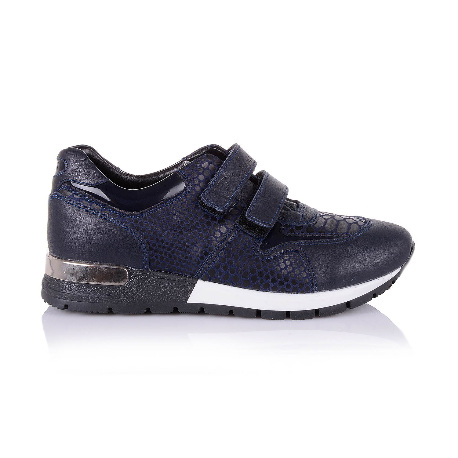Очень практичные кроссовки на завышенной подошве темно-синего цвета из натуральной кожи со вставками из текстиля по бокам, придает модели необычную оригинальность. Нога любого обьема отлично фиксируется двумя липучками. Анатомическая стелька с твердым супинатором и мягкой прослойкой в пяточной части, поддержит свод стопы и поспособствует здоровому развитию мышц. О фиксации щиколотки позаботится жесткий задник. Подошва, ребристая износостойкая из термокаучука- мягкая, при ходьбе амортизирует. Шикарный выбор как для спорта, так и для ежедневных прогулок. Ваш ребенок останется доволен.