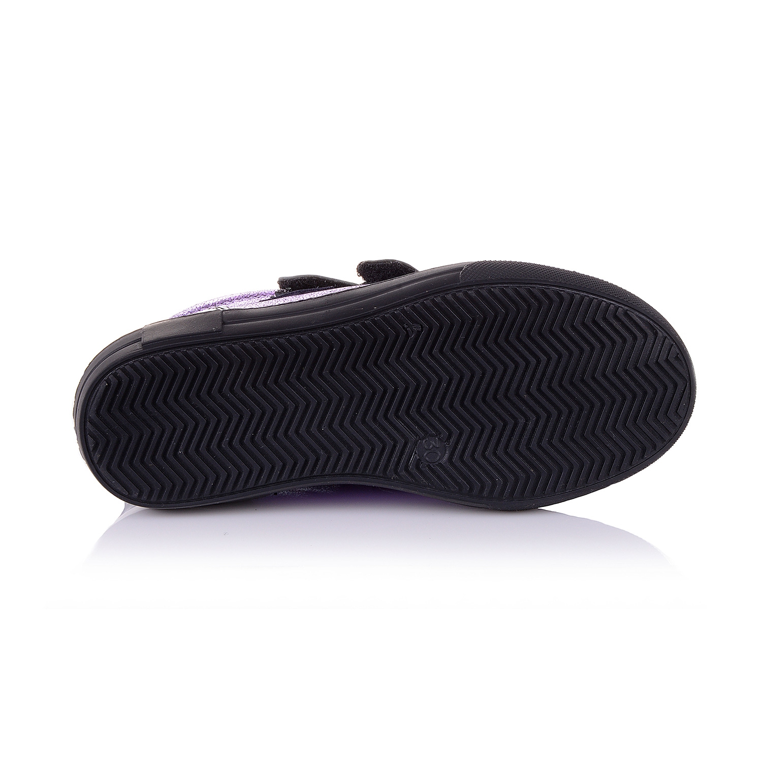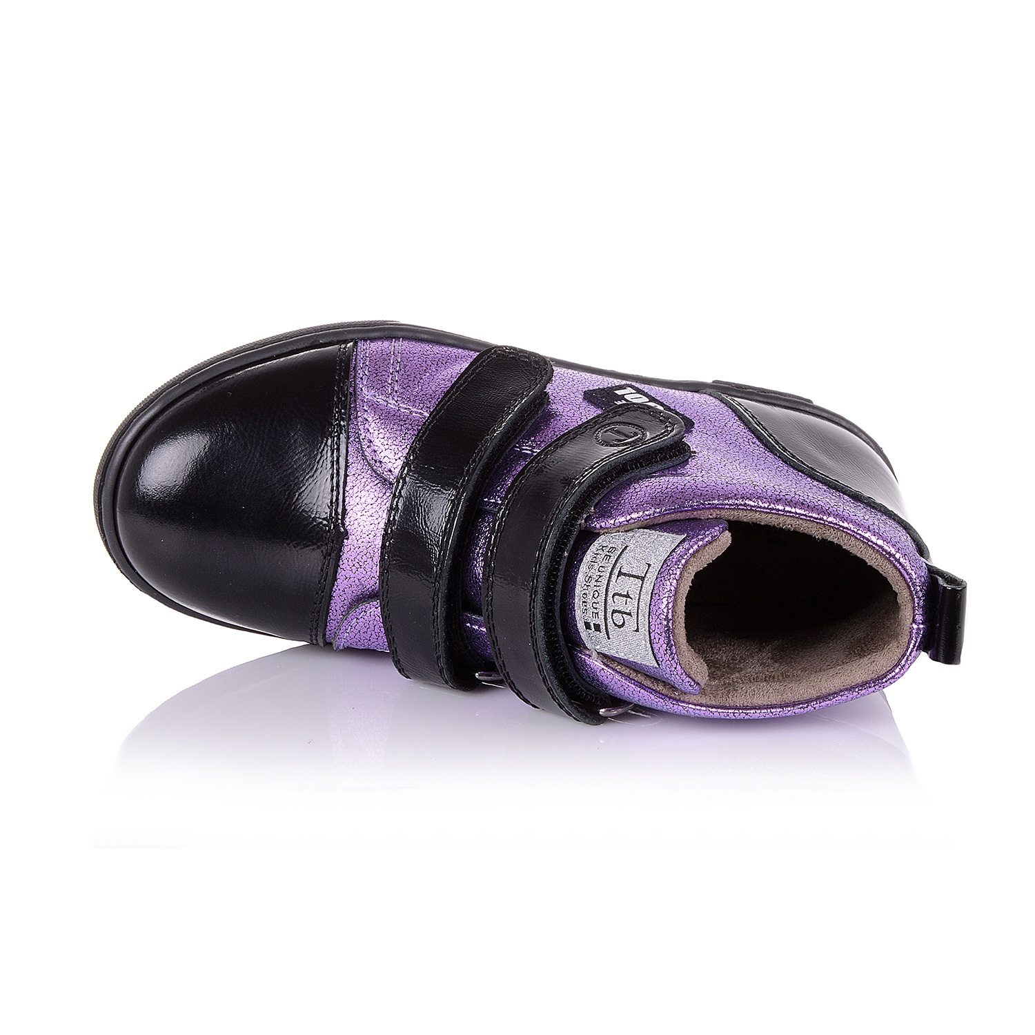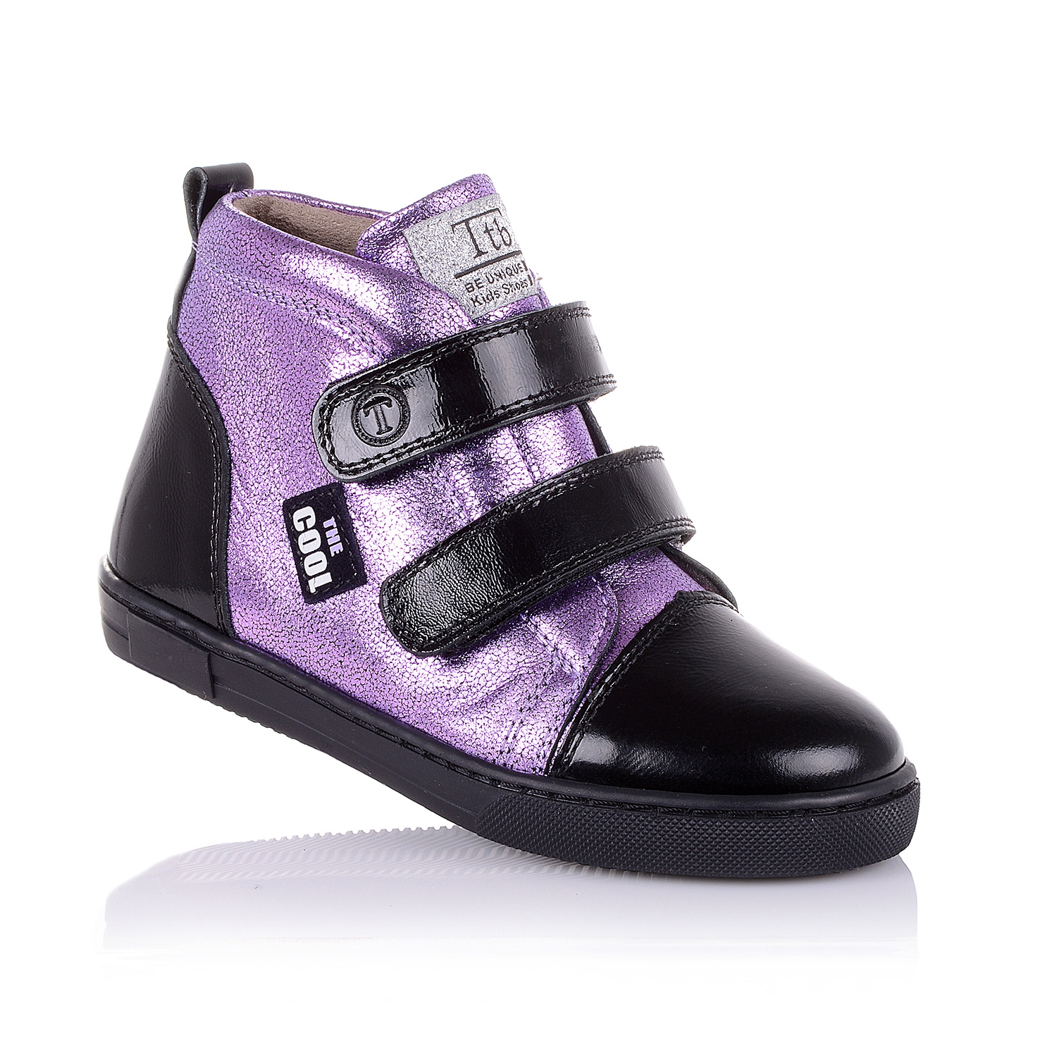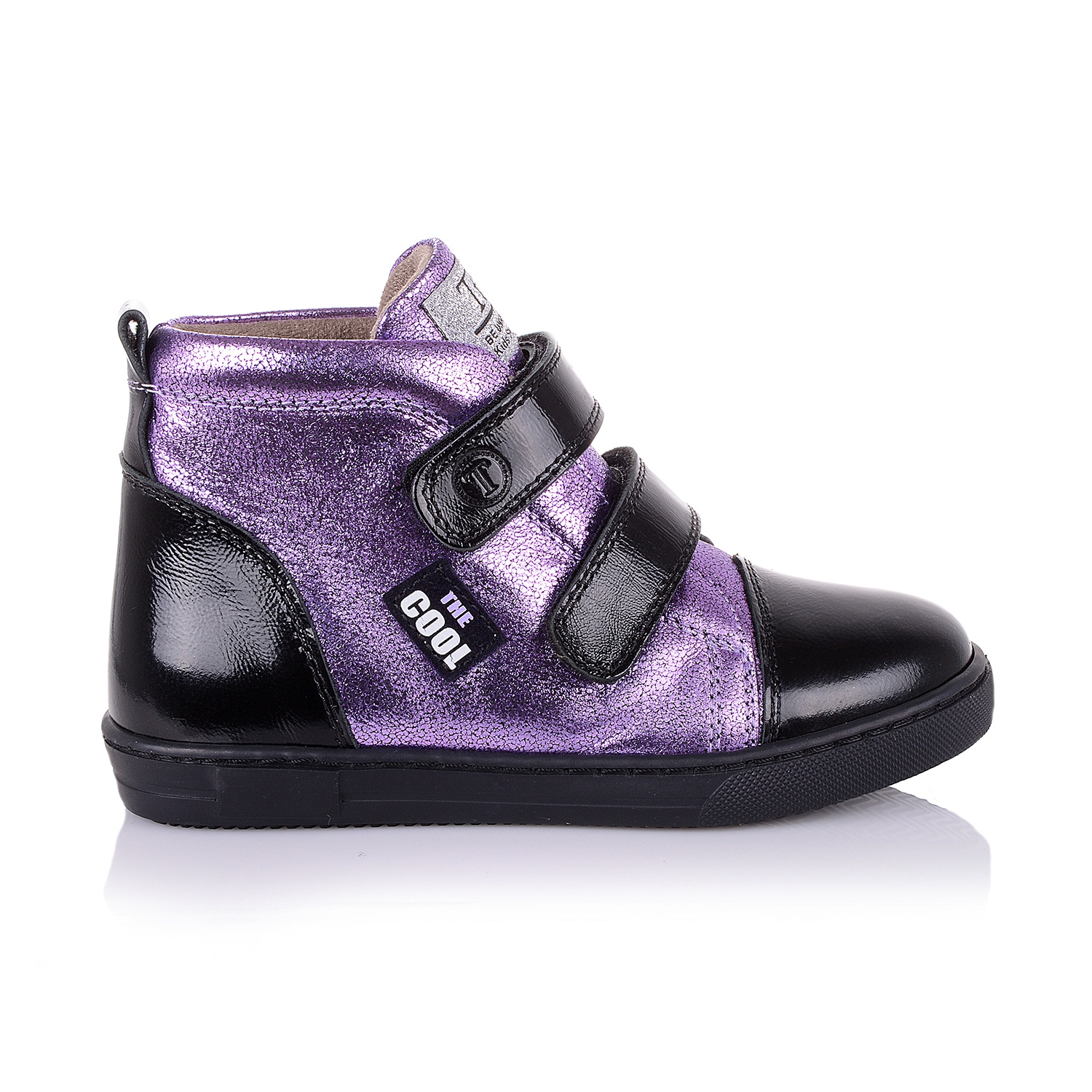 Модные ботинки для девочки, выполнены из натуральной кожи черного и фиолетового цвета с глянцем, выглядят ярко и сразу бросаются в глаза. Внутри- плотный флис. Удобная фиксация на две липучки позволяет подобрать обувь на ногу разной полноты и высоты свода. Анатомическая стелька с твердым супинатором и мягкой прослойкой в пяточной части, поддержит свод стопы и поспособствует здоровому развитию мышц. О фиксации щиколотки позаботится жесткий задник. Подошва плотная из термокаучука, достаточно хорошо гнется. Экспериментируйте и создавайте самые красивые образы с обувью Тутуби.