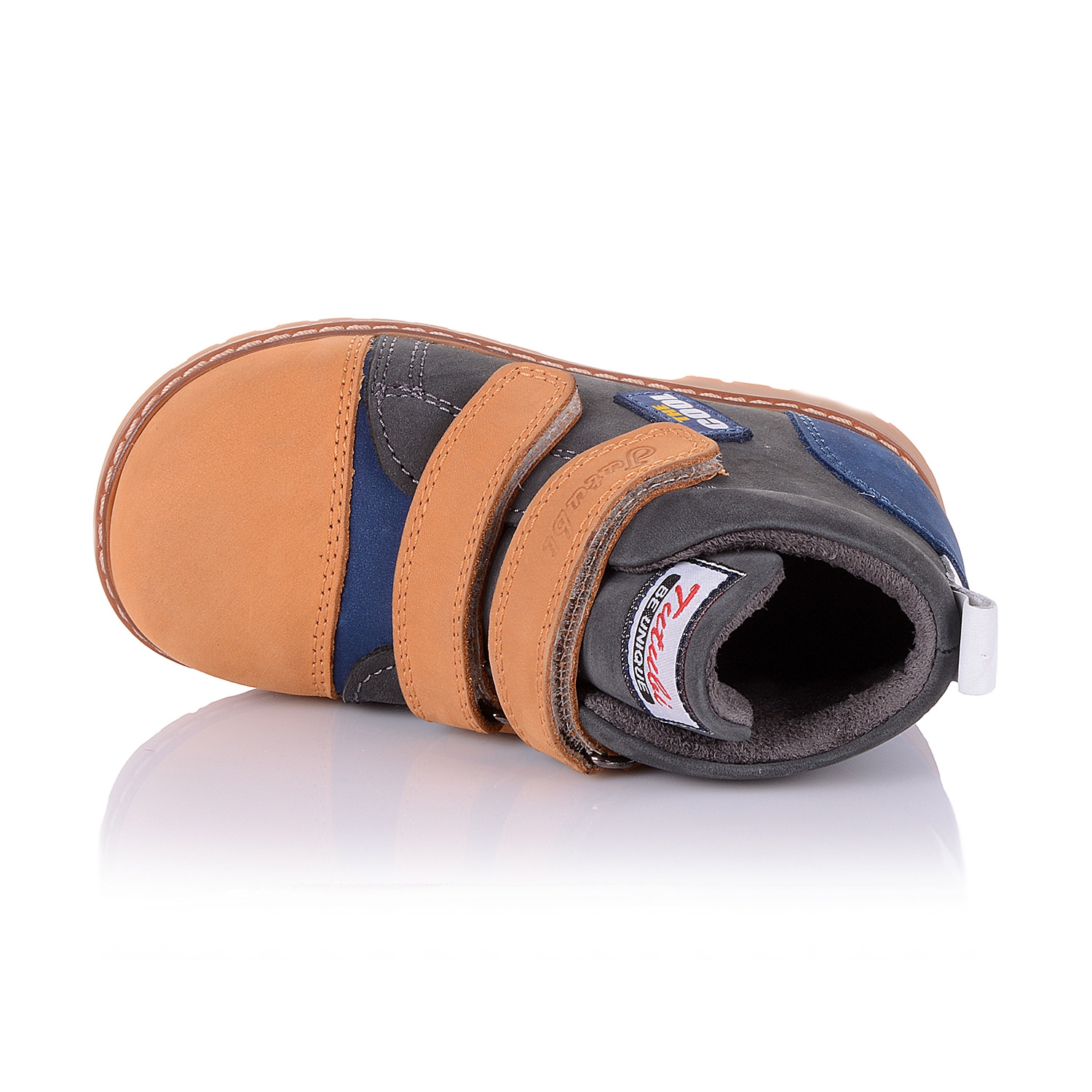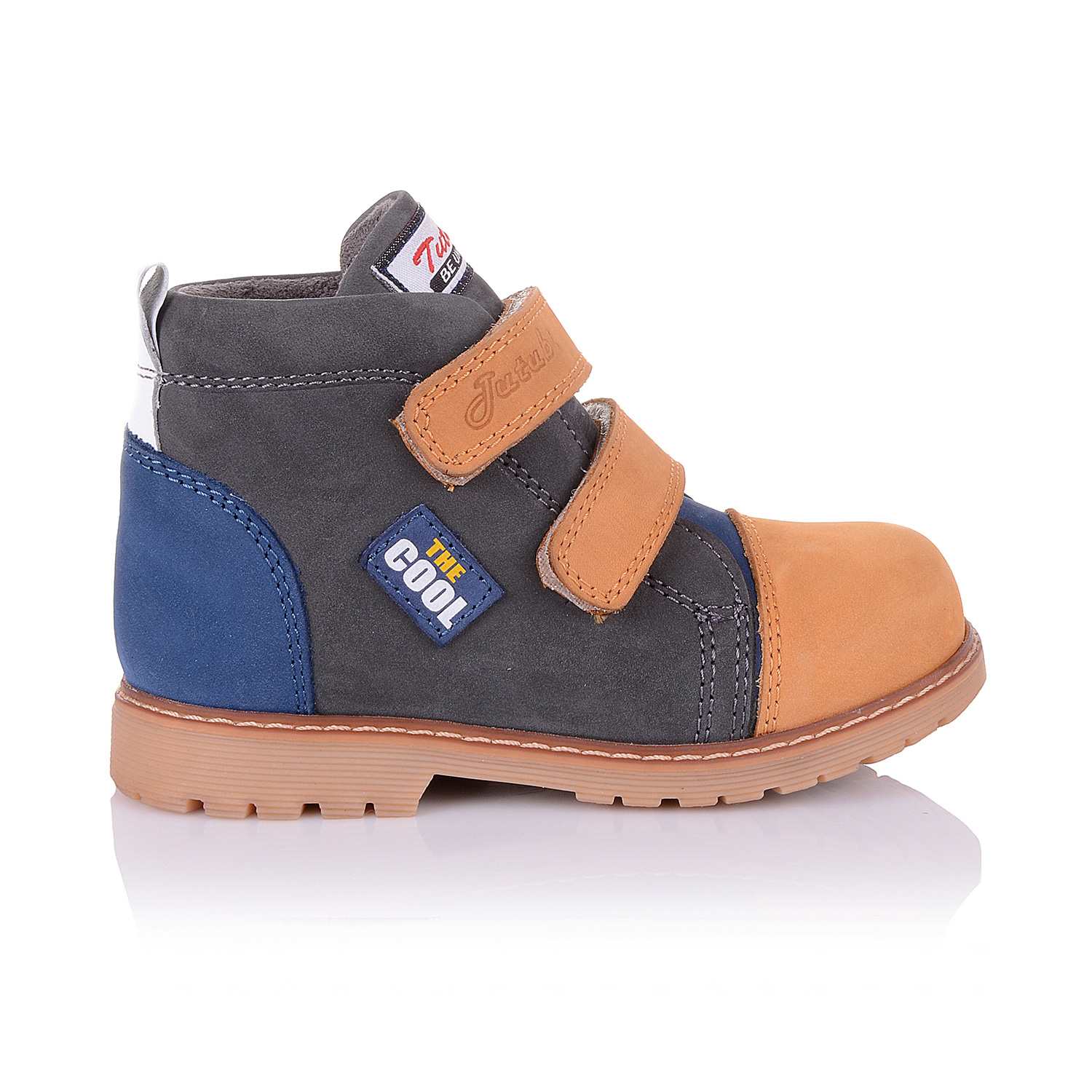 Невероятно стильные и удобные ортопедические демисезонные ботинки- идеальны для города! Снаружи ботинки выполнены из натурального нубука насыщенного горчичного цвета со вставками из серого и синего цвета, внутри- плотная мягкая байка. Удобная фиксация на две липучки позволяет подобрать обувь на ногу разной полноты и высоты свода. Каблук Томаса с удлиненным внутренним краем обеспечит правильную постановку ноги. Анатомическая стелька с супинатором поддержит свод стопы и поспособствует здоровому развитию мышц. О фиксации голенища и щиколотки позаботятся укрепленные берцы и жесткий задник. А хрупкие суставы будут защищены от чрезмерных нагрузок благодаря амортизационной вставке. Не отказывайте своему сокровищу носить правильную ортопедическую обувь класса премиум+.
