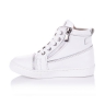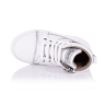 Шикарные ботинки сезон осень 2016г. для незабываемого образа Вашей модницы. Снаружи ботинки выполнены из натуральной кожи белого цвета с неброским логотипом производителя сбоку- модный тренд этого сезона, внутри- плотная мягкая байка. Надевать такую обувь- секундное дело, ведь помимо шнурков, в ней есть змейка сбоку. Анатомическая стелька с супинатором поддержит свод стопы и поспособствует здоровому развитию мышц. О фиксации голенища и щиколотки позаботятся укрепленные берцы и жесткий задник. А хрупкие суставы будут защищены от чрезмерных нагрузок благодаря амортизации термопластичной подошвы. В такой обуви класса премиум +, ребенок будет чувствовать себя эксклюзивно!