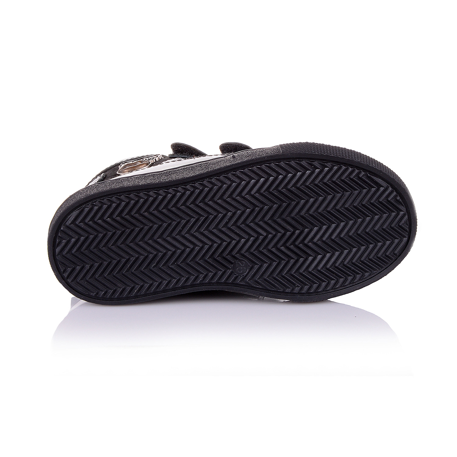 Стильные ботинки для девочки на ровной подошве, выполнены из натуральной кожи черного цвета со вставками серебристого цвета, выглядят ярко и сразу бросаются в глаза. Внутри- плотный флис. Удобная фиксация на две липучки позволяет подобрать обувь на ногу разной полноты и высоты свода. Анатомическая стелька с твердым супинатором и мягкой прослойкой в пяточной части, поддержит свод стопы и поспособствует здоровому развитию мышц. О фиксации щиколотки позаботится жесткий задник. Подошва плотная из термокаучука, достаточно хорошо гнется. Экспериментируйте и создавайте самые красивые образы с обувью Тутуби.