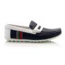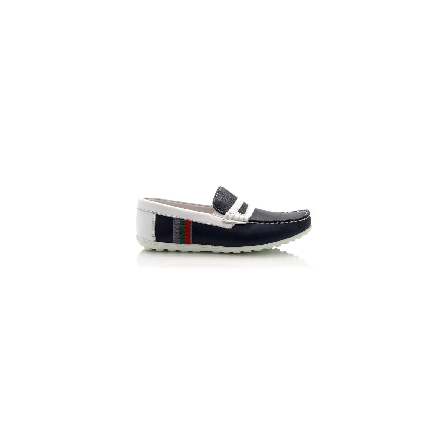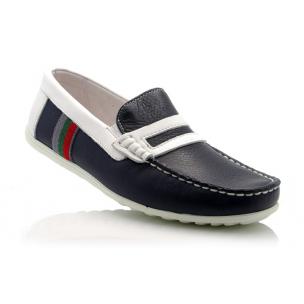 Мокасины Tiflani синего цвета с белыми полосками. Снаружи и внутри кожаные. Есть супинатор и твердая пятка.