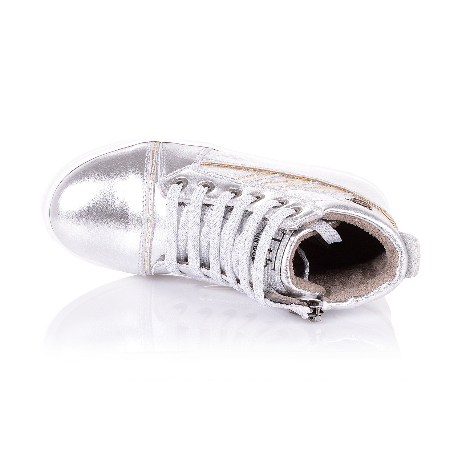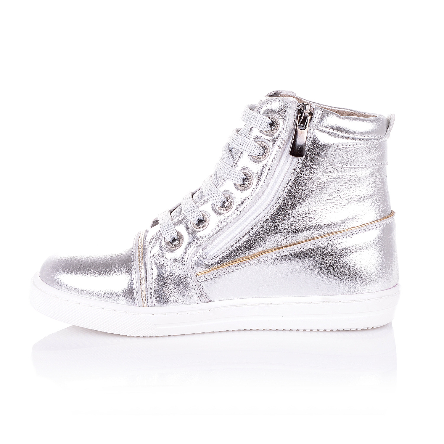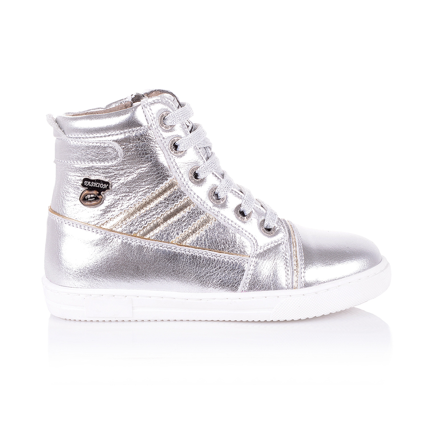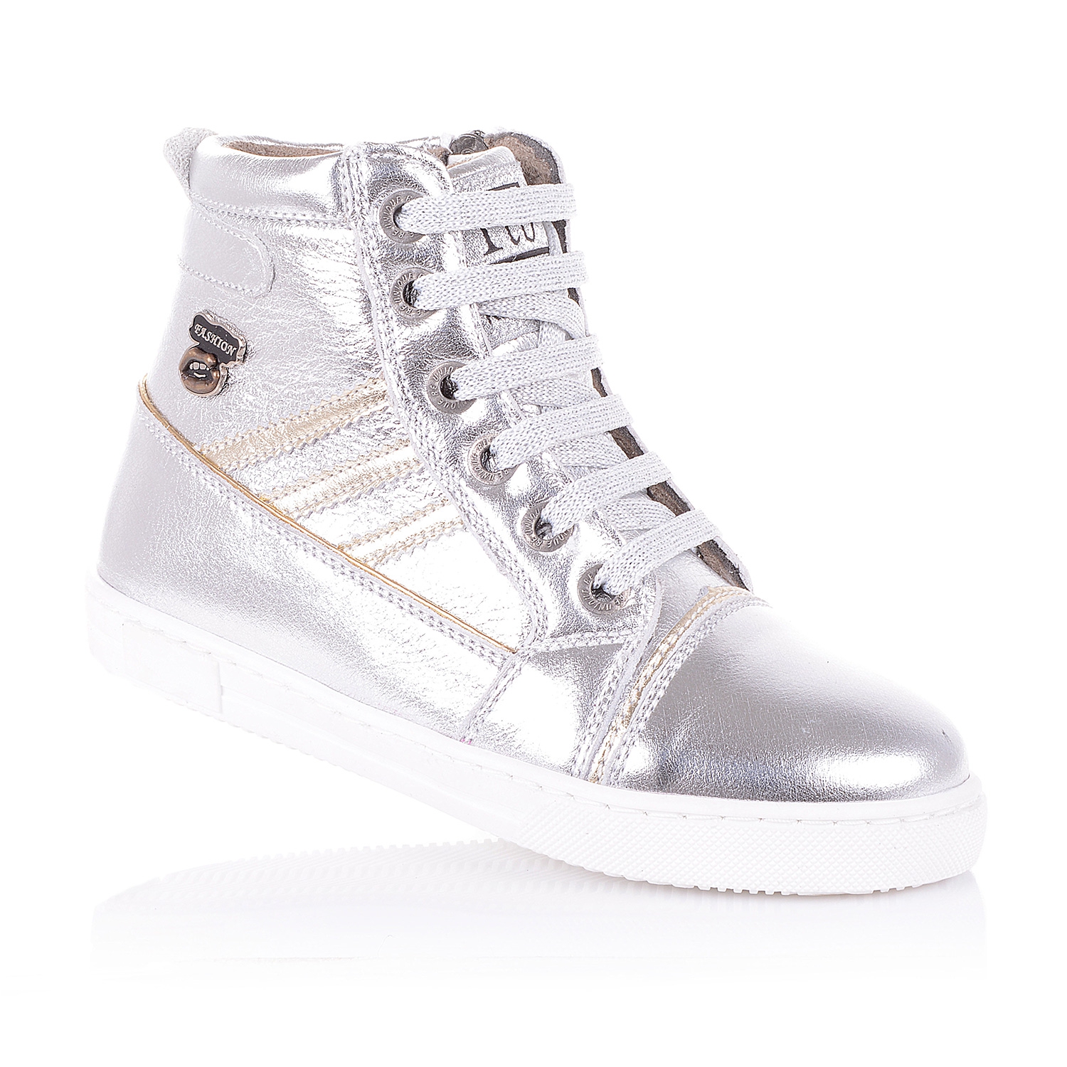 Шикарные ботинки сезон осень 2016г. для незабываемого образа Вашей модницы. Снаружи ботинки выполнены из натуральной кожи серебристого цвета с неброским логотипом производителя сбоку- модный тренд этого сезона, внутри- плотная мягкая байка. Надевать такую обувь- секундное дело, ведь помимо шнурков, в ней есть змейка сбоку. Анатомическая стелька с супинатором поддержит свод стопы и поспособствует здоровому развитию мышц. О фиксации голенища и щиколотки позаботятся укрепленные берцы и жесткий задник. А хрупкие суставы будут защищены от чрезмерных нагрузок благодаря амортизации термопластичной подошвы. В такой обуви класса премиум +, ребенок будет чувствовать себя эксклюзивно!