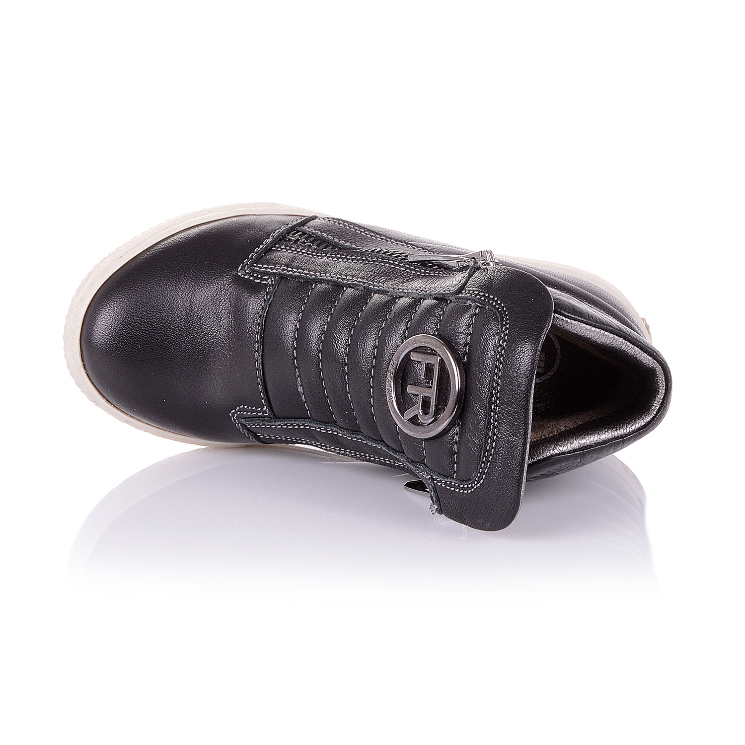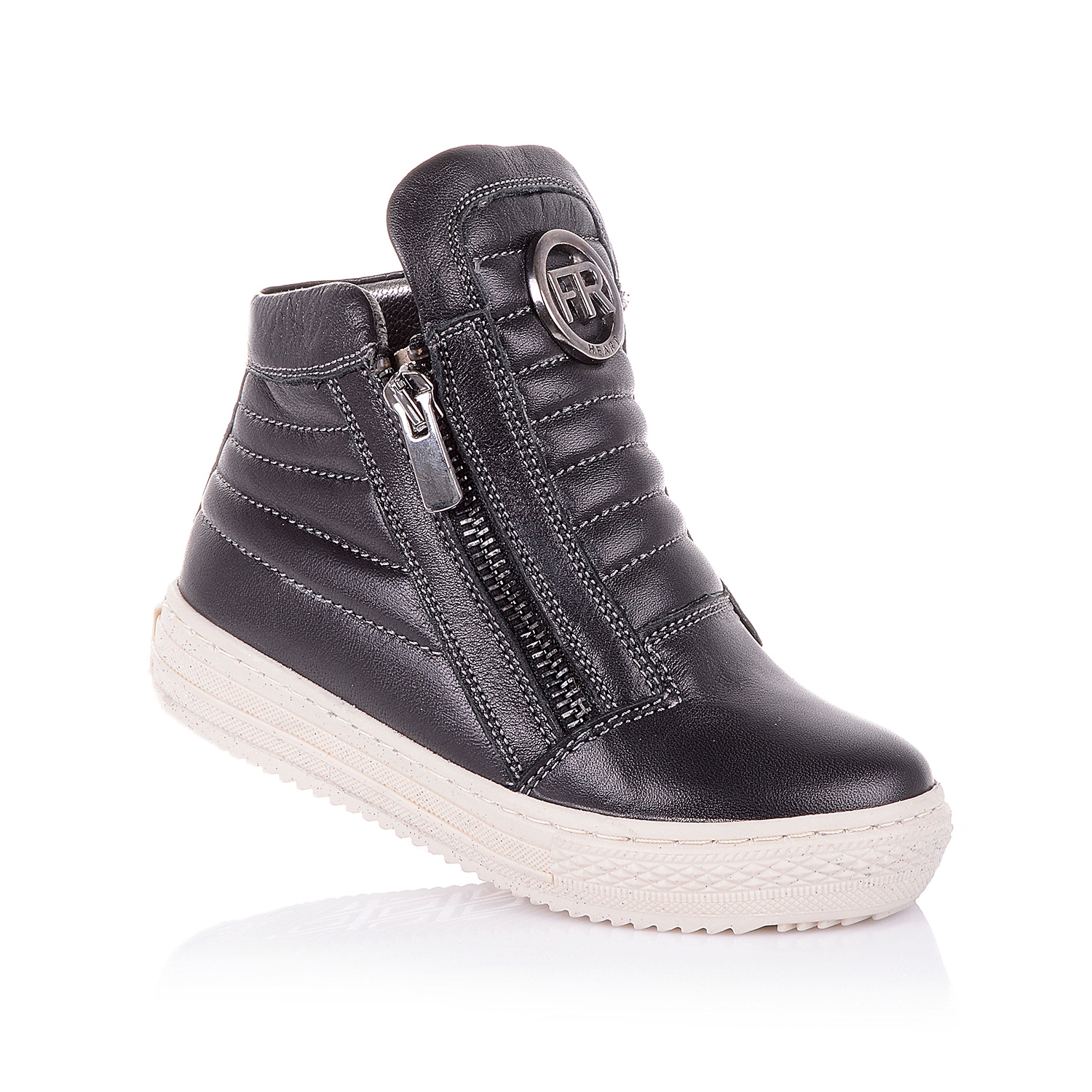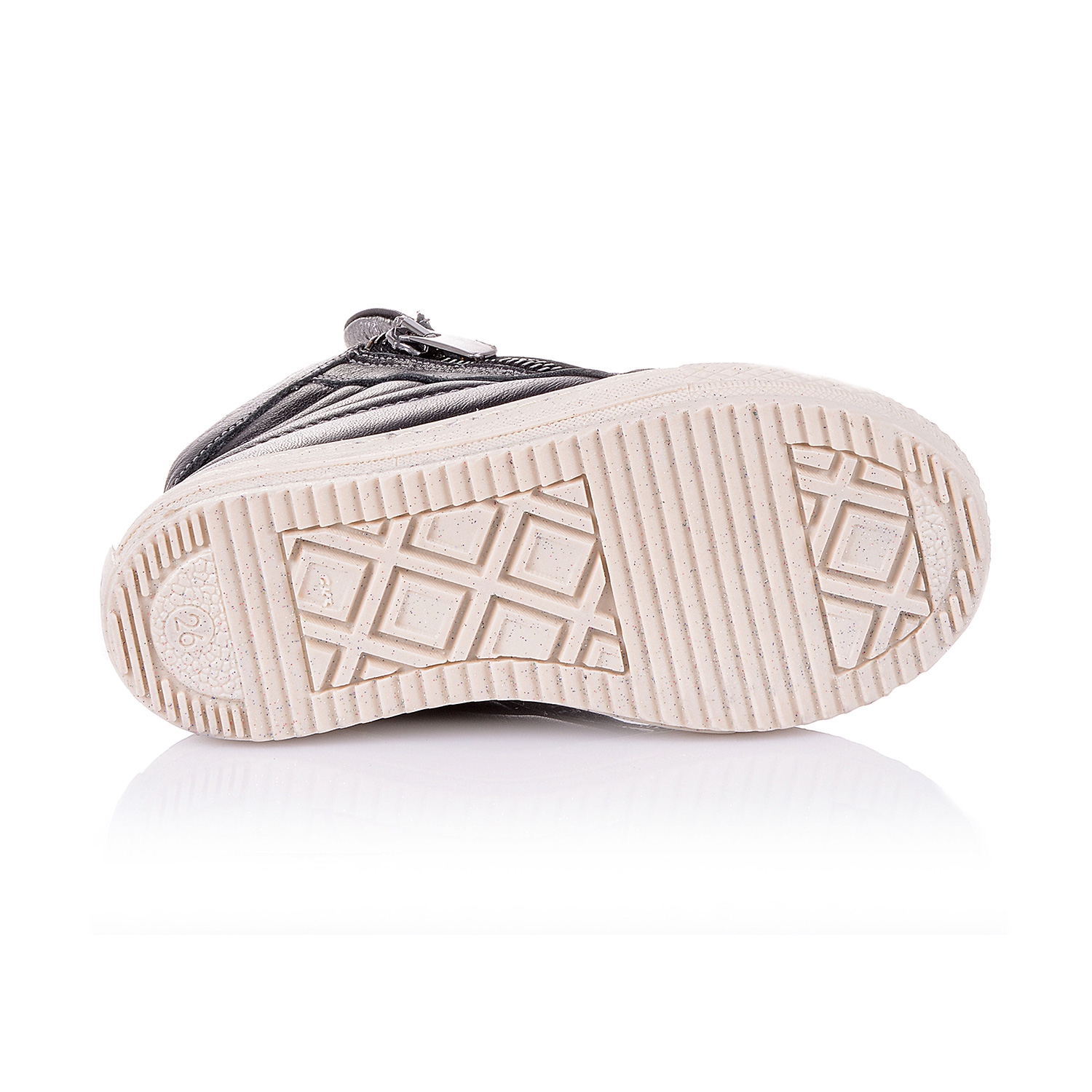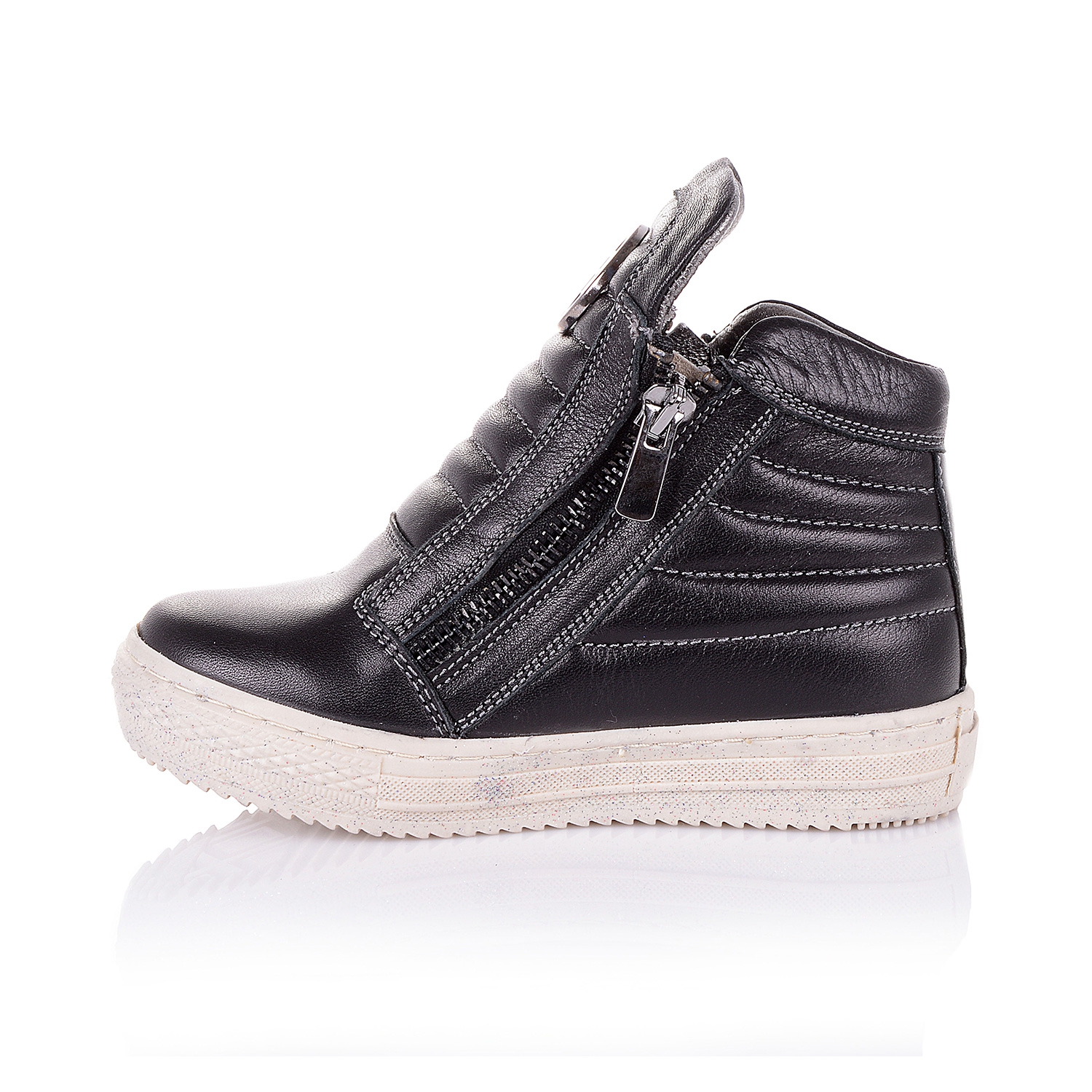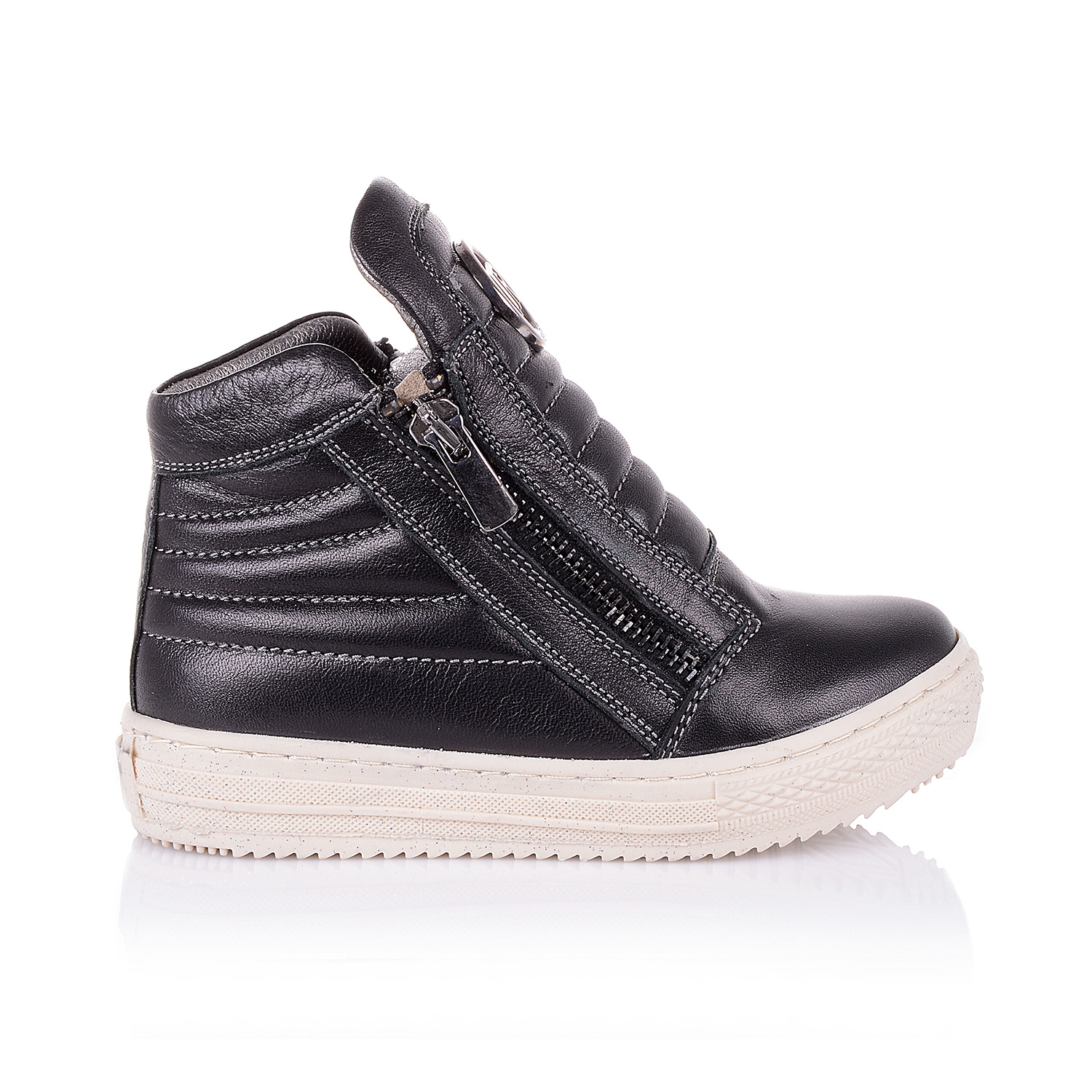 Модные ботинки на белой подошве, выполнены из натуральной кожи черного цвета с отстрочкой- модель выглядит ярко и сразу бросается в глаза. Внутри- плотный флис. Удобная фиксация на змейку поможет без труда надевать обувь быстро. Кожаная анатомическая стелька с твердым супинатором и мягкой прослойкой в пяточной части, поддержит свод стопы и поспособствует здоровому развитию мышц. О фиксации щиколотки позаботится жесткий задник. Подошва плотная из термокаучука, достаточно хорошо гнется. Экспериментируйте и создавайте самые красивые образы с обувью X-Kids.