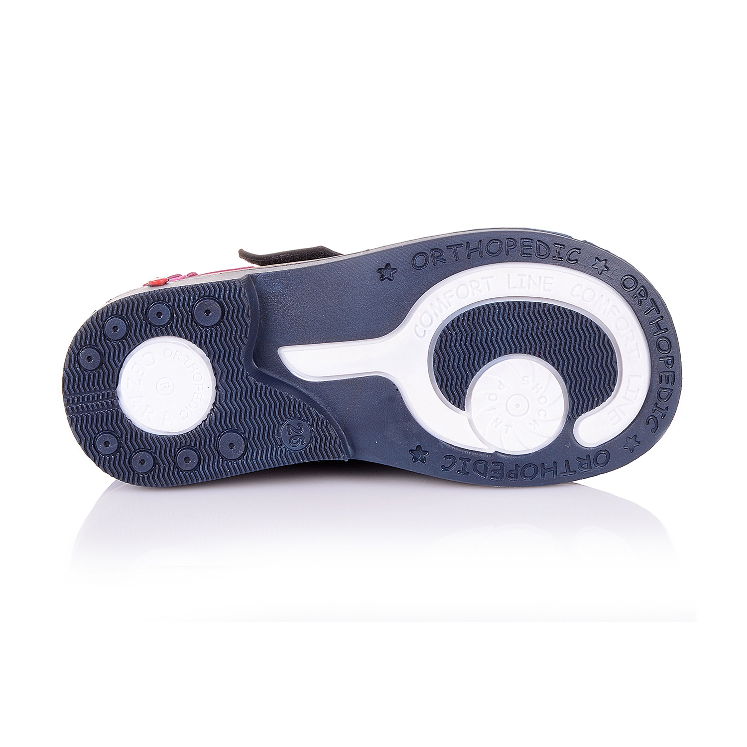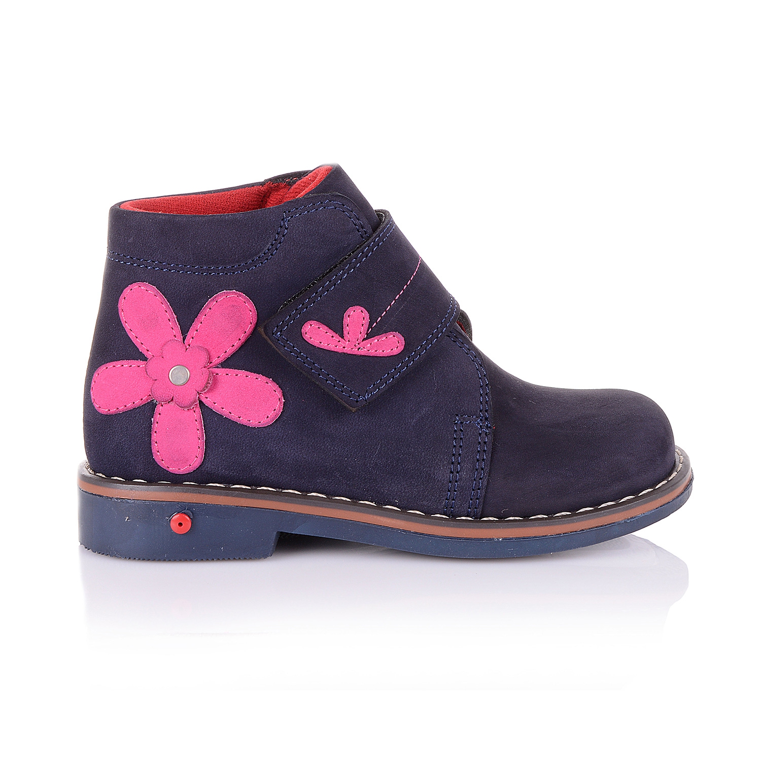 Невероятно стильные и удобные ортопедические демисезонные ботинки- идеальны для города! Снаружи ботинки выполнены из натурального нубука темно-синего цвета с принтом из розового цветочка сбоку, внутри- плотная мягкая байка. Удобная фиксация на липучку позволяет подобрать обувь на ногу разной полноты и высоты свода. Каблук Томаса с удлиненным внутренним краем обеспечит правильную постановку ноги. Анатомическая стелька с супинатором поддержит свод стопы и поспособствует здоровому развитию мышц. О фиксации голенища и щиколотки позаботятся укрепленные берцы и жесткий задник. А хрупкие суставы будут защищены от чрезмерных нагрузок благодаря амортизационной вставке. Не отказывайте своему сокровищу носить правильную ортопедическую обувь класса премиум+. Соответствие размера: большемерят (возьмите на размер меньше).