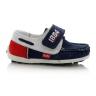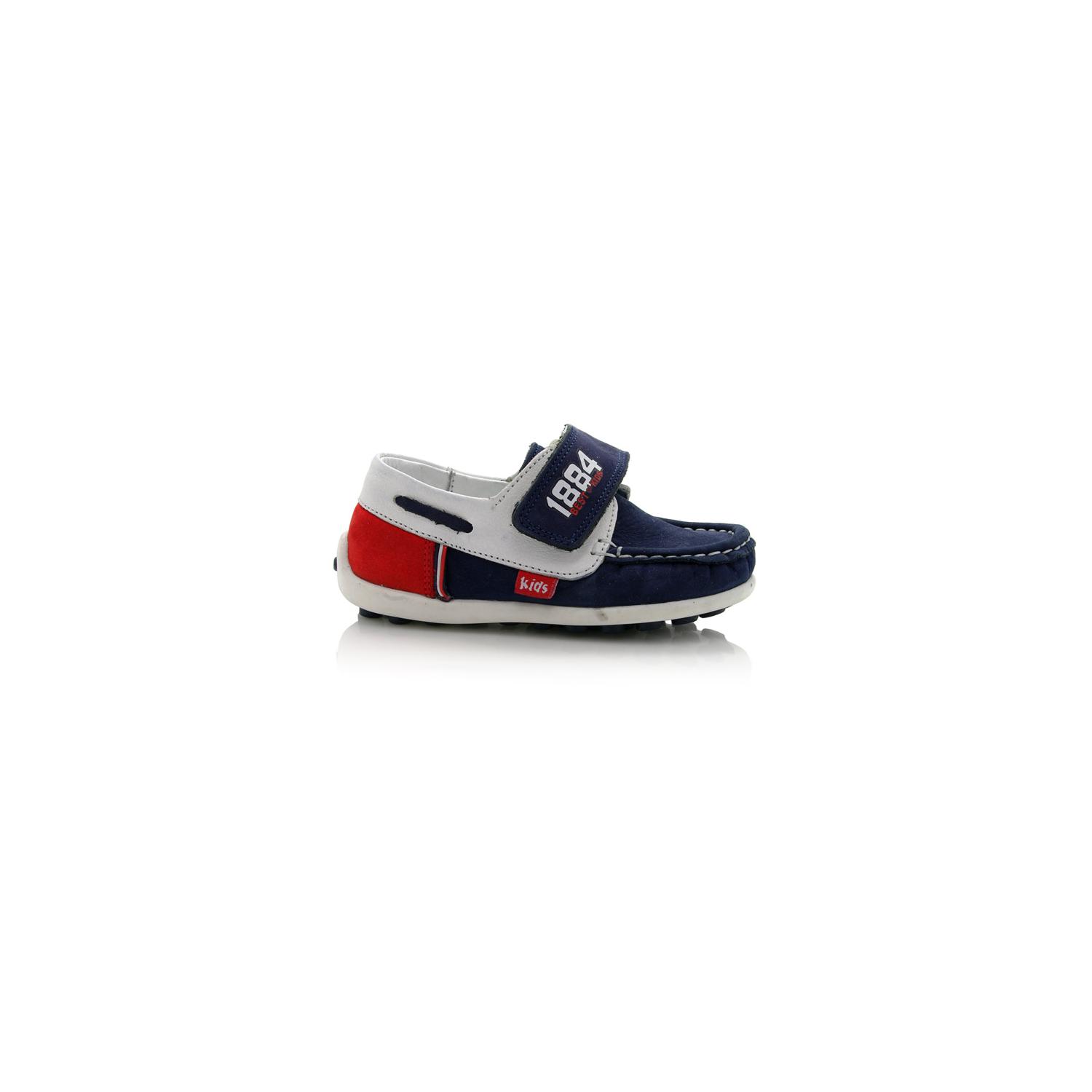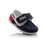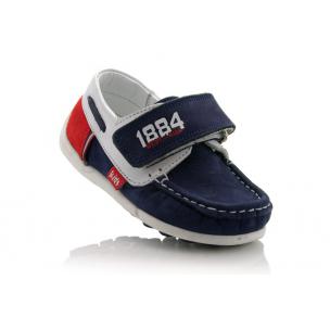 Мокасины Tiflani темно-синего цвета. Сверху фиксируются липучкой, снаружи нубук, внутри кожаные. Есть супинатор и твердая пятка.