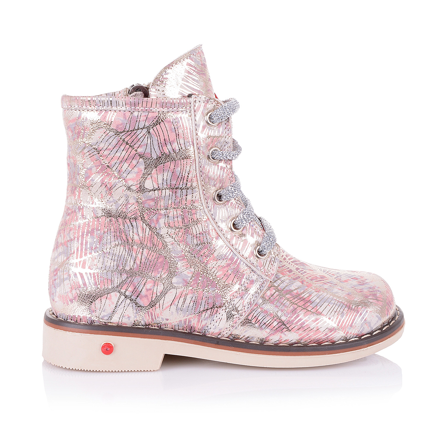 Шикарные ортопедические ботинки для незабываемого образа Вашей модницы. Снаружи ботинки выполнены из натурального нубука с тисненным принтом серебристо-пудрового цвета- модный тренд этого сезона, внутри- плотный флис. Высокий язычок придает образу оригинальности. Надевать такие ботинки - секундное дело, ведь помимо шнурков в них есть ещё и молния сбоку. Каблук Томаса с удлиненным внутренним краем обеспечит правильную постановку ноги. Анатомическая стелька с супинатором поддержит свод стопы и поспособствует здоровому развитию мышц. О фиксации голенища и щиколотки позаботятся укрепленные берцы и жесткий задник. А хрупкие суставы будут защищены от чрезмерных нагрузок благодаря амортизации термопластичной тракторной подошвы. В такой обуви класса премиум +, ребенок будет чувствовать себя эксклюзивно!