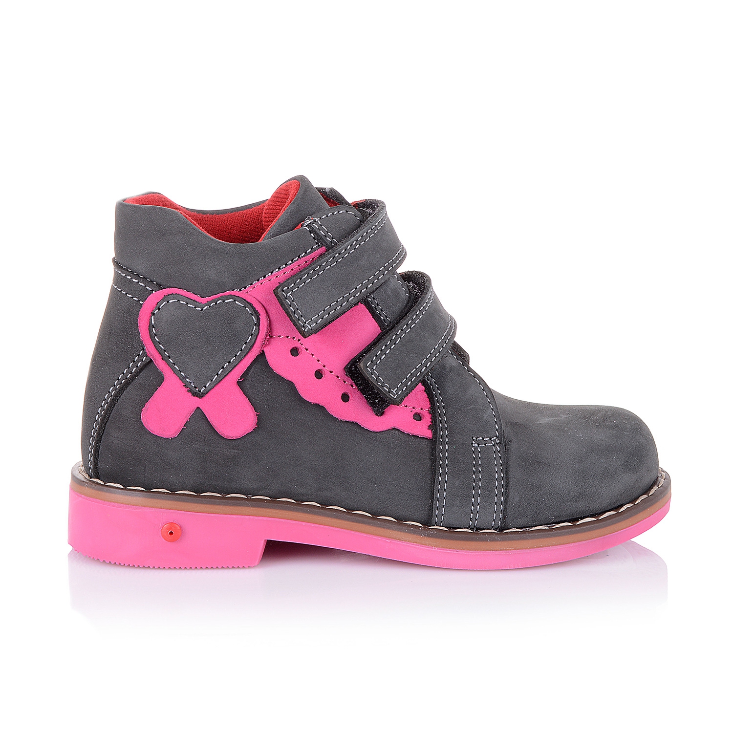 Супер-стильные и удобные ортопедические демисезонные ботинки- идеальны для города! Снаружи ботинки выполнены из натурального нубука серого цвета с яркими вставками, внутри- плотная мягкая байка. Удобная фиксация на две липучки позволяет подобрать обувь на ногу разной полноты и высоты свода. Каблук Томаса с удлиненным внутренним краем обеспечит правильную постановку ноги. Анатомическая стелька с супинатором поддержит свод стопы и поспособствует здоровому развитию мышц. О фиксации голенища и щиколотки позаботятся укрепленные берцы и жесткий задник. А хрупкие суставы будут защищены от чрезмерных нагрузок благодаря амортизационной вставке. Не отказывайте своему сокровищу носить правильную ортопедическую обувь класса премиум+.