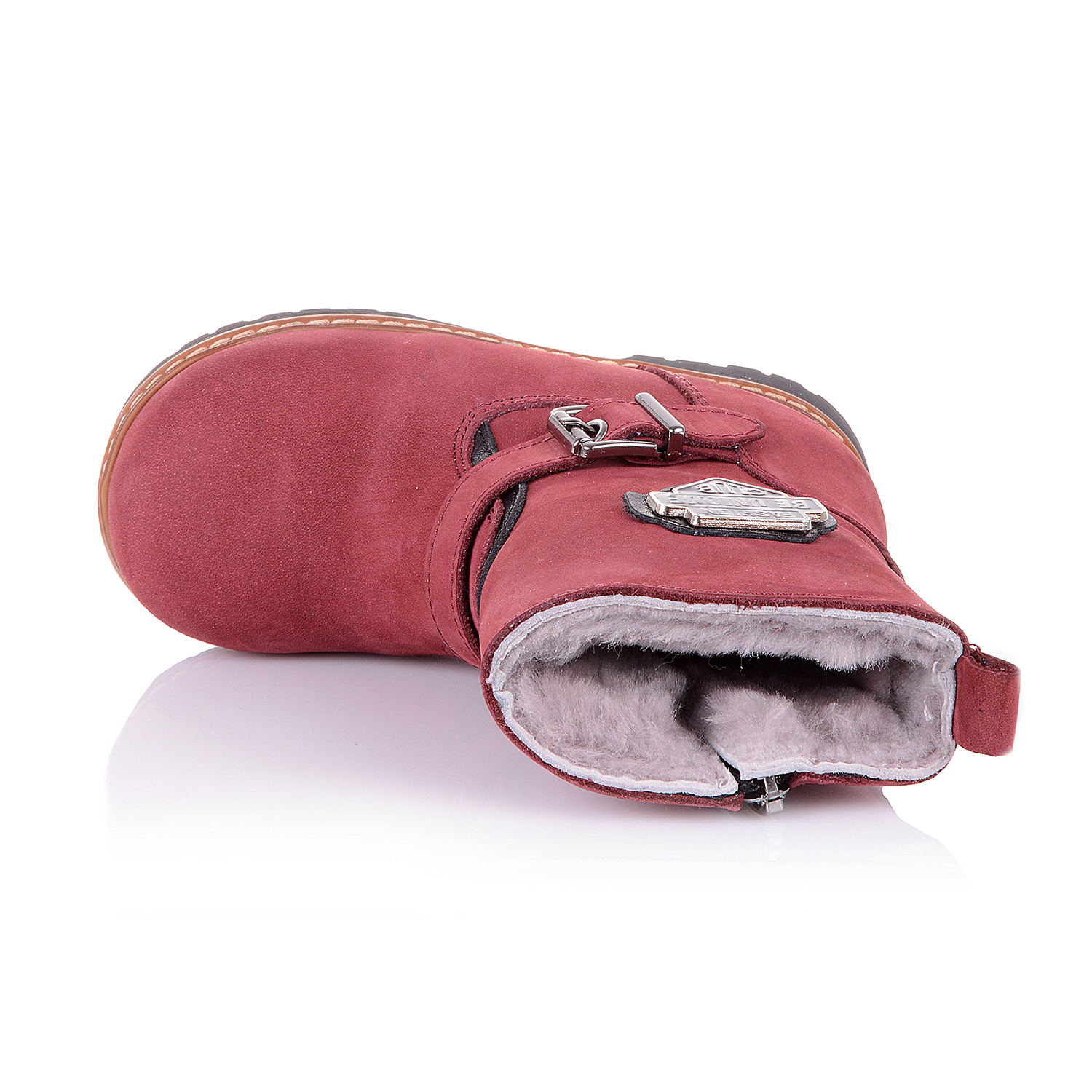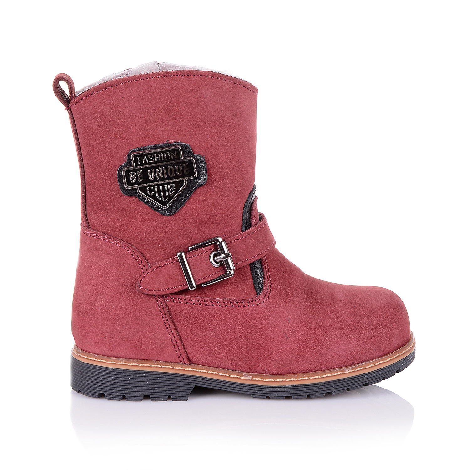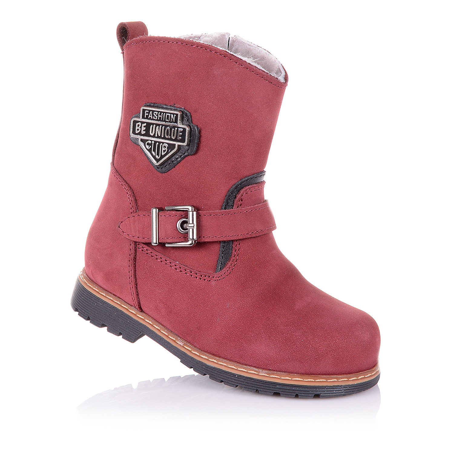 Супер-стильные ортопедические ботинки сезон зима 2016г. Снаружи ботинки выполнены из натурального нубука бордового цвета, украшены стальной пряжкой сбоку, внутри- натуральная сбитая цигейка. Надевать такие ботинки - секундное дело, ведь они на молнии. Каблук Томаса с удлиненным внутренним краем обеспечит правильную постановку ноги. Анатомическая стелька с супинатором поддержит свод стопы и поспособствует здоровому развитию мышц. О фиксации голенища и щиколотки позаботятся укрепленные берцы и жесткий задник. А хрупкие суставы будут защищены от чрезмерных нагрузок благодаря амортизации термопластичной подошвы с протектором-антискольжение. В такой обуви класса премиум +, ребенок будет приковывать взгляды окружающих.