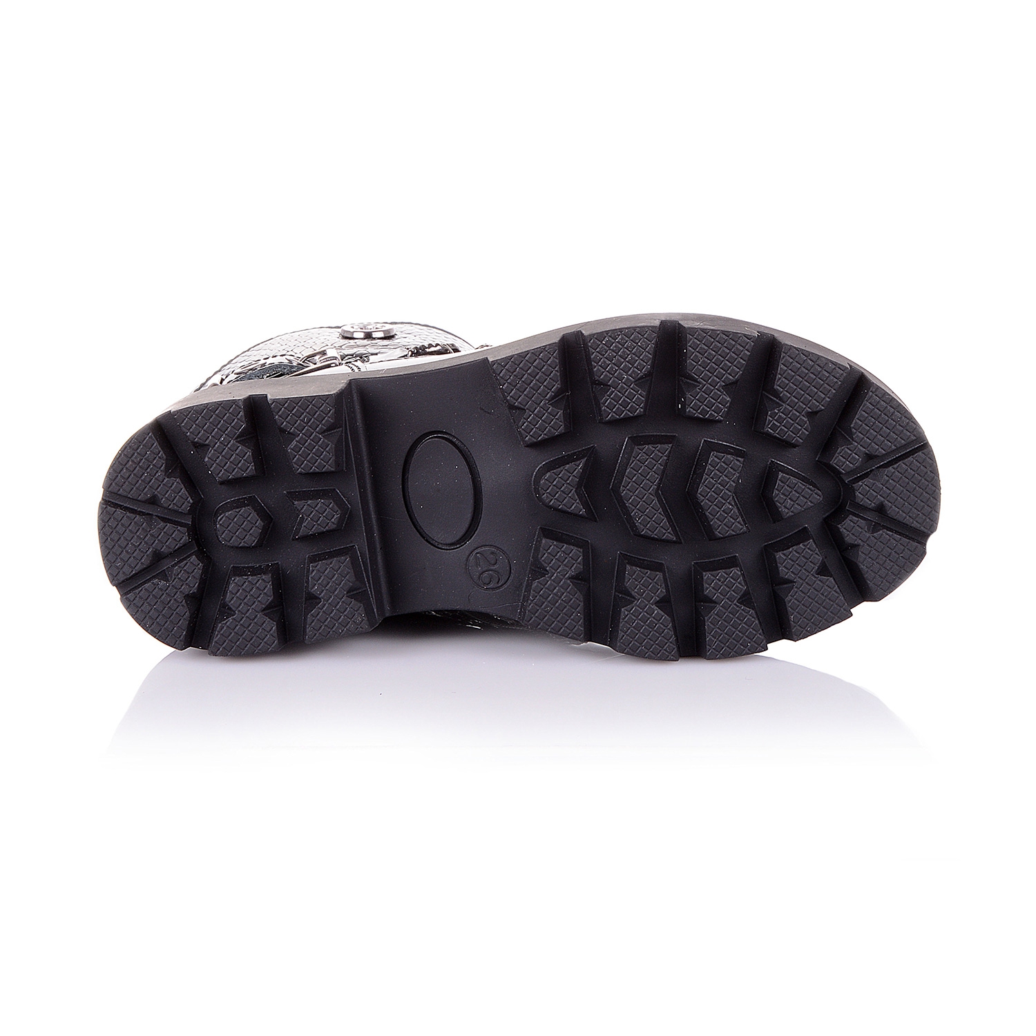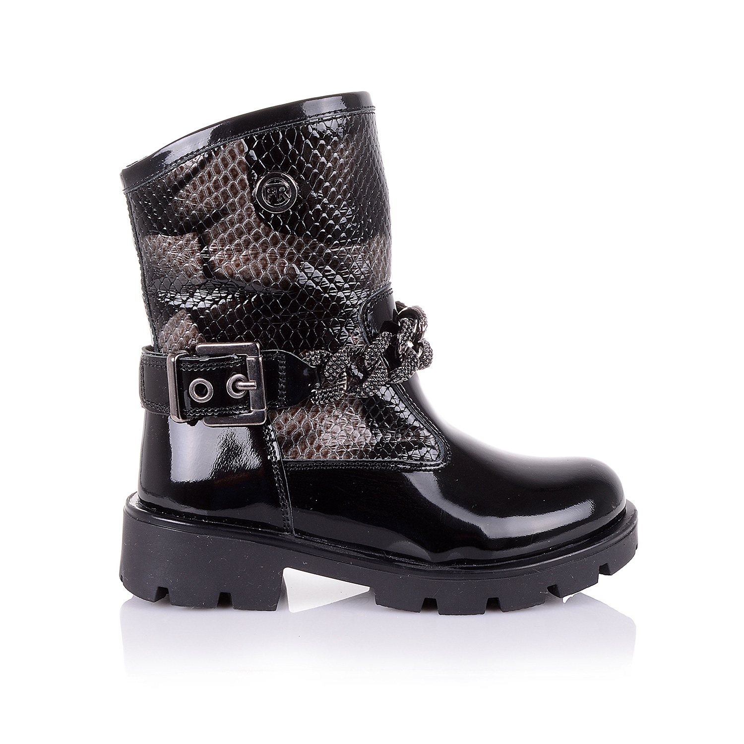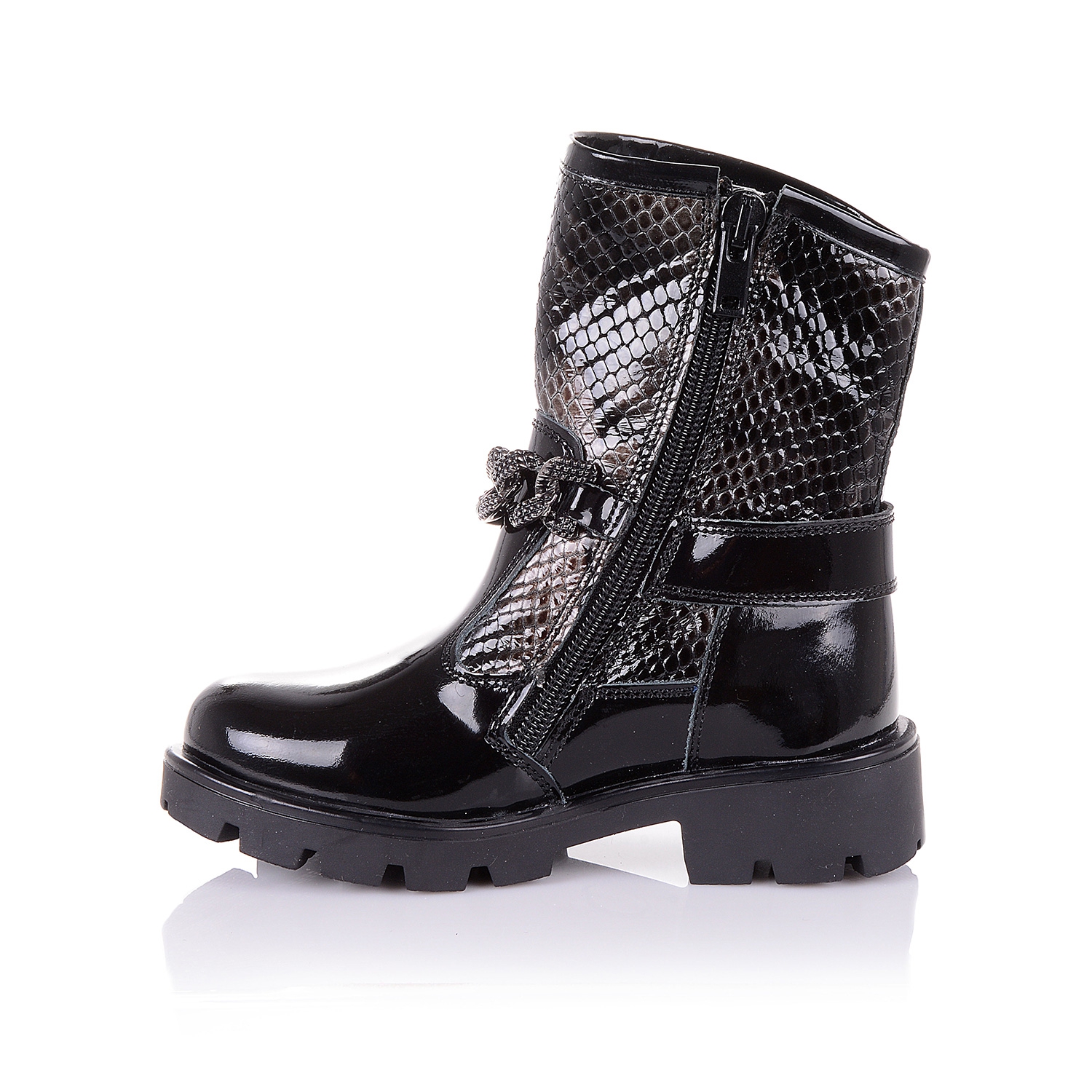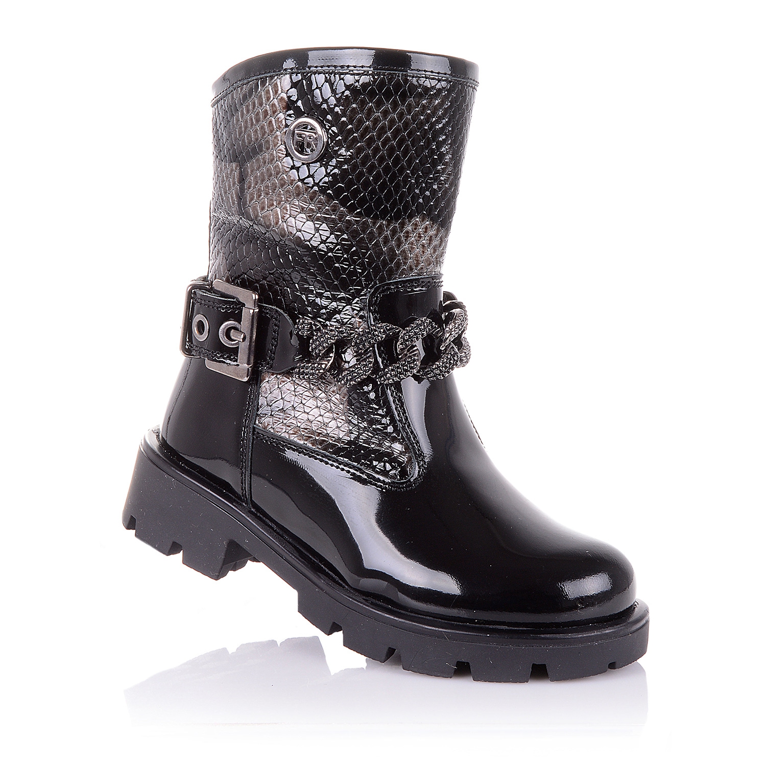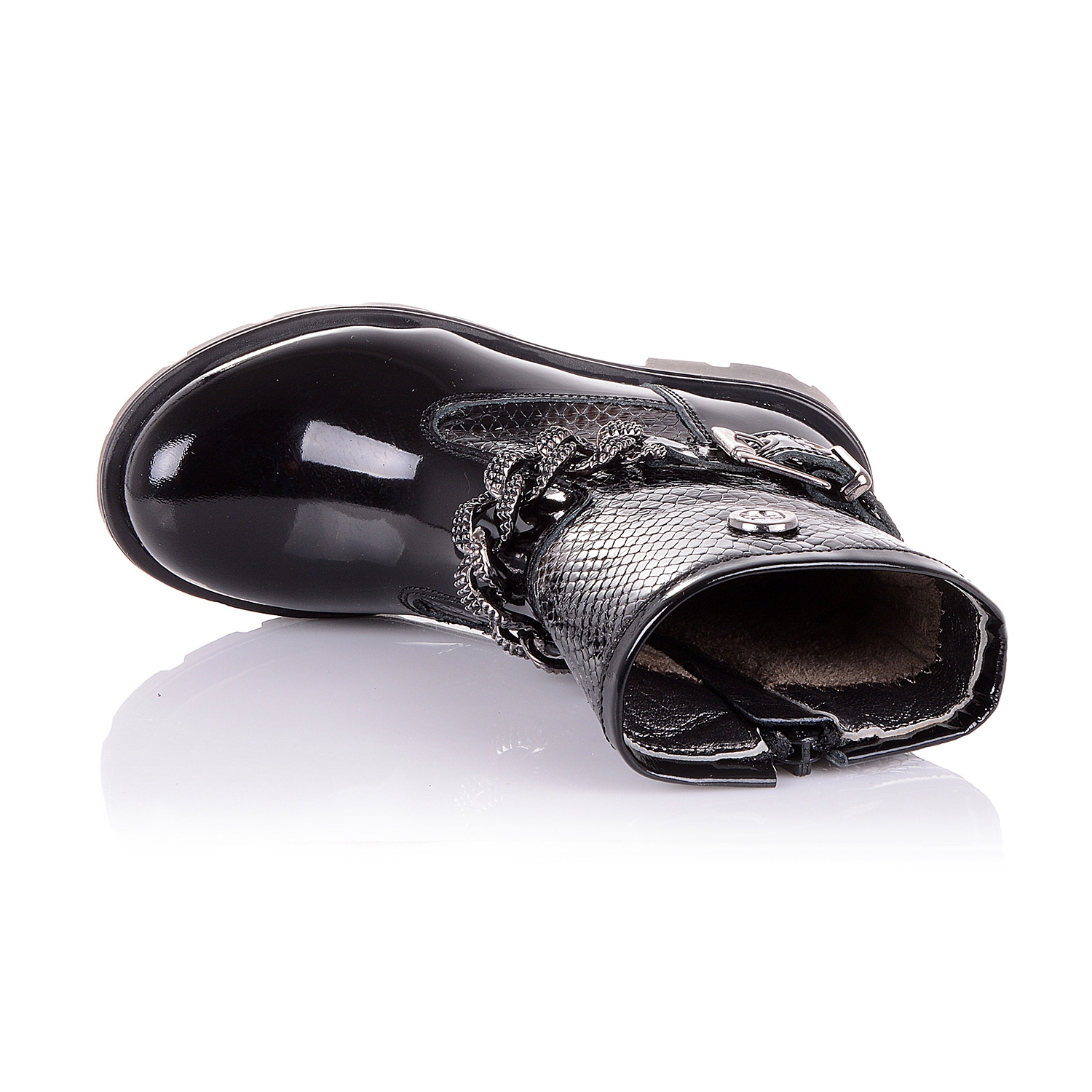 Невероятно стильные и удобные демисезонные ботинки- идеальны для города! Снаружи ботинки выполнены из натуральной лаковой кожи черного цвета со вставками из тисненной кожи с анималистическим принтом. Фиксация на змейку сбоку. Кожаная анатомическая стелька с супинатором поддержит свод стопы и поспособствует здоровому развитию мышц. О фиксации голенища и щиколотки позаботятся укрепленные берцы и жесткий задник. А хрупкие суставы будут защищены от чрезмерных нагрузок благодаря амортизационной подошве на высоком протекторе. Не отказывайте своему сокровищу носить правильную ортопедическую обувь класса премиум+.