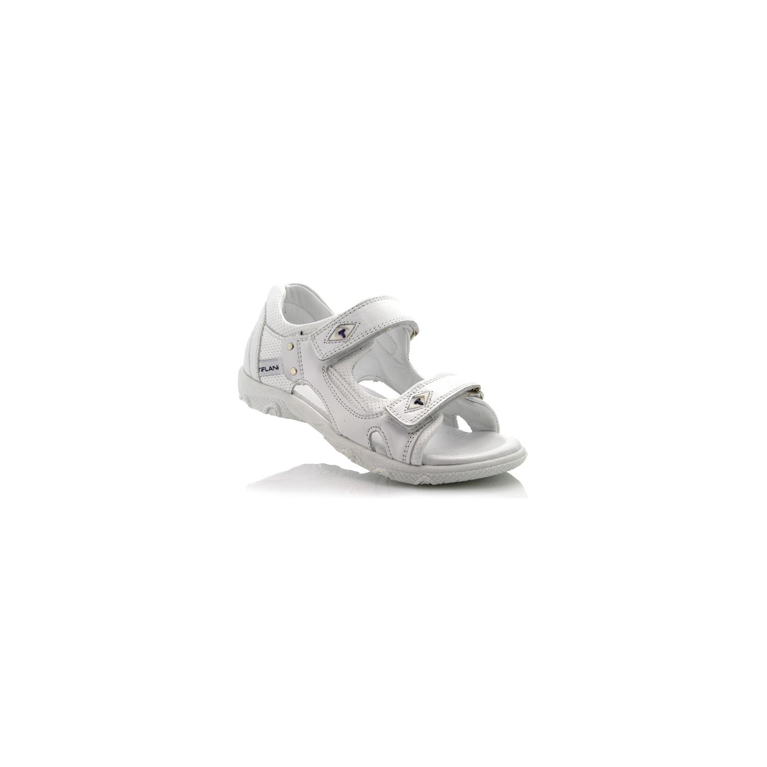 Босоножки Tiflani белого цвета, фиксируются 2-мя липучками. Снаружи и внутри кожаные, есть супинатор, твердая пятка.