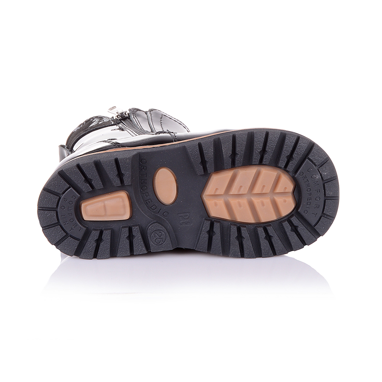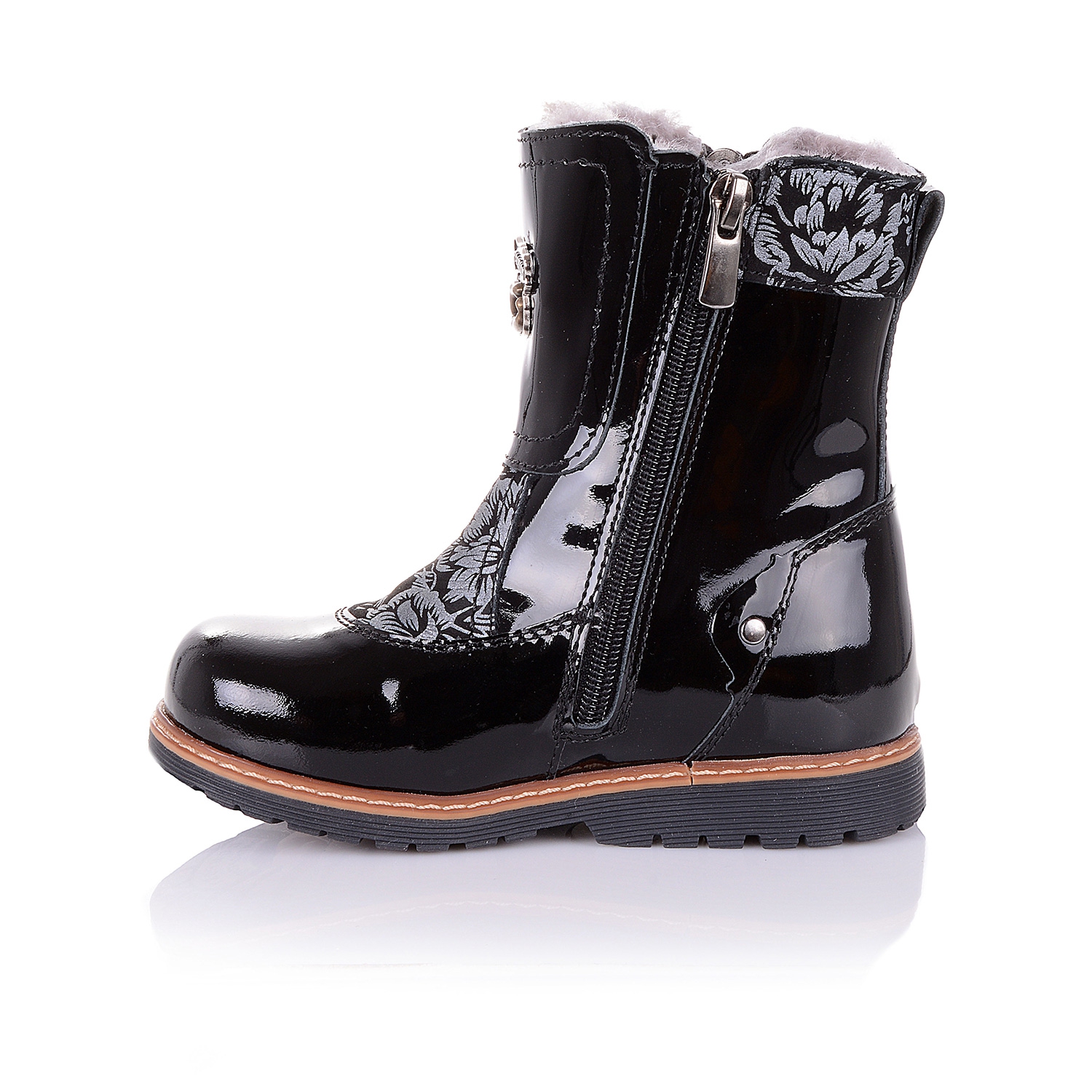 Супер-стильные ортопедические ботинки сезон зима 2016г. для незабываемого образа Вашей модницы. Снаружи ботинки выполнены из натуральной лаковой кожи черного цвета в сочетании с цветочным принтом из натурального нубука- модный тренд этого сезона, внутри- натуральная сбитая цигейка. Надевать такие ботинки - секундное дело, ведь с двух сторон они на молнии. Каблук Томаса с удлиненным внутренним краем обеспечит правильную постановку ноги. Анатомическая стелька с супинатором поддержит свод стопы и поспособствует здоровому развитию мышц. О фиксации голенища и щиколотки позаботятся укрепленные берцы и жесткий задник. А хрупкие суставы будут защищены от чрезмерных нагрузок благодаря амортизации термопластичной подошвы с протектором-антискольжение. В такой обуви класса премиум +, ребенок будет приковывать взгляды окружающих.