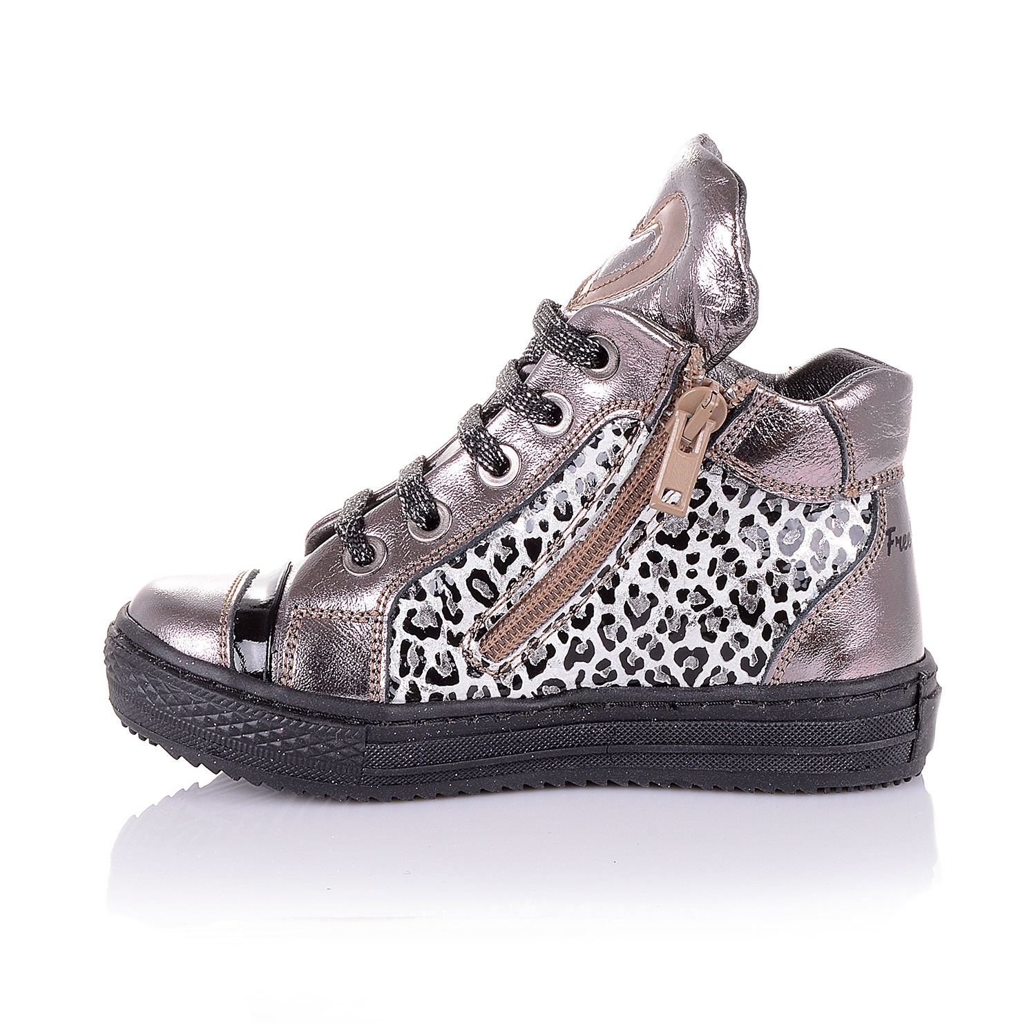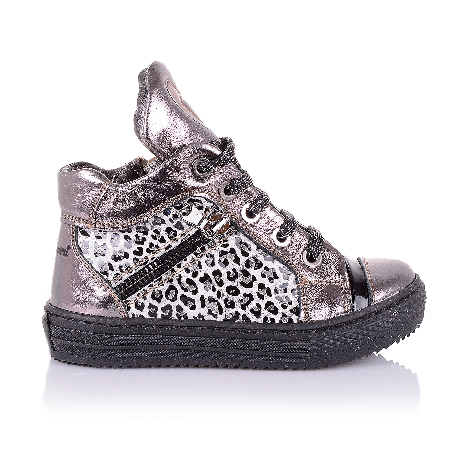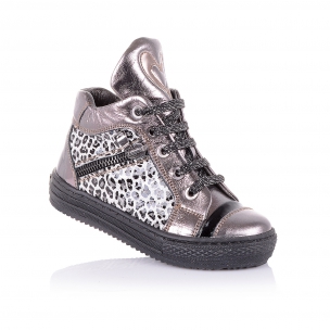 Невероятно стильные и удобные демисезонные ботинки- идеальны для города! Снаружи ботинки выполнены из натуральной лаковой кожи бронзового цвета со вставками из кожи с анималистическим принтом. Надевать такие ботинки- секундное дело, ведь помимо шнурка, в них есть змейка сбоку. Кожаная анатомическая стелька с супинатором поддержит свод стопы и поспособствует здоровому развитию мышц. О фиксации щиколотки позаботится жесткий задник. В обуви такого качества, Ваш ребенок будет чувствовать себя комфортно и эксклюзивно.
