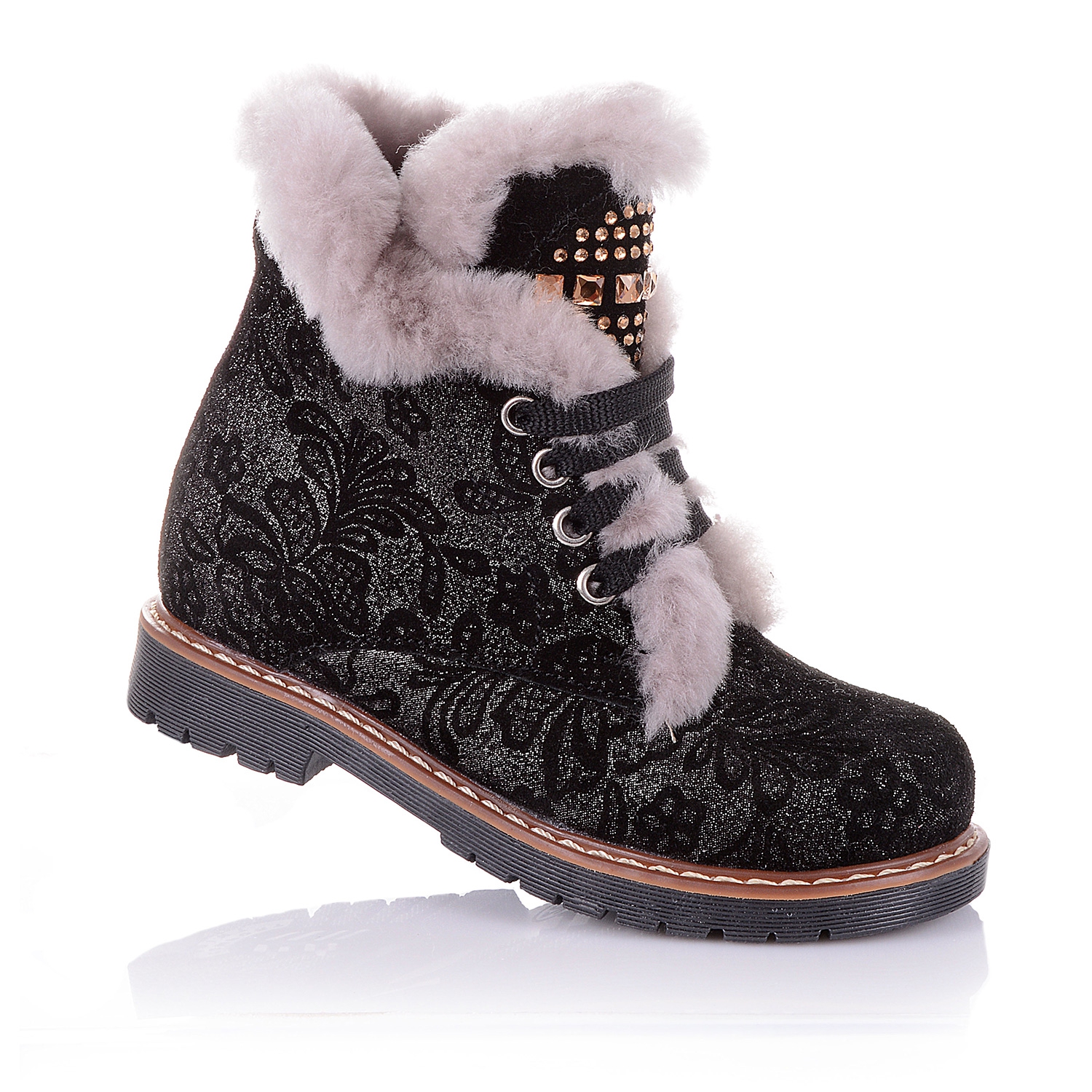 Шикарные ортопедические ботинки сезон зима 2016г. для незабываемого образа Вашей модницы. Снаружи ботинки выполнены из натурального нубука черного цвета с лазерным рисунком под ажур- модный тренд этого сезона, внутри- плотная сбитая цигейка. Высокий язычок черного цвета со стразами придает образу оригинальности. Надевать такие ботинки - секундное дело, ведь помимо шнурков в них есть ещё и молния сбоку. Каблук Томаса с удлиненным внутренним краем обеспечит правильную постановку ноги. Анатомическая стелька с супинатором поддержит свод стопы и поспособствует здоровому развитию мышц. О фиксации голенища и щиколотки позаботятся укрепленные берцы и жесткий задник. А хрупкие суставы будут защищены от чрезмерных нагрузок благодаря амортизации термопластичной тракторной подошвы. В такой обуви класса премиум +, ребенок будет чувствовать себя эксклюзивно!
