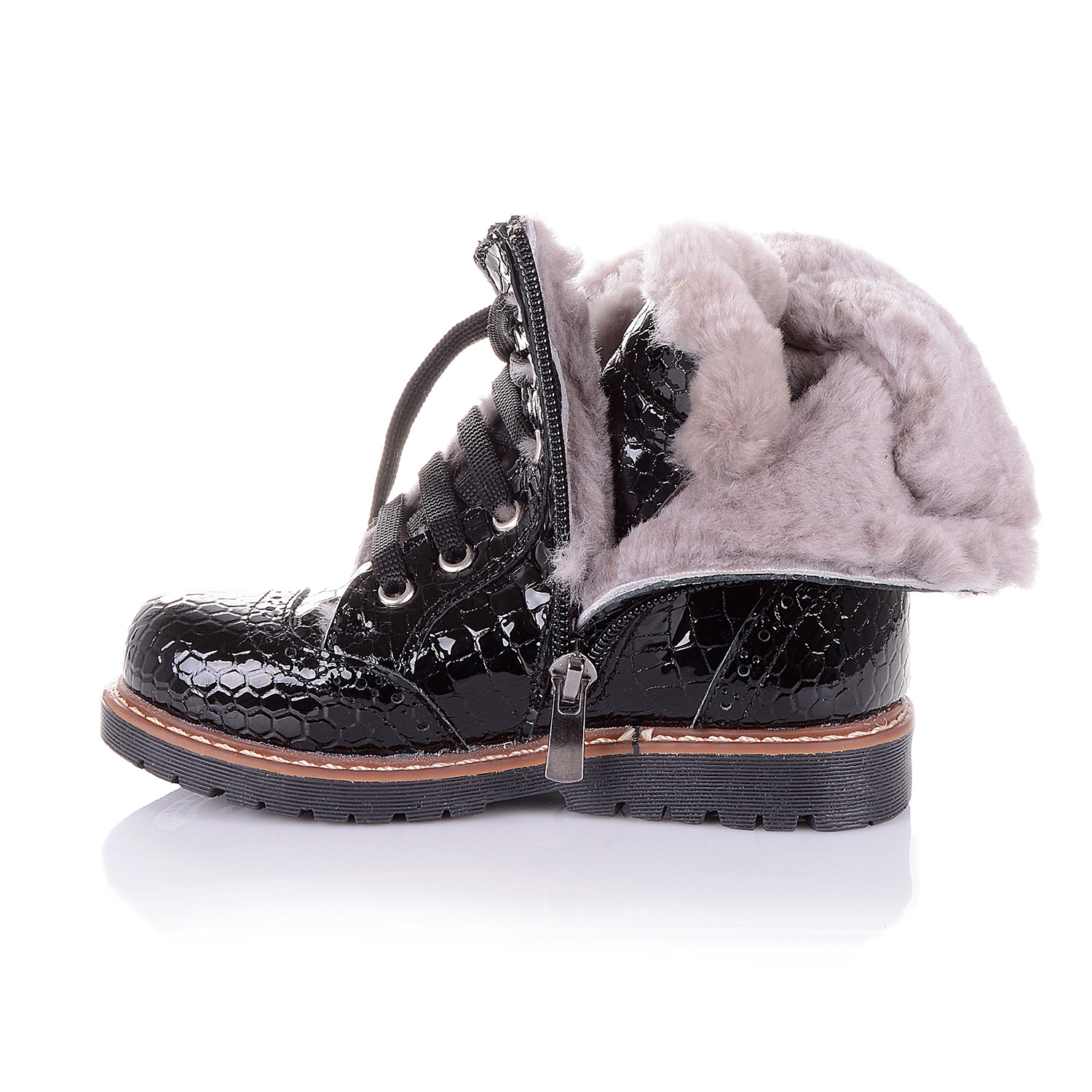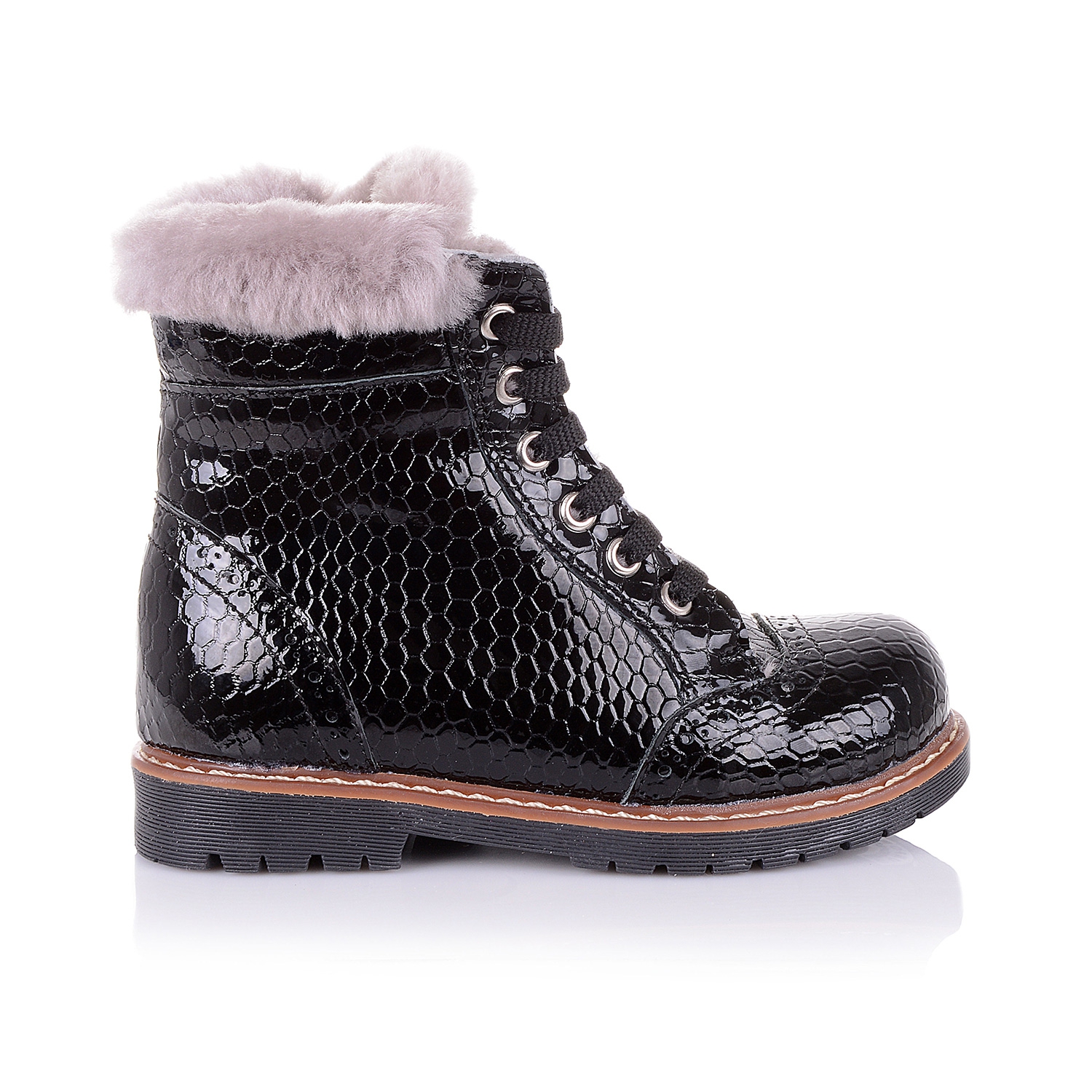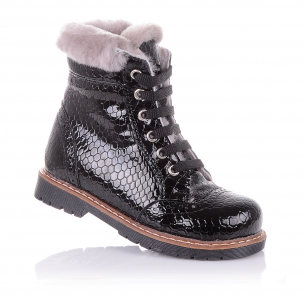 Шикарные ортопедические ботинки сезон зима. Снаружи ботинки выполнены из натуральной тисненной лаковой кожи (имеет водоотталкивающее свойство) черного цвета. Высокий широкий язычок защищает от попадания снега и влаги. Надевать такие ботинки - секундное дело, ведь помимо шнурков в них есть ещё и молния сбоку. Каблук Томаса с удлиненным внутренним краем обеспечит правильную постановку ноги. Анатомическая стелька с супинатором поддержит свод стопы и поспособствует здоровому развитию мышц. О фиксации голенища и щиколотки позаботятся укрепленные берцы и жесткий задник. А хрупкие суставы будут защищены от чрезмерных нагрузок благодаря амортизации термопластичной тракторной подошвы. Эта пара подходит для профилактики плосковальгусной деформации стопы. В такой обуви класса премиум +, ребенок будет чувствовать себя эксклюзивно!
