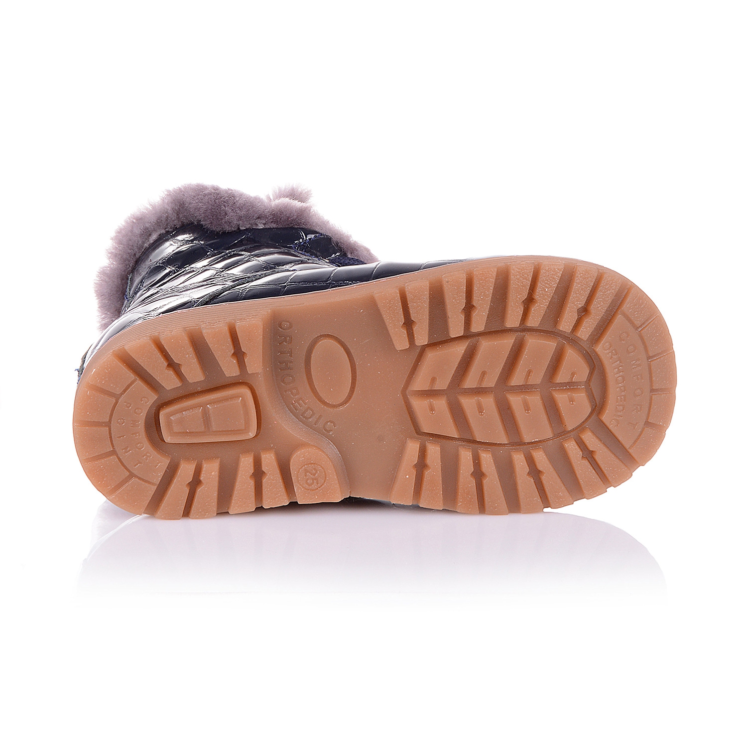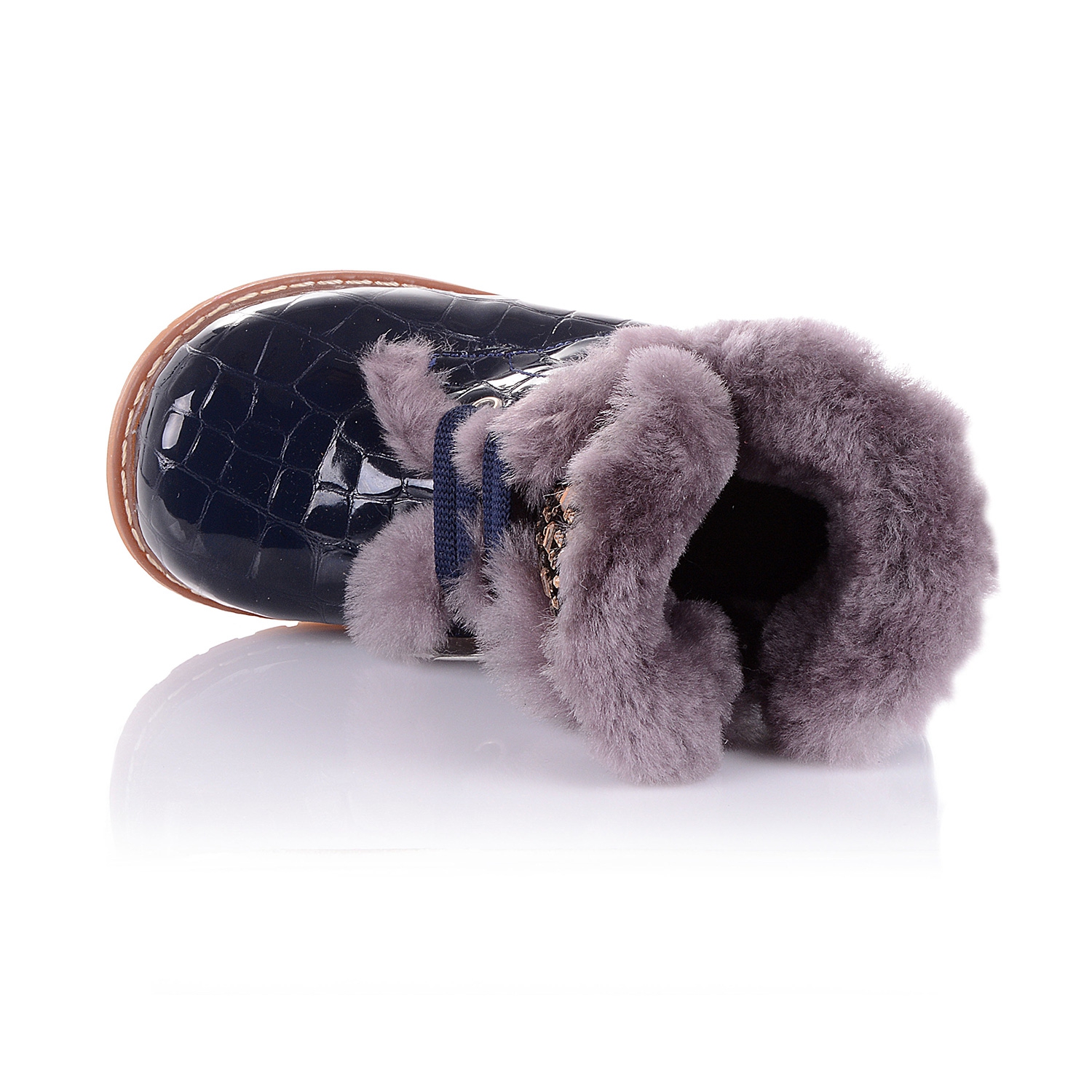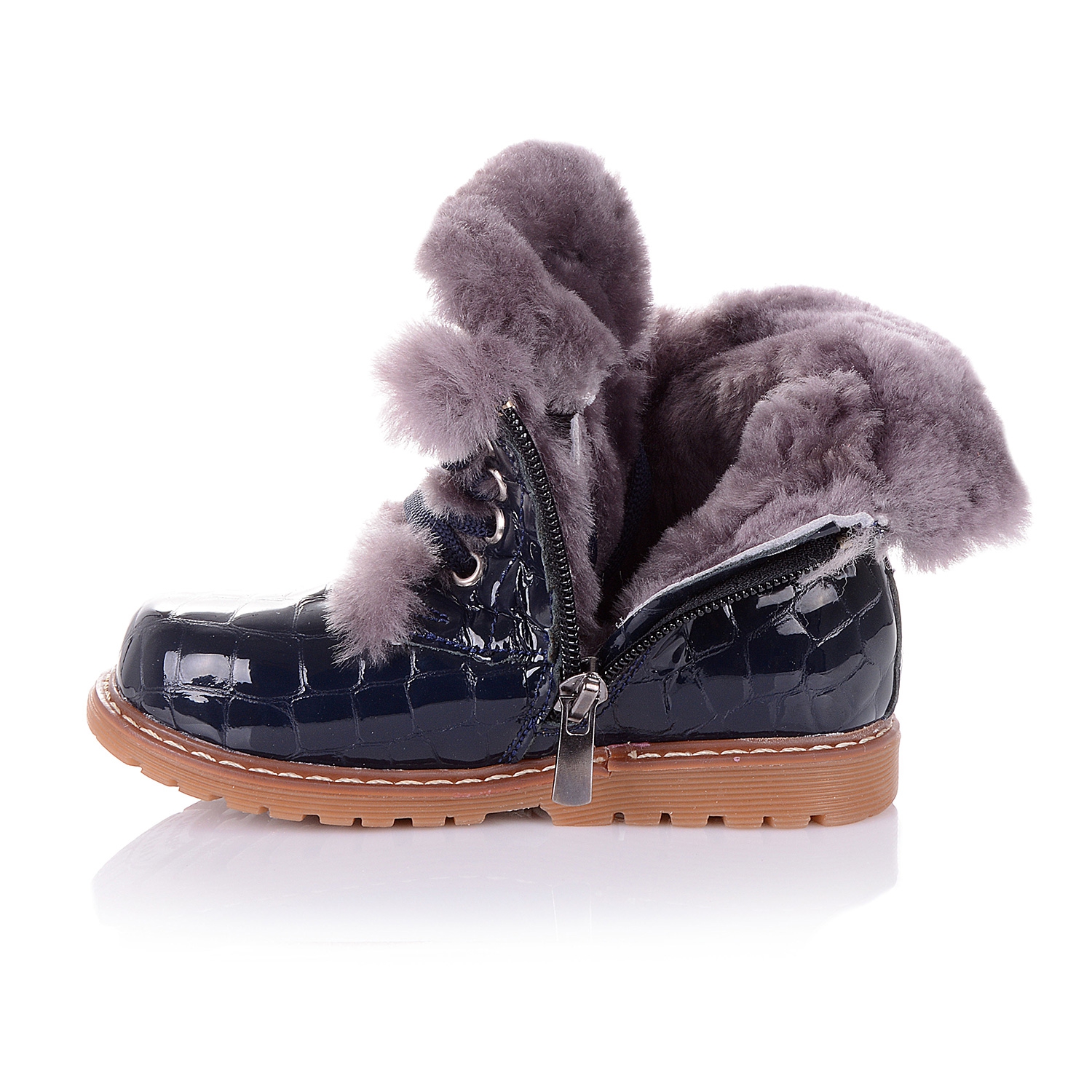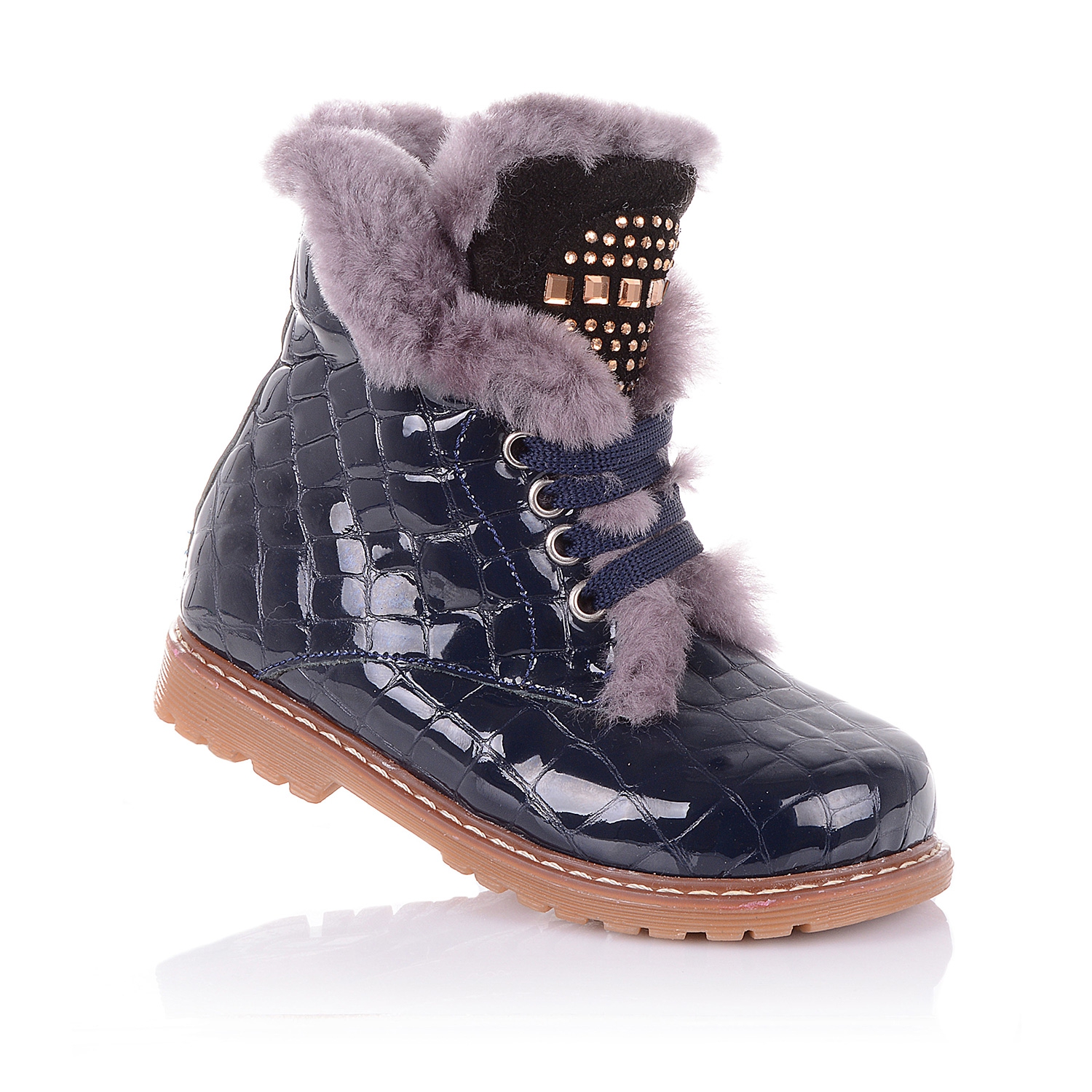 Шикарные ортопедические ботинки сезон зима 2016г. для незабываемого образа Вашей модницы. Снаружи ботинки выполнены из натуральной лаковой кожи с лазерным принтом темно-синего цвета- тренд этого сезона, внутри- натуральная плотная цигейка. Высокий язычок со стразами придает образу оригинальности. Надевать такие ботинки - секундное дело, ведь помимо шнурков в них есть ещё и молния сбоку. Каблук Томаса с удлиненным внутренним краем обеспечит правильную постановку ноги. Анатомическая стелька с супинатором поддержит свод стопы и поспособствует здоровому развитию мышц. О фиксации голенища и щиколотки позаботятся укрепленные берцы и жесткий задник. А хрупкие суставы будут защищены от чрезмерных нагрузок благодаря амортизации термопластичной тракторной подошвы. В такой обуви класса премиум +, ребенок будет чувствовать себя эксклюзивно!